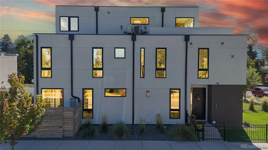 The perfect, like-new contemporary townhome with striking mountain views and sunsets from the private rooftop patio and retreat room with a wet bar and a secluded bedroom with murphy bed ideal for guests or use as office on the private 3rd floor! The open concept main floor plan includes a gourmet kitchen open to dining and living area with quartz composite counters, 5 burner gas stove/convection