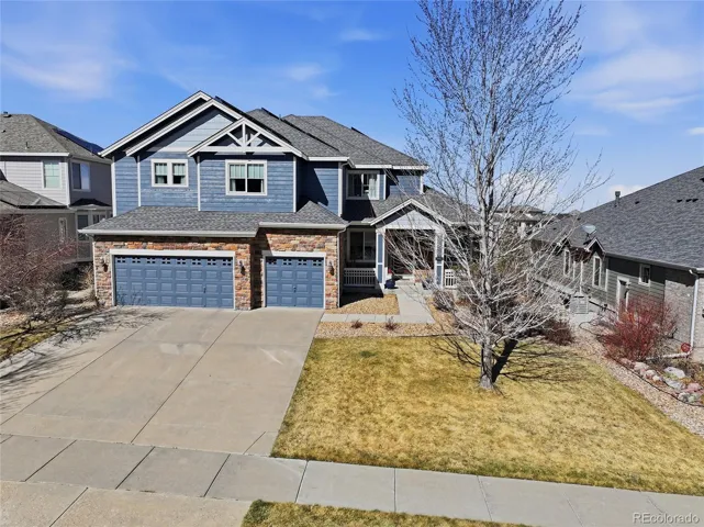 WELCOME HOME to this fabulous 4 bed, 3.5 bath, 2 Story home w/ split 3 car garage! Situated in desirable Castle Pines community on a spacious Cul-de-Sac Lot with trails, green space and playground behind! This home features extraordinary upgrades! Beautiful 2 story foyer w/ grand staircase and abundance of natural light. Formal dining room.