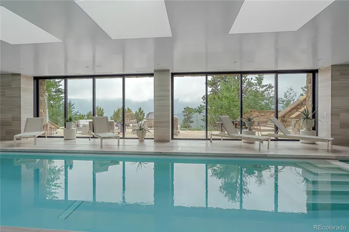 Welcome to 34089 Woodland Drive, a breathtaking mountain estate in the prestigious Soda Creek community of Evergreen. Set on nearly 8 pristine acres, this modern 6-bedroom, 7-bathroom home offers the perfect blend of modern luxury, recreational amenities, and serene mountain living—just under an hour from Denver.