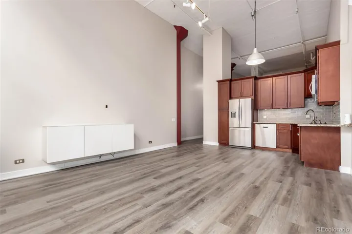 Live in the heart of it all! This beautifully remodeled loft-style condo puts you right on the iconic 16th Street Mall in Downtown Denver where shopping, dining, and entertainment are all just outside your door! Inside, you'll find a welcoming great room adorned with wood-look tile floors and an updated kitchen featuring stainless steel appliances, granite counters, tile backsplash, and rich wood