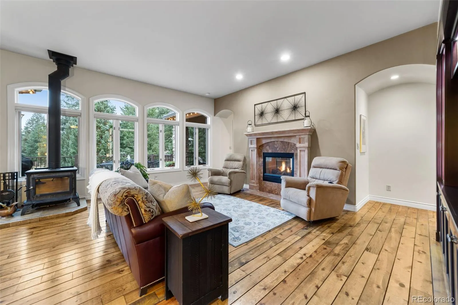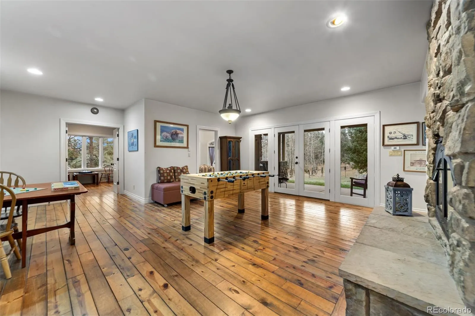 Serenity, beauty, seclusion: Step into a world of unparalleled living with an opportunity to own this astounding estate on 45+ acres adorned with majestic aspen, pine & fir trees. Abundant water rights & a unique chance to own a private mountain w/rock outcroppings & breathtaking views of Pikes Peak, Longs Peak & Co Springs. Build a guest house or the potential to subdivide the property, your possibilities are endless. An automated gated entry & asphalt driveways ensure both security & ease. This remarkable property features a drive-through 48×30 RV barn w/full hookups, 40×30 equip. garage, gardens, greenhouse, 4×4 trails, archery range, hiking & more. Utilizing floors milled from the property’s trees this home will allow you to experience warmth w/ radiant floor heat & 8 fireplaces. An exceptional layout tailored for luxury & convenience, the owners retreat on the main level features an ensuite bath, huge closet & private laundry. A spacious kitchen w/nook & formal spaces, perfect for casual & elegant dining. In add’n the living room is a cozy retreat for relaxation, a lg mud room & kitchen pantry to keep organized, & both his-and-her dens for productivity. Upper level features 2 bedrooms w/ ensuite baths, a loft, & laundry room. Lower level has 2 add’l bedrooms, bath, 3rd laundry space, 2 versatile flex spaces & a rec room walking out to a dry below patio & a peaceful view of the backyard. The outdoor space is designed for ultimate privacy & enjoyment, while enjoying the woodburning fireplace on the covered trex deck or gatherings around the firepit near the aspen grove, you’ll be relaxed. This outdoor oasis is an extension of your living space, bringing you closer to nature. Home also has an upper level oversized 2 car garage, an add’l lower level side garage & workshop. You will not find another property like this less than 10 minutes to Monument & minutes to schools. This is a true sanctuary of natural beauty that is more than a home, it’s your personal haven.