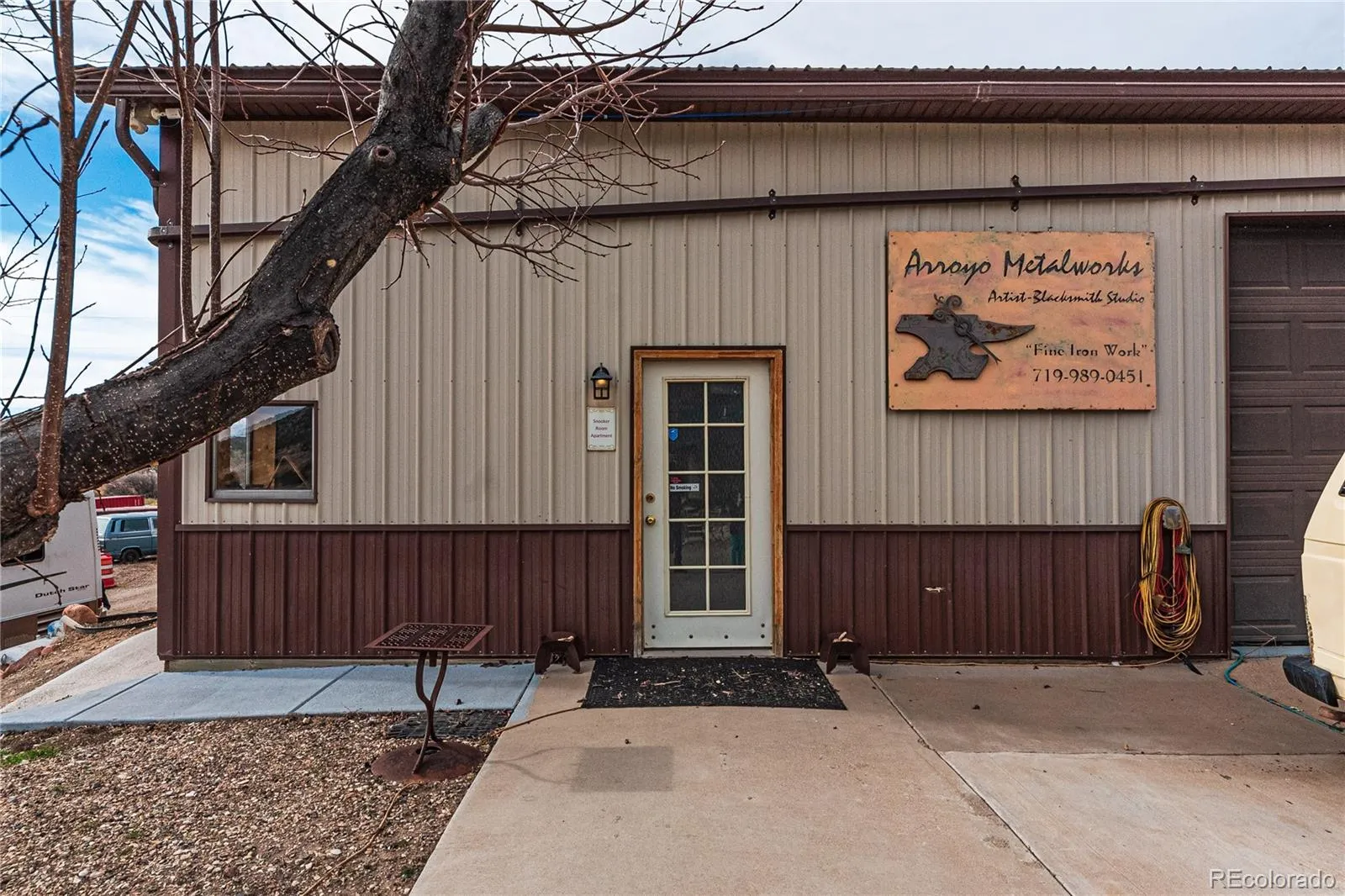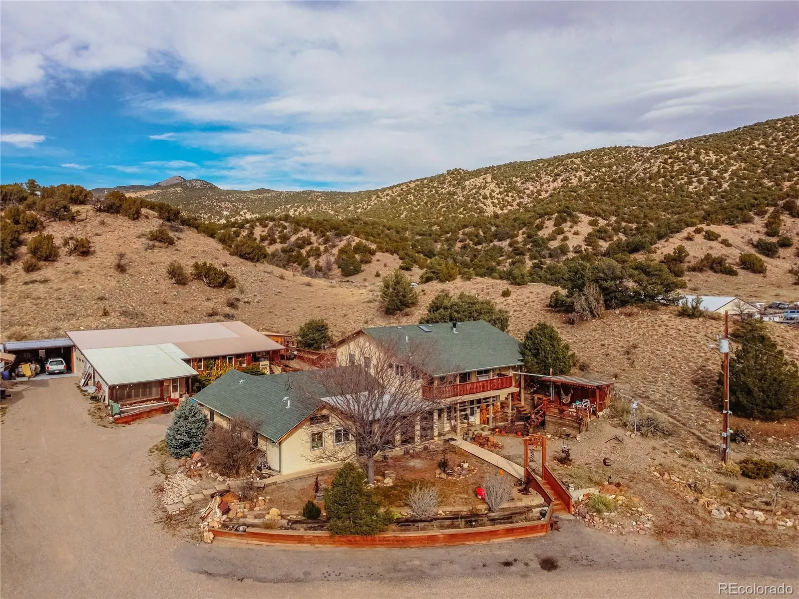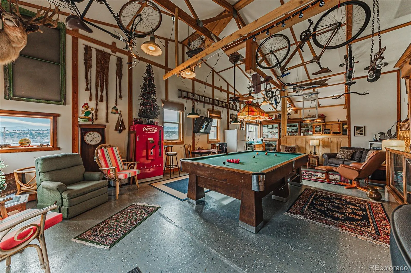 Generate income with two fully furnished 2-bed, 1-bath guest homes, a bunkhouse, and 3 RV sites with laundry and bathroom facilities. Additional room for more RV and camping sites enhances the potential. The property also includes several carports, a 2600 SF building with a mechanics shop, and ample storage.
