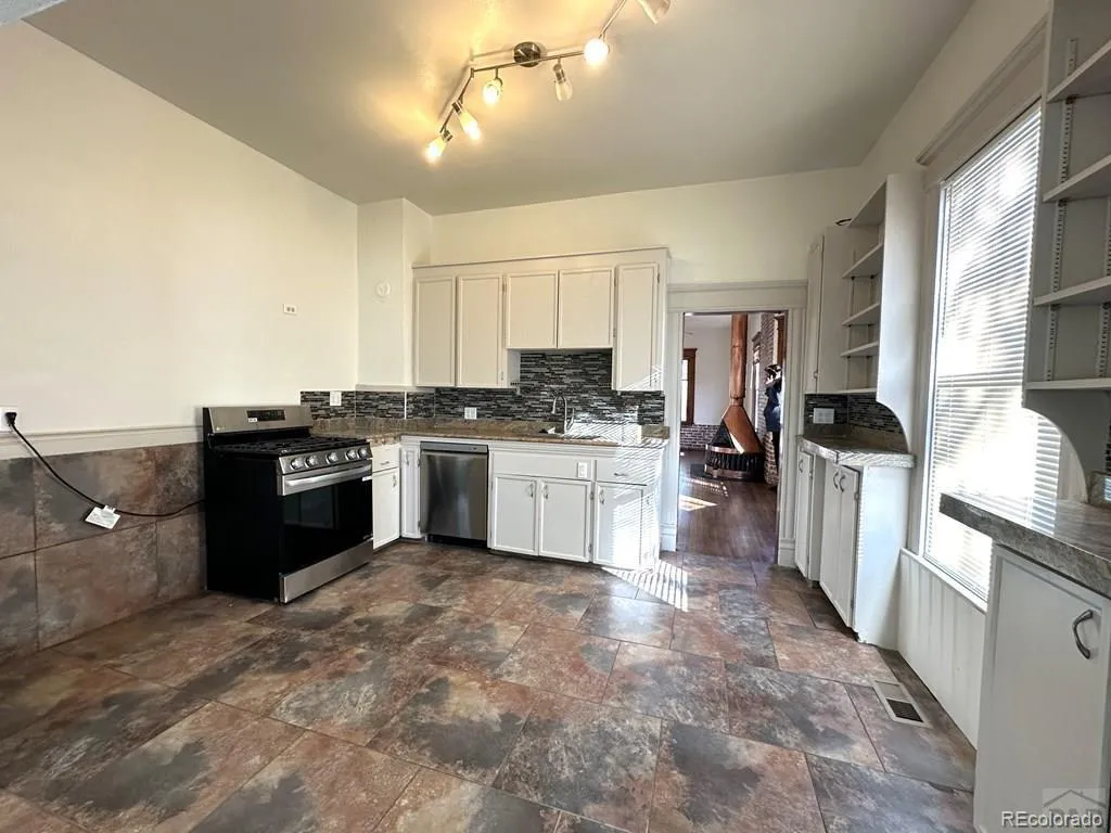 Beautifully remodeled Victorian Single family or Duplex, 2 gas meters, separate entrances or joined through bedroom. Turn Key with 2 New HVAC systems, New Sewer Line, updated plumbing, New Electric Service panel in home and updated electrical throughout also Newer Electric service panel on Garage with 220, New 50 gallon water heater, New Roof New Gutters, New paint inside and out, New Dual Pane Vinyl windows. New Granite Countertops in both kitchens, New Tile and LVP flooring in bathrooms, New Stainless Appliances and washer and dryer in Main Kitchen and New appliances and washer/dryer in upper kitchen with Granite countertops. New carpet, pad and LVP flooring upstairs. Large backyard surrounded by wood fence. 1 car Garage, new overhead door with auto opener and walk-through door, large carport and shed in back of garage all new roof and gutters with alley access.