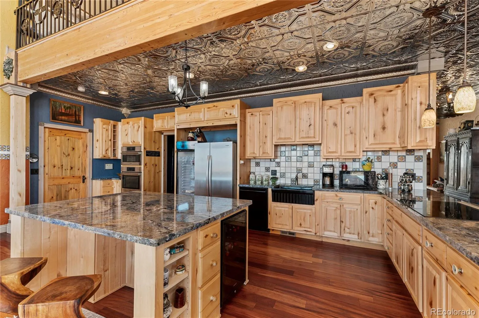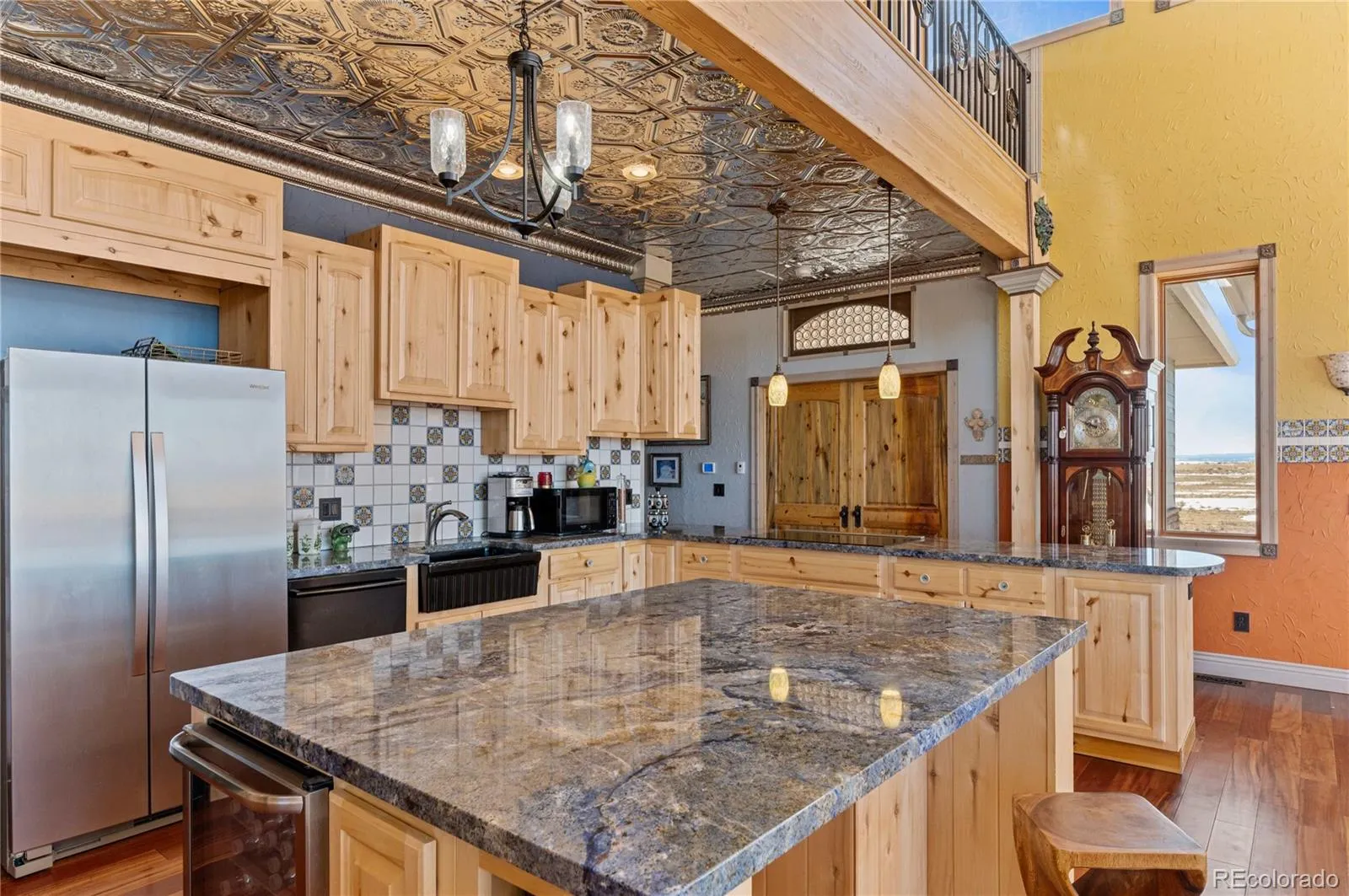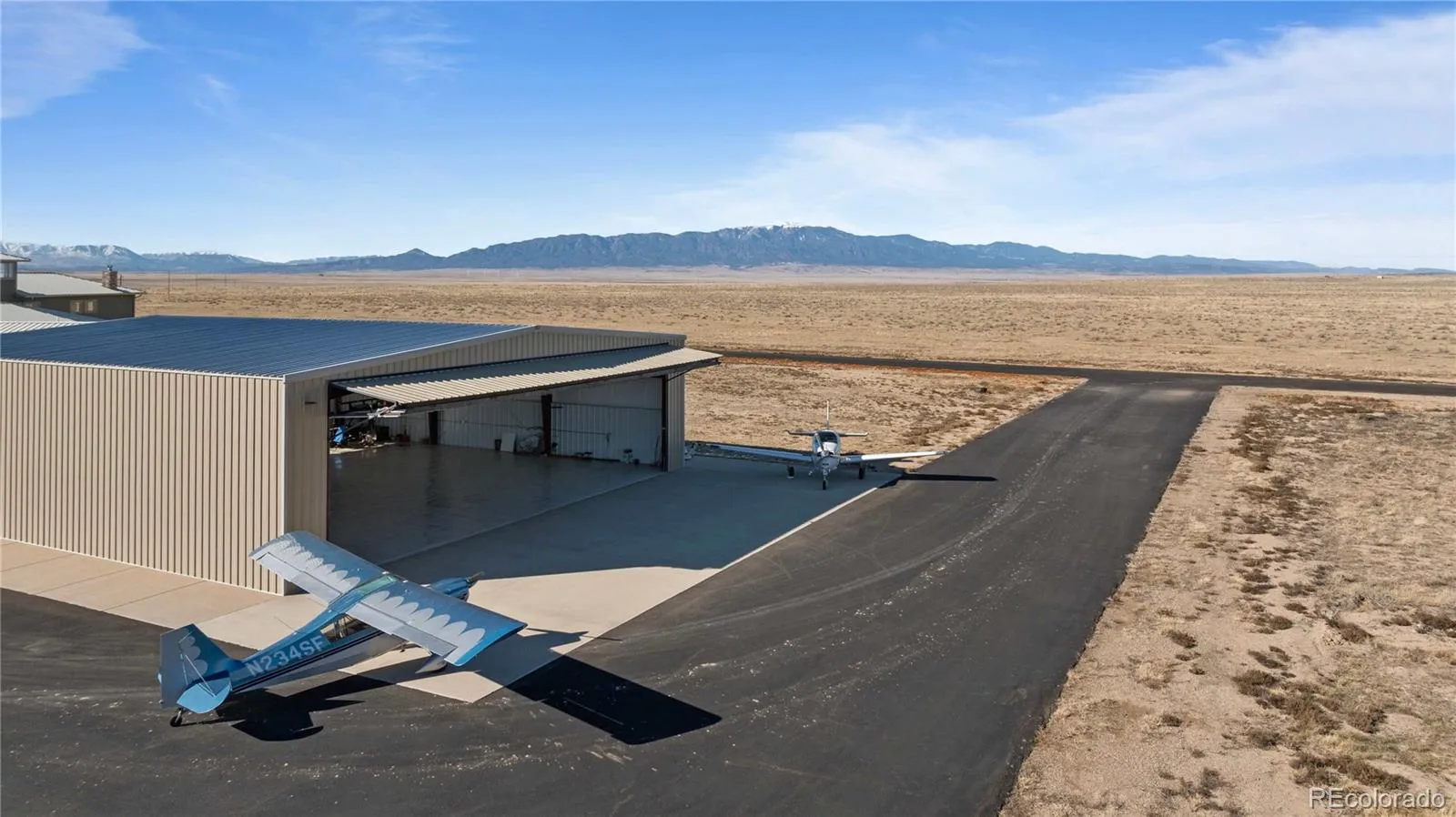 Nestled within 15 miles of Walsenburg, Colorado, Flying D Ranch is a remarkable fusion of luxury, functionality, and natural beauty. This one-of-a-kind property features a stunning 6,545-square-foot custom home, a 6,000-foot FAA-registered runway, and extensive facilities designed to accommodate both a sophisticated aviation lifestyle and working ranch operations.At the heart of the ranch is the meticulously designed residence, where no detail has been overlooked. The grand living space impresses with soaring 30-foot ceilings, a custom 30-foot stone fireplace with intricate Mexican tile inlays, and a sunken seating area bathed in natural light from over 20 windows outfitted with electric blinds. The home showcases premium finishes throughout, including intricate Acacia, Brazilian Koa, Maple Wood, and Cherry Marble Tile floors, complemented by river stone wall accents, custom crown moldings, granite and Travertine surfaces.The gourmet kitchen is a chef’s dream, featuring Aspen cabinetry, a Bosch induction cooktop, stunning Blue Bahia granite countertops, dual beverage coolers, a large island, and an expansive walk-in pantry. Spacious bedrooms provide comfort and privacy, each offering en-suite bathrooms and walk-in closets. The main suite is a private retreat, complete with a whirlpool tub, multi-head walk-in tile shower, custom coyote glass sink, infrared sauna, and direct access to the patio area. Additional highlights include a spiral staircase leading to a loft and observation tower, a secure concrete safe room with a vault door, and a large mudroom adjacent to the garage. Designed for both elegance and efficiency, the home features 14-inch ICF construction walls, geothermal in-floor heating throughout, and 120 gallons of water heating capacity. The ranch is equally impressive outside the home. A 70x70x20 insulated Braemar steel hangar, equipped with bi-fold, roll-up, and walk-in doors, provides radiant-heated floors, 200-amp service, and water access.