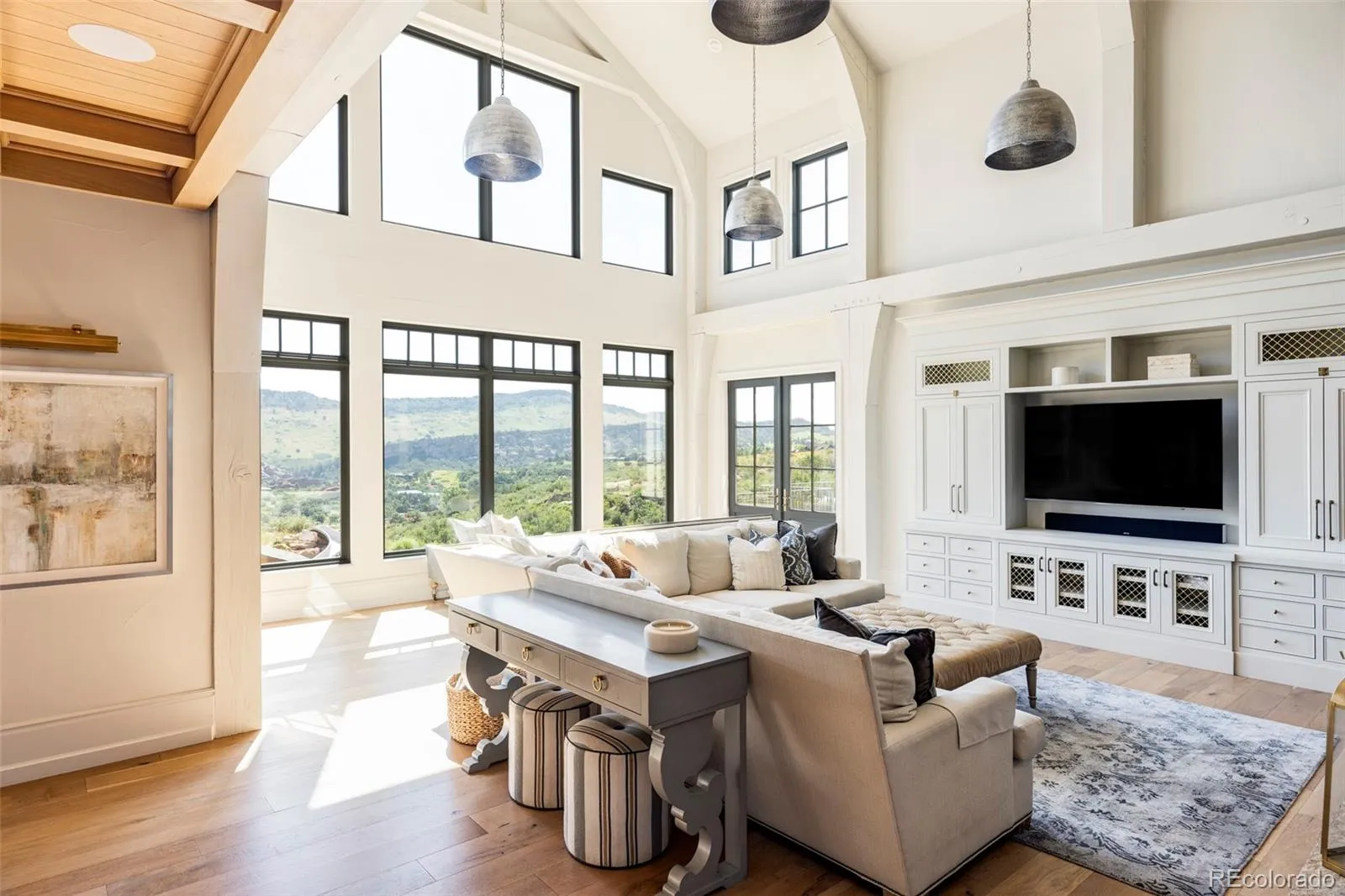 Welcome to the perfect blend of luxury and tranquility at White Deer Estate. This private mountain estate offers seclusion with convenient city and trail access for an unbeatable active lifestyle, plus a large barn for hosting events or storing your outdoor toys. The property spans 3.98 acres with captivating views of both the city and surrounding natural spaces. Stepping into the home, you’re greeted by a sun-soaked foyer and sitting room with elegant coffered ceilings and a fireplace. The main level includes a stately office with floor-to-ceiling oak paneling, a fireplace, and opens to the terrace. An expansive guest suite on the main level includes a sitting area, fireplace, a spa-like ensuite bathroom, and a separate entrance with a connection to a private garage. The sky-high ceilings in the living room allow natural light to pour in from floor-to-ceiling windows, illuminating the two-story stone-clad fireplace. The gourmet kitchen is complete with a walk-in pantry, butler’s pantry, and top-of-the-line appliances including a Thermidorian range and central vacuum system. Additional main-level spaces include a secondary office, mudroom, laundry room, and an indoor workshop connected to a four-car finished garage. Upstairs features five bedrooms, all with ensuite bathrooms and walk-in closets, a playroom, and an extra living or entertaining space. The serene primary suite offers a sitting room, private terrace, fireplace, and a luxurious 5-piece ensuite bathroom. The lower level features an indoor sports court, a living room with a modern fireplace, a full wet bar, and a home theater with tiered seating. Outside, the resort-style patio provides unmatched outdoor living areas, including a flagstone patio, two hot tubs, a pool with a slide, a fire pit, and a pool house with a bathroom and storage. The outdoor dining space and kitchen offer year-round enjoyment and an unparalleled living experience. This is truly a home you’ll fall in love with the moment you arrive.