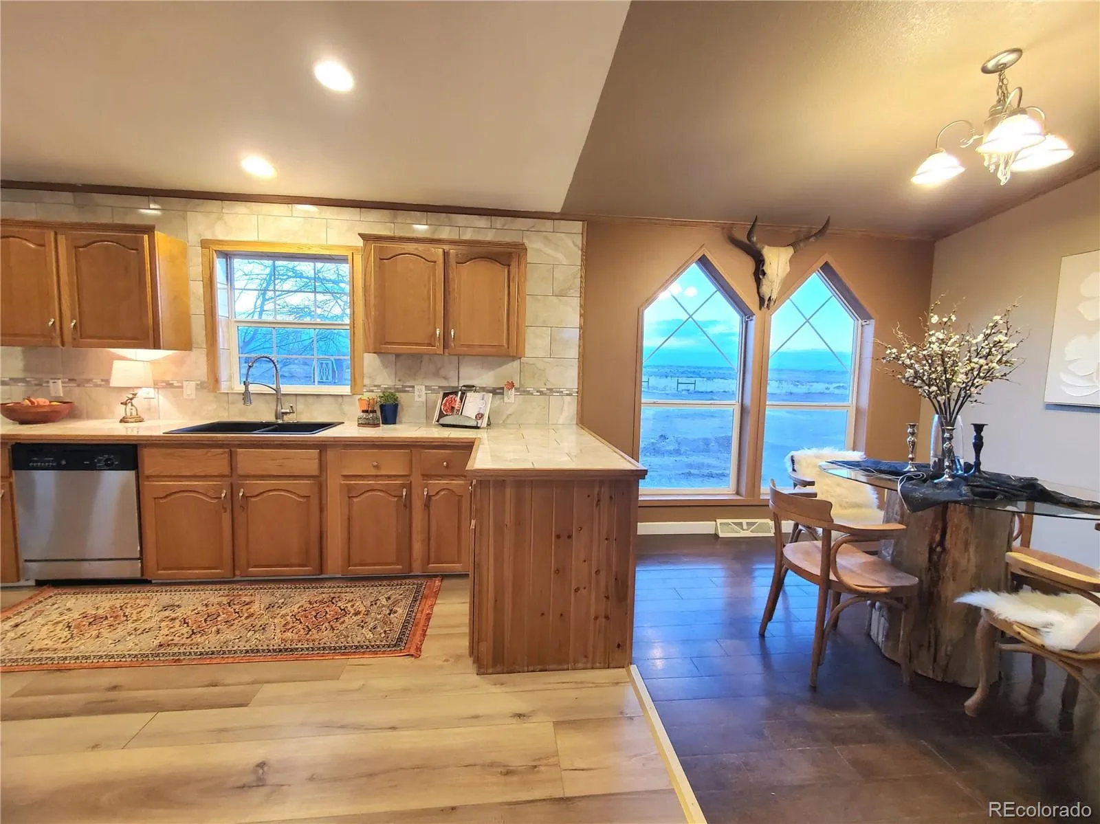 Discover the perfect blend of mountain tranquility and practical functionality on this 5-acre homestead. This open-concept, one-level ranch provides a spacious, inviting atmosphere with 4 bedrooms and 3 full baths. A separate office offers the ideal space for remote work, while the master suite presents panoramic views of Pikes Peak to start your day. Cozy up in one of two distinct living areas, each featuring its own wood-burning fireplace to ward off the winter chill. The large kitchen is a canvas for your culinary vision, with extensive oak cabinetry and a beautiful ceramic tile backsplash that extends to the ceiling. The formal dining area is a sun-drenched space, offering stunning views of the Wet Mountains through its cathedral windows. This property is exceptionally well-equipped for hobbies and animal care. The fully fenced grounds include a 2-stall barn with lights and electricity, a separate hay storage barn, and an additional loafing shed. The property also features a large garage/workshop with a heater, a separate two-car drive-through garage for vehicles or toys, plus additional storage shed. For your furry friends, a special dog room with an attached fenced run provides a dedicated space. Conveniently located just minutes from historic downtown Florence and 20 minutes from Lake Pueblo, you can enjoy rural seclusion while remaining close to all the amenities you need. The 10,000-gallon cistern for the home provides reliable water infrastructure. This unique property offers unmatched potential—come and explore all the possibilities today!