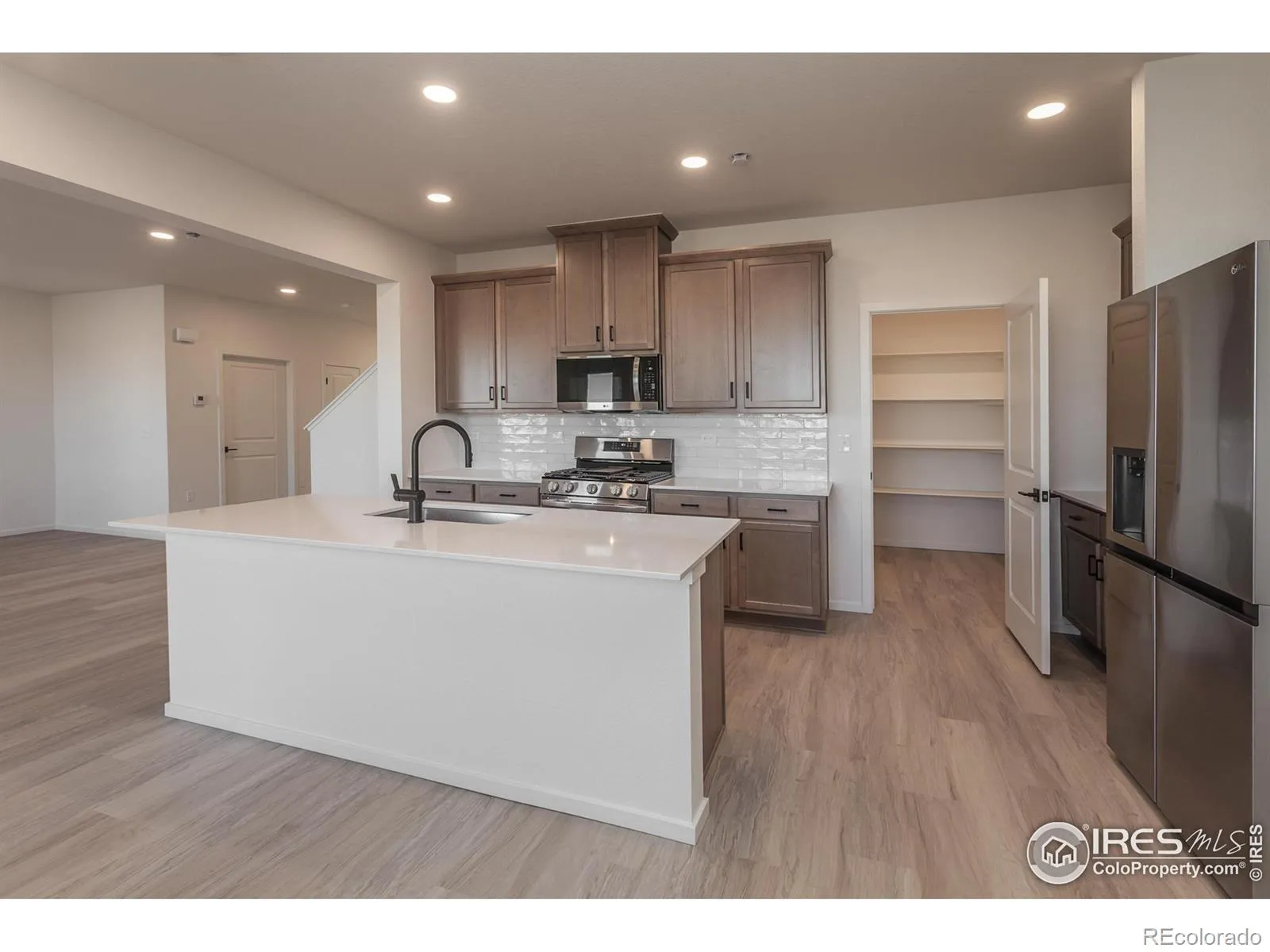 Oakley floorplan by Hartford Homes. New construction, two-story. Spacious kitchen w/ island and walk in pantry. S.s. dishwasher, gas range, microwave, fridge. Washer & dryer included. Biscotti maple cabinetry. Quartz countertops. Vinyl plank flooring in entry, kitchen, dining, baths, laundry, great room. Office/flex space on main level. 4 bedrooms, loft and laundry on second level. Central a/c. Garage door opener and keypad. Front yard landscaping included. EV Ready Outlet in Garage. Future plans for community to have a Community Green, retail, parks, trails, pool. There is a $275 annual non-potable water fee to be paid to metro district. PHOTOS FROM ACTUAL HOME. Move In Ready