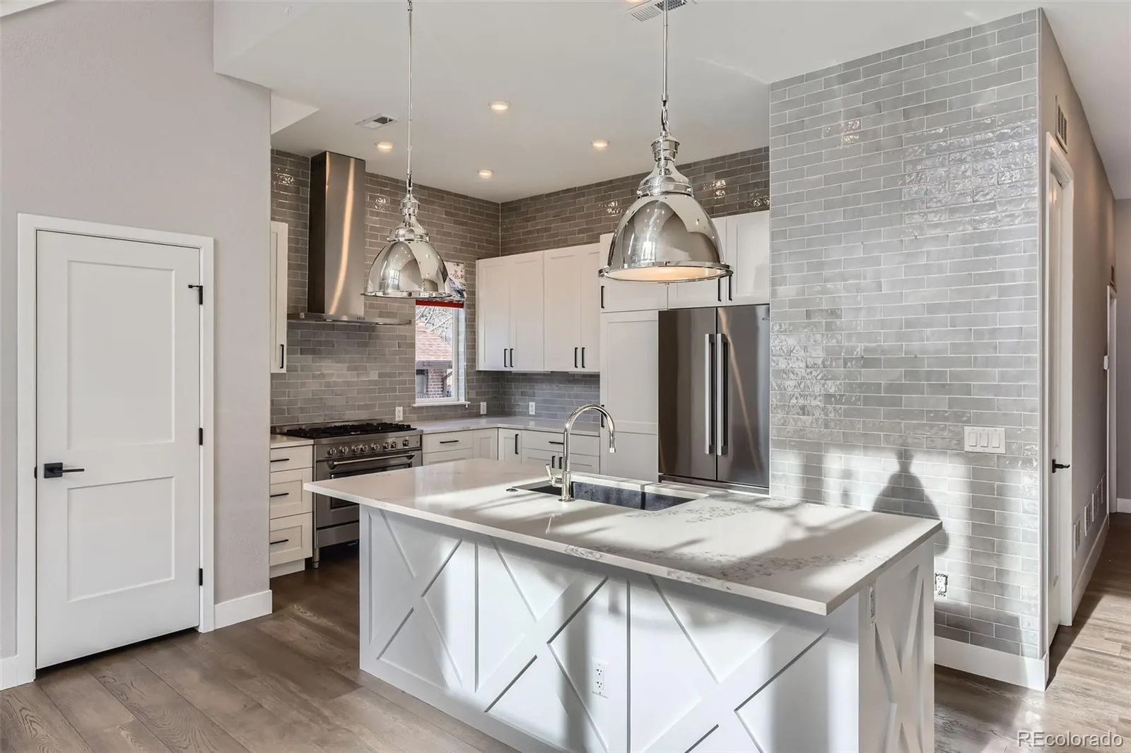 Contemporary living at its best in the heart of suburban Denver, The University of Denver and blocks from the I-25 corridor. This stunning 3-bed, 3.5-bath townhome has thoughtful design space, custom lighting and bathroom fixtures, customized window treatments with remote controlled window coverings. The 2-story foyer welcomes an open-concept for entertaining and dining. The fully equipped modern kitchen features white quartz countertops and a large center island with an under-mounted double sink, dishwasher, and disposal. Top-of-the-line appliances include a 5-burner gas cooktop, range hood, microwave, and French Double Door fridge/freezer with ice maker. Down the hall is a 2-piece powder room, the laundry closet, a main floor large bedroom with 4-piece quartz bath ensuite and walk-in closet. A mini mudroom area provides bench seating and custom shelves adjacent to the 2-car attached garage. As you ascend the 2nd floor, a large open loft overlooks the main floor. Down the hall is a 2nd bedroom with ensuite bath, walk-in closet, and the oversized Primary bedroom with ensuite bath and oversized walk-in closet with high ceilings and west-facing windows. The top floor is the star of the home: a wet bar, mini loft/flex space and private outdoor deck measuring 11’ x 23’. HOA permits it to be larger if you want. Seller is including outdoor furniture, 12 foot telescope umbrella and Weber gas grill/cover. This is the perfect time of year to grab stunning views of Observatory Park and the mountains. Gas and water hook-ups are included. The home is equipped with a radon mitigation system, installed alarm system, central AC and forced air heating. Living in this SMART townhome truly brings style and functionality. The convenient location gives the city feel within a suburban neighborhood. Now is that time to enjoy this enviable location with fabulous ownership!