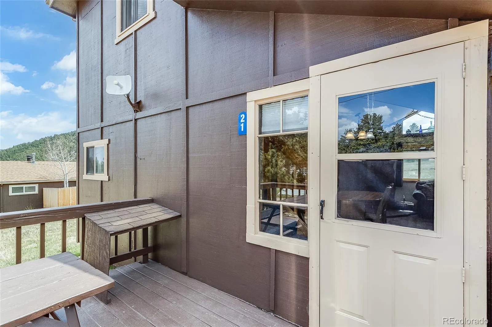 Charming 2 bedroom, 2 bath on 2 levels cabin in the woods! Exterior freshly painted this year. Main level living available with large upstairs bedroom with ensuite bathroom with 2 decks to enjoy the spectacular views. All furnishings are included in this adorable cabin. Cozy fireplace for you and your guests to cuddle up to while enjoying the wildlife all around. You will love this location, only a couple of miles from the YMCA of the Rockies and you can walk directly into Rocky Mountain National Park on marked trails and less than 2 miles from the Beaver Meadows entrance. Plenty of hiking and rock climbing in close proximity. This property sits on a large lot (which you will own) and plenty of wildlife wondering through for you and your guests to enjoy. This property is a must see for anyone interested in short term rentals in the area. New washer and dryer connections in the main level bathroom. Buyer or buyer’s agent to confirm house and room measurements. No STR license so you will need to check with Larimer County if you are considering short term rentals. The property is not located inside the City of Estes Park so you will only need to apply through Larimer County.