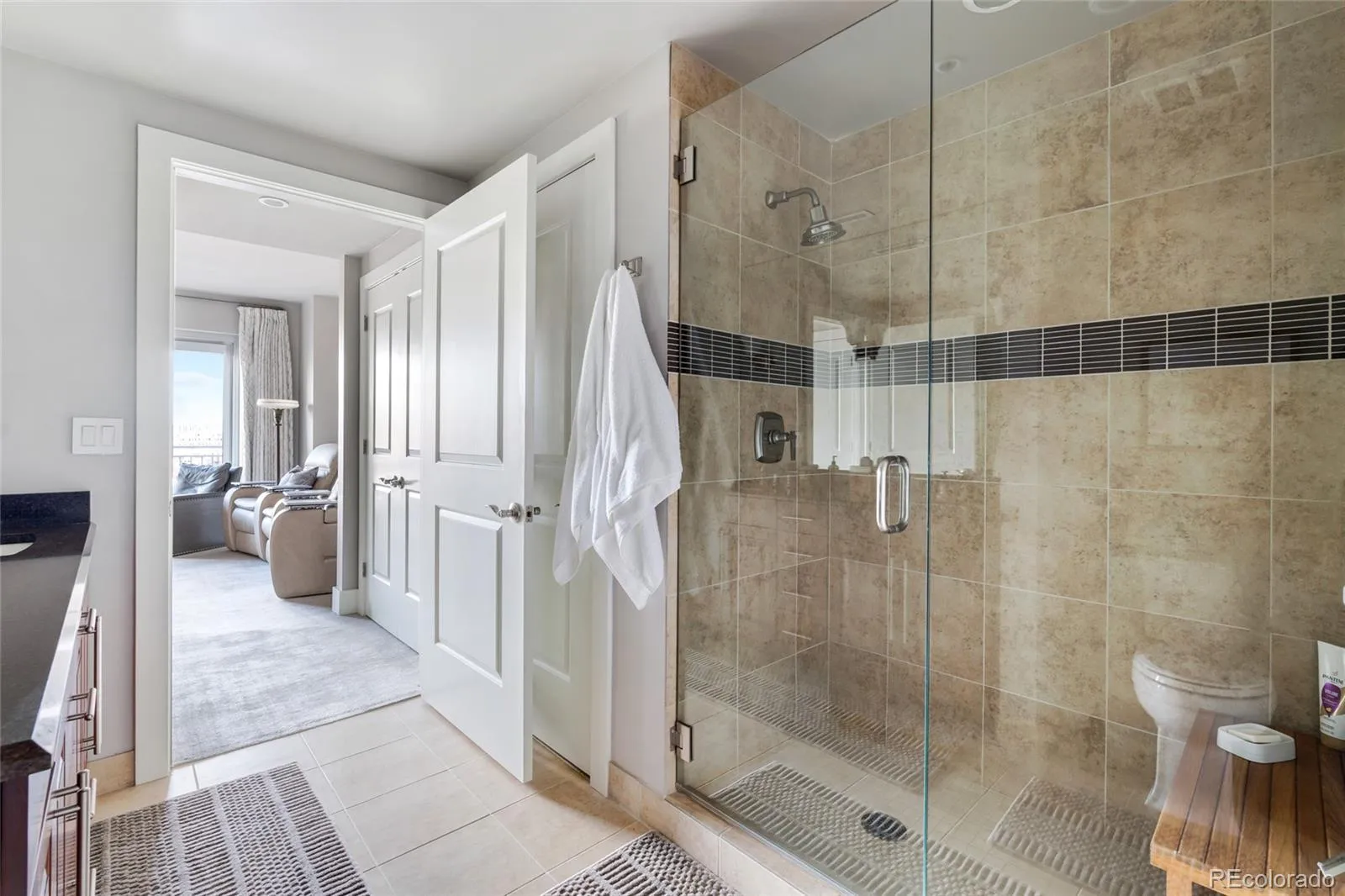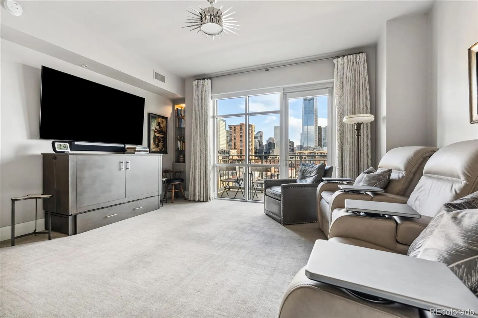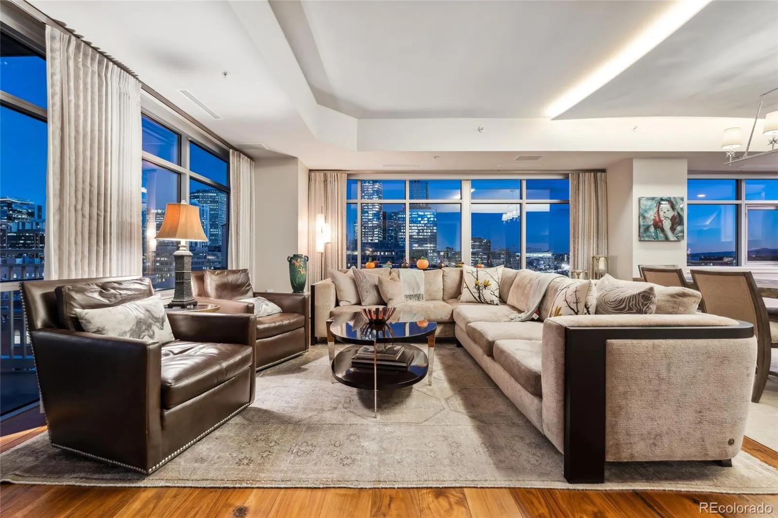 Sophisticated Urban Elegance in the Heart of Downtown – Experience breathtaking, uninterrupted views of the city skyline from this exquisite condominium, perfectly positioned on a serene cul-de-sac in the vibrant heart of LoDo and Downtown. This private yet centrally located gem has been professionally renovated and meticulously updated, showcasing impeccable craftsmanship and a luxurious ambiance. Step into the expansive open-concept living area, glass windows flood the space with natural light, offering panoramic of the spectacular downtown skyline, Union Station and Coors Field. The timeless, elegant design pairs perfectly with the sleek, world-class gourmet kitchen, featuring a grand island, professional-grade appliances, and tasteful finishes that make it the ideal space for entertaining. The spacious primary suite is a sanctuary of comfort and sophistication, boasting floor-to-ceiling windows, a custom walk-in closet, and two additional wall closets for ample storage. The large ensuite resort-style bathroom, with steam shower has been fully updated with designer details, blending modern luxury with classic style. The versatile second bedroom, currently styled as a media room, serves as a private retreat complete with an ensuite bath and large closet. This space is perfect as a guest room, second bedroom, or flex space. The second bedroom features a private balcony with spectacular city lights and southern mountain exposure. Additional features include: • Two deeded underground parking space • secure storage unit •Exclusive building amenities, including a private gym (membership required), secure entry, and direct elevator access to each floor • Built in Sonos sound system. Perfect for season ticket holders of the Broncos, Avalanche, Nuggets, Rockies and Denver Center for Performing arts (DCPA)