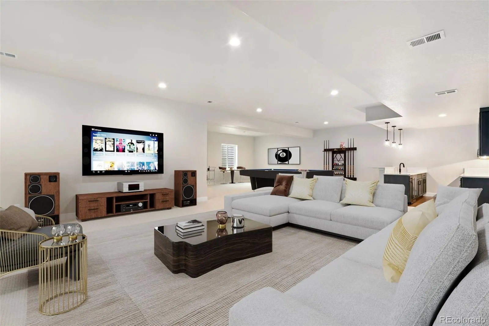 New home by Trumark on a beautiful one-acre homesite! Voluminous great room with stunning stained ceiling beams overlooking the covered outdoor room and the gourmet kitchen, featuring a walk-in pantry and a center preparation island. The open kitchen includes shaker style cabinetry in a stained sage finish with stacked upper cabinets, Calacatta Elysio quartz countertops with a decorative tile backsplash, Monogram/Electrolux stainless steel appliance package, and decorative fixtures. A center-meet sliding glass door connects the light-filled great room to the covered outdoor room which features cedar tongue & groove ceiling detail, perfect for easy entertaining. A dedicated office overlooks the covered patio. The primary suite features ample windows, a luxurious bathroom, walk-in shower, and an elegant freestanding tub. An oversized walk-in closet completes the primary suite. On the other side of the home, you’ll find a large laundry with sink and cabinets, a second sitting room, and two secondary bedrooms both with ensuite bathrooms.The finished basement includes a rec room with a wet bar, and a fourth bedroom and 3/4 bath. The home comes with extensive 7-1/2″ plank engineered wood flooring throughout the entry, kitchen, dining and great rooms, luxurious carpet in bedrooms, spacious 10-foot ceilings throughout the main level and 10-foot ceilings in the basement, insulated steel garage doors, 3-car side-load garage, tankless water heater, AC, and much more. Situated on beautiful 1-acre lot close to a neighborhood park and RainDance National Golf Club. Neighborhood amenities of 15 miles of trails, orchards, trash/recycling included in your yearly master HOA dues of $300.00. Membership to the Raindance pool is optional and currently $510/year; other membership options combining amenities in Raindance and nearby Water Valley – “WaterDance”!