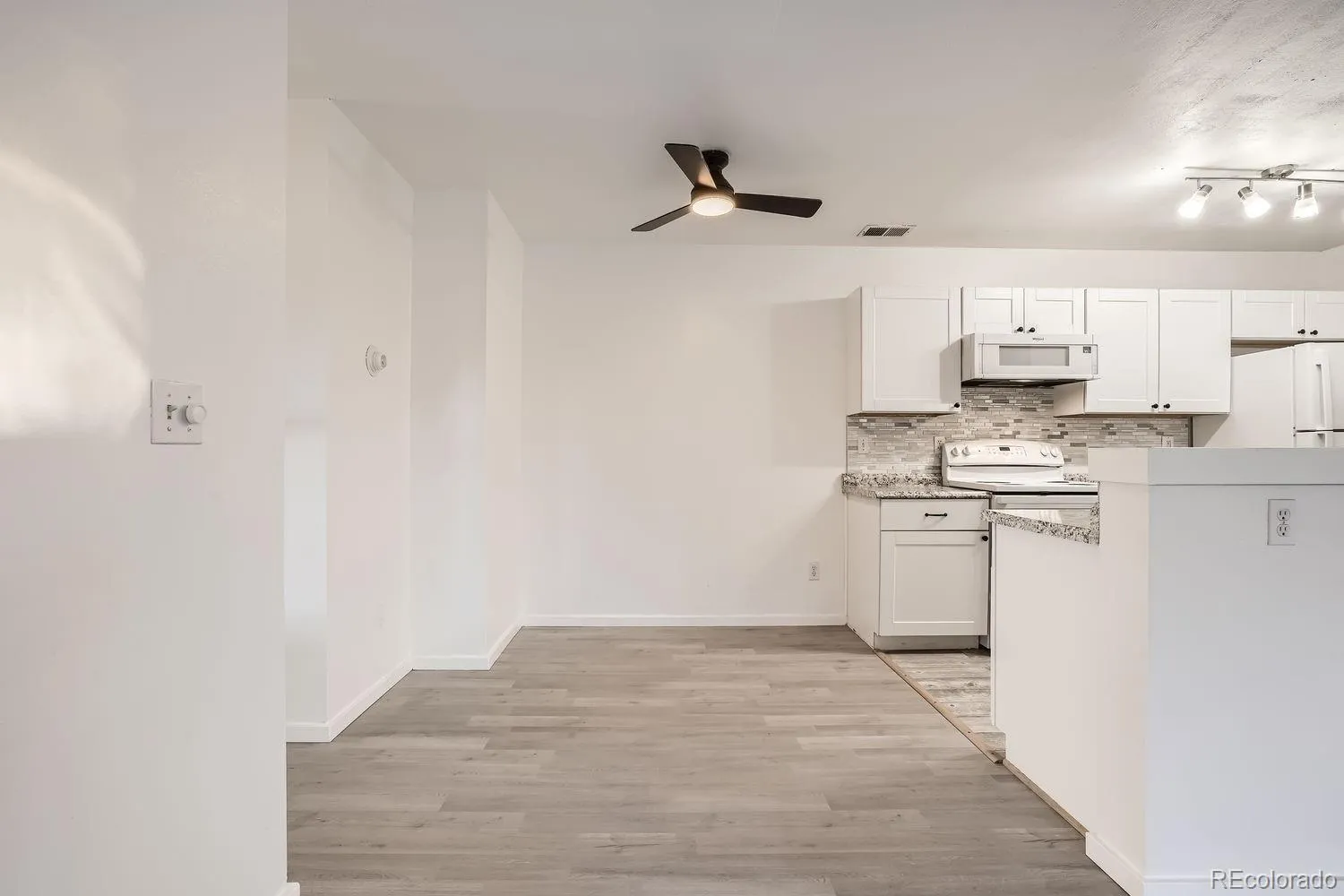 Renovated 2-bedroom, 1-bathroom condo with a garage and washer and dryer included! This stunning condo boasts an open floor plan with updated flooring, a modernized kitchen, and a refreshed bathroom. The kitchen features stainless steel appliances and ample cabinet space, perfect for cooking and entertaining. The spacious primary bedroom and a versatile second bedroom, which could also serve as a home office, offer plenty of comfort and functionality. Natural light flows through stylish window shutters, creating a bright and airy ambiance. The garage provides convenience and extra storage, while nearby parks, recreation areas, and open space offers endless opportunities for enjoyment. Conveniently located, this condo offers easy access to shopping, dining, and and other amenities.