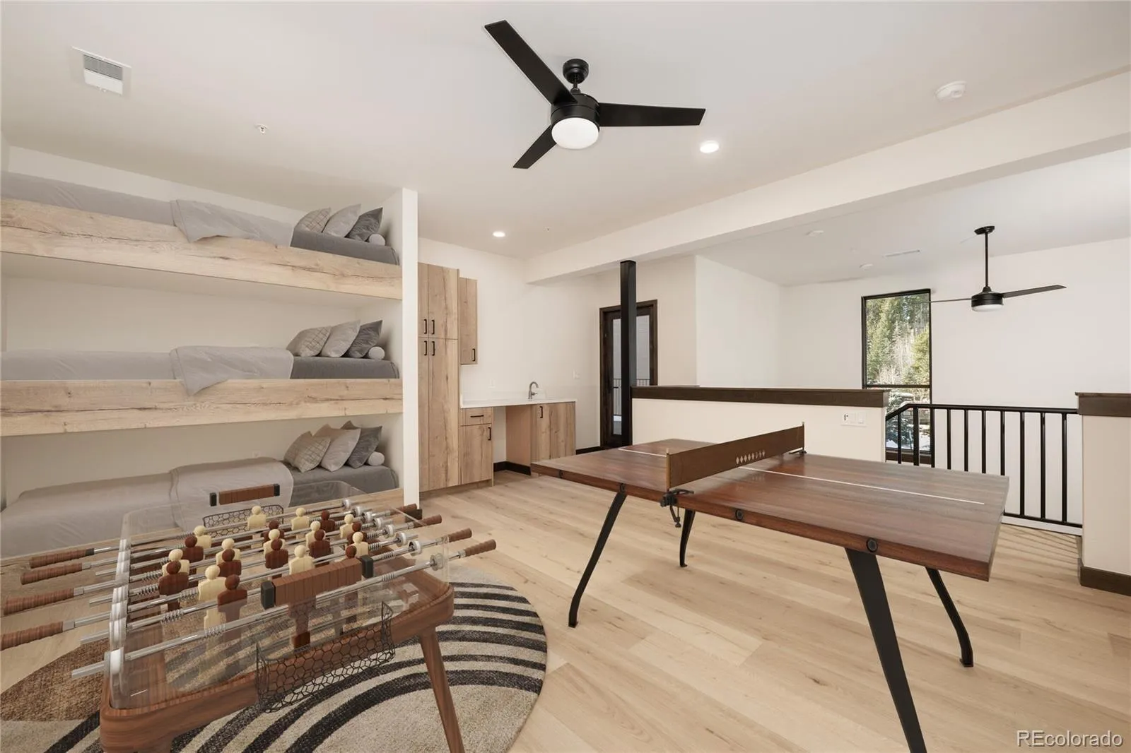 Enjoy listening to Vasquez Creek and views of the Resort while hanging out on the largest covered hot tub deck of all of the Arrow condos. This 2-story residence features two bedrooms & two bathrooms on the main floor plus a huge loft with 3 built-in bunk beds, game room and full bath. Beautiful mountain modern finishes throughout. Tons of storage in the condo plus a (approx.) 4×8 storage cage. One reserved parking space. Includes air conditioning.All residences include air conditioning, one assigned parking space and one storage closet approx. 4′ X 8′. Only 1.5% transfer fee at closing and NO on-going metropolitan district taxes. Arrow at Winter Park also includes overflow/guest parking, and a free shuttle shop directly in front. Please discuss with the Sales Team for a full list of standard inclusions and upgrades plus the cost of upgrades.