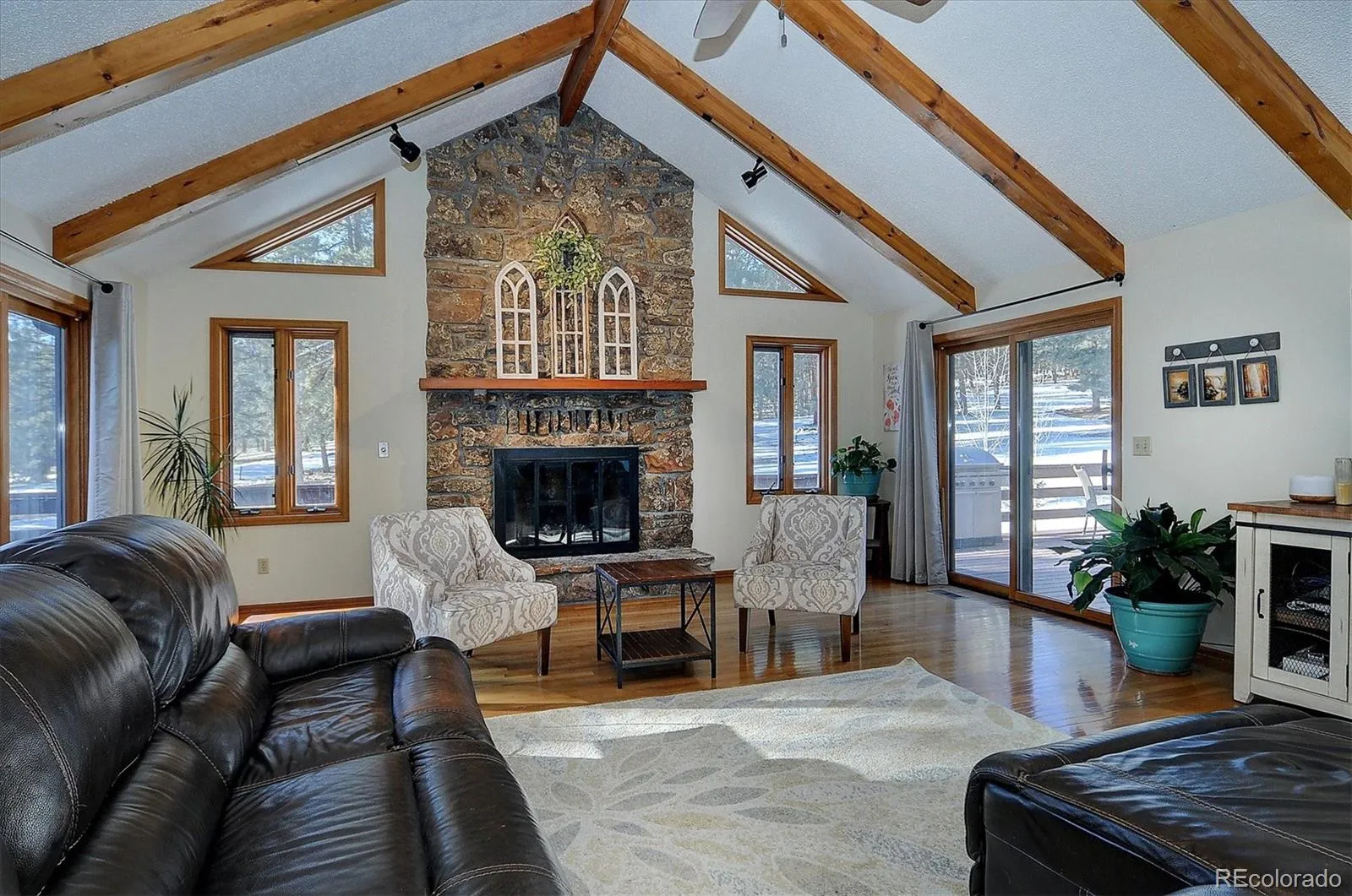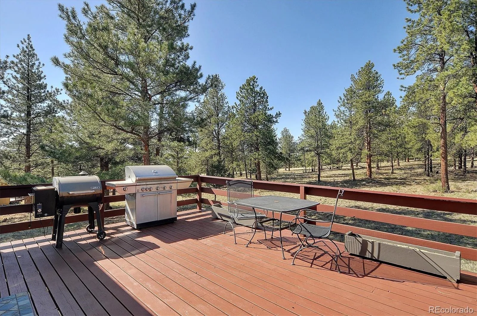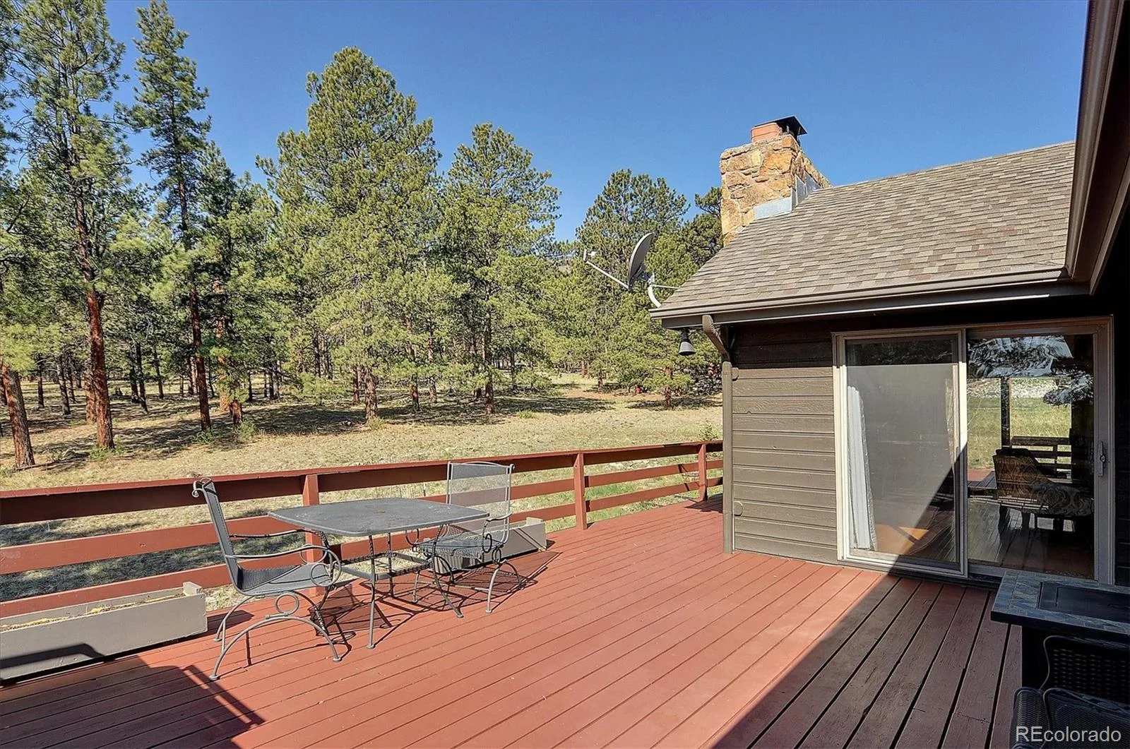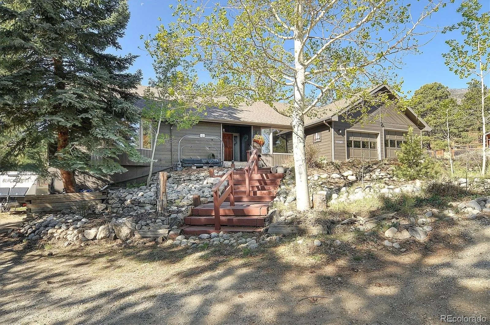 Bordering subdivision open space and then on to National Forest and nestled amidst aspen and pine trees in the Colorado Rockies, this mountain retreat is a haven of convenience, great space and natural beauty. Enjoy the indoor living space with vaulted ceilings accented with beautiful beams, striking moss rock fireplace, gorgeous hardwood floors, stunning wood counter tops in the baths, spacious eat-in kitchen with plenty of space for entertaining. The formal entry is great for welcoming friends and family and opens to the living room and formal dining. The nice windows and 2 mirrored sliding patio doors allow for views as well as the abundance of natural light in the living room-this is a warm and inviting space. The expansive kitchen offers plenty of granite topped work space, lovely wood cabinets, built-in pantry, access to the garage and the back deck and there is still plenty of room for an informal dining area. The primary bedroom offers an uninterrupted view of the forest and direct access to the private, wrap around deck; walk-in closet and dazzling tiled shower. The very spacious second bedroom is terrific for a bunk room or bedroom/playroom combined, with easy access to the full bath. With a mix of cozy open floor plan for entertaining and traditional spaces for guest, this layout is fantastic for main floor living with lower level space for overflow. Wait until you see this lower level complete with family room, kitchen area, laundry, 2 additional bedrooms, full bath and workroom or flex space. Offering an exterior door for private secondary living, this garden level living space is an incredible option for multi-generational living. The inviting exterior is a private location to relax and take in the tranquil mountains with easy access for a day hike or quick trip to downtown Buena Vista. Are the mountains calling? Don’t wait to explore this mountain beauty and all it has to offer.