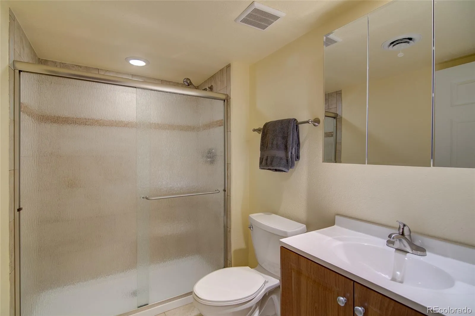 The main-level laundry room includes built-in cabinetry and a pantry for added convenience. The open living area boasts a gas fireplace, vaulted ceilings, and a dedicated desk space, making it perfect for both relaxation and productivity. The hallway leads to a large primary suite, complete with a 5-piece bath, a walk-in closet, double sinks, and a stunning maple-bordered vanity. Sliding doors open to your own private concrete patio. A second bedroom on the main level offers ideal space for guests or additional use.
