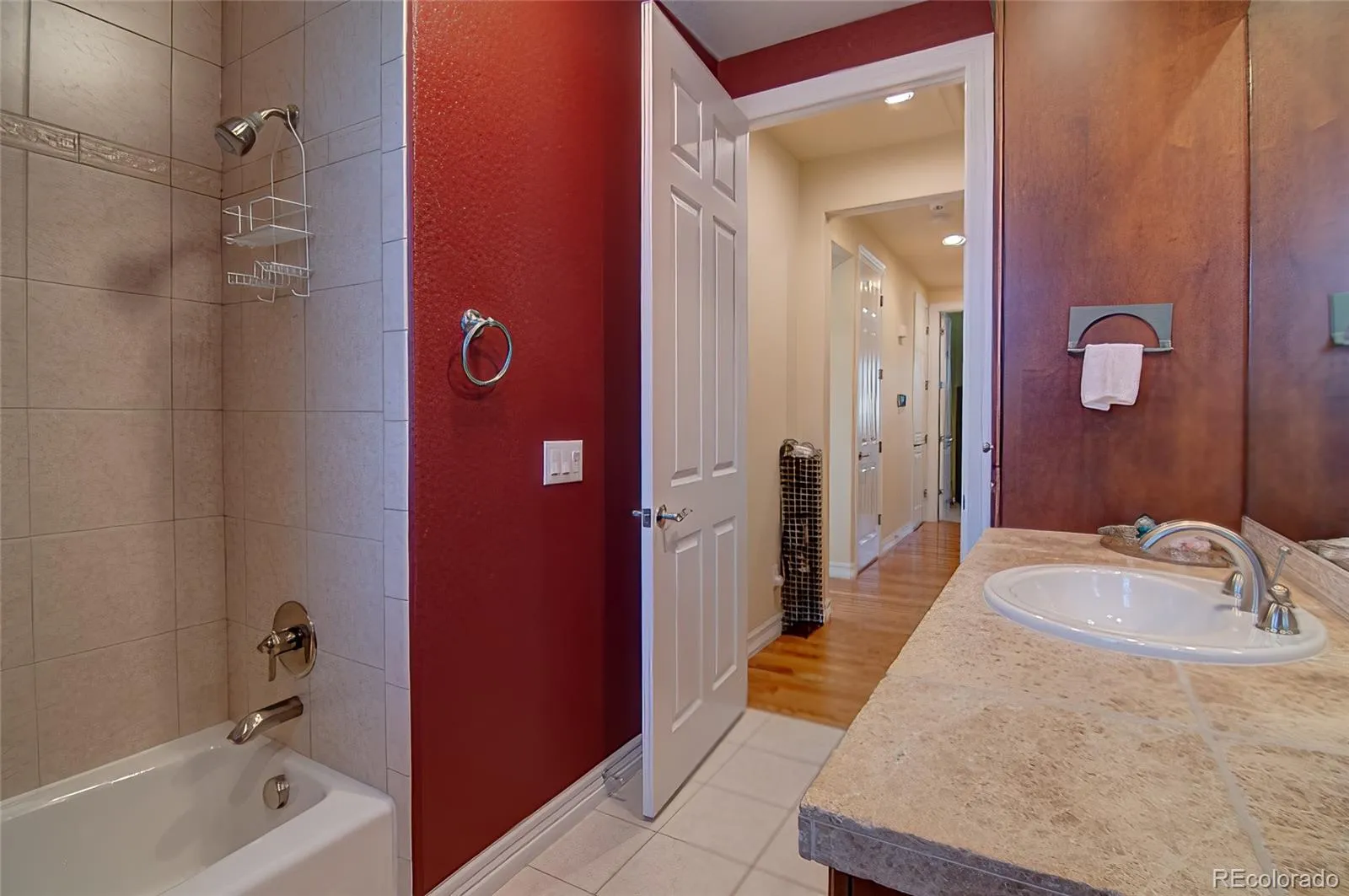 The gourmet kitchen is a chef’s dream, featuring upgraded cherry cabinetry, elegant granite countertops, a spacious granite island with a serving bar, and sleek stainless-steel appliances. Beautiful hardwood floors flow seamlessly through the great room, kitchen, and hallways, creating a warm, inviting atmosphere. The main hall bathroom provides elegance and roomy cabinetry for your ease.