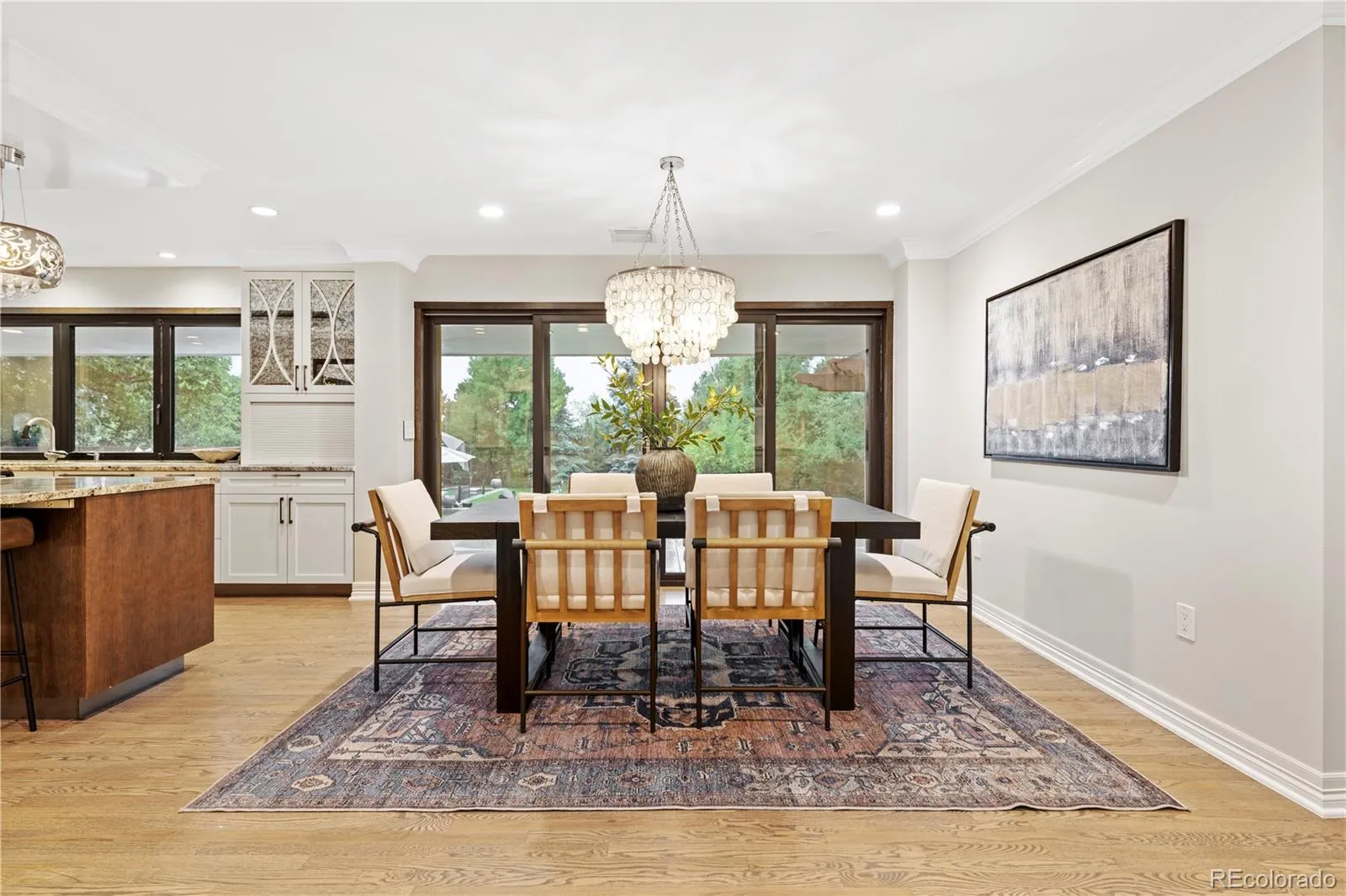 This resort style ranch-style home embodies the pinnacle of luxury, comfort and location! Situated on a serene and secluded road, the property is surrounded by mature trees creating a private retreat in one of Colorado’s most desirable neighborhoods. The heart of the home is the remodeled chef’s kitchen, featuring state-of-the-art appliances, ample counter space, custom cabinetry, and an accordion window that opens up the the south facing outdoor oasis. The expansive primary suite offers a tranquil escape, complete with a cozy sitting area and French doors that open to the back deck. The home is equipped with modern conveniences, including a Tesla charger, a new slate tile roof, upgraded 300-amp electrical service, a tankless water heater with a reserve tank, operable skylights, wireless lighting, and an integrated Sonos sound system. Property includes an attached two-car garage and the detached four-car garage, offering ample storage and workspace. Step outside to enjoy the gently sloping back yard that includes a stunning swimming pool, propane fire pit, pergola, and pond and making it the perfect space for entertaining or relaxing with loved ones. Adjacent to the kitchen, you’ll find a versatile room ideal as a home office or children’s playroom. Nestled on a generous 2.16-acre lot, this property is zoned for horses and provides the opportunity to build a guest house or barn. Walking distance to Belleview Station area with light rail access, restaurants, bars, hotels and a summer farmers market. Rarely does such a unique home with this level of luxury, privacy, walkability and acreage become available in the coveted Cherry Hills Village area. Don’t miss this extraordinary opportunity to own a true Colorado gem!