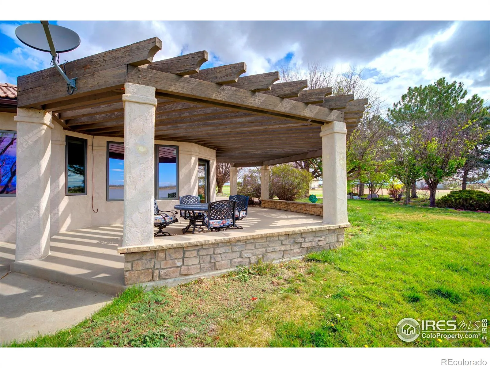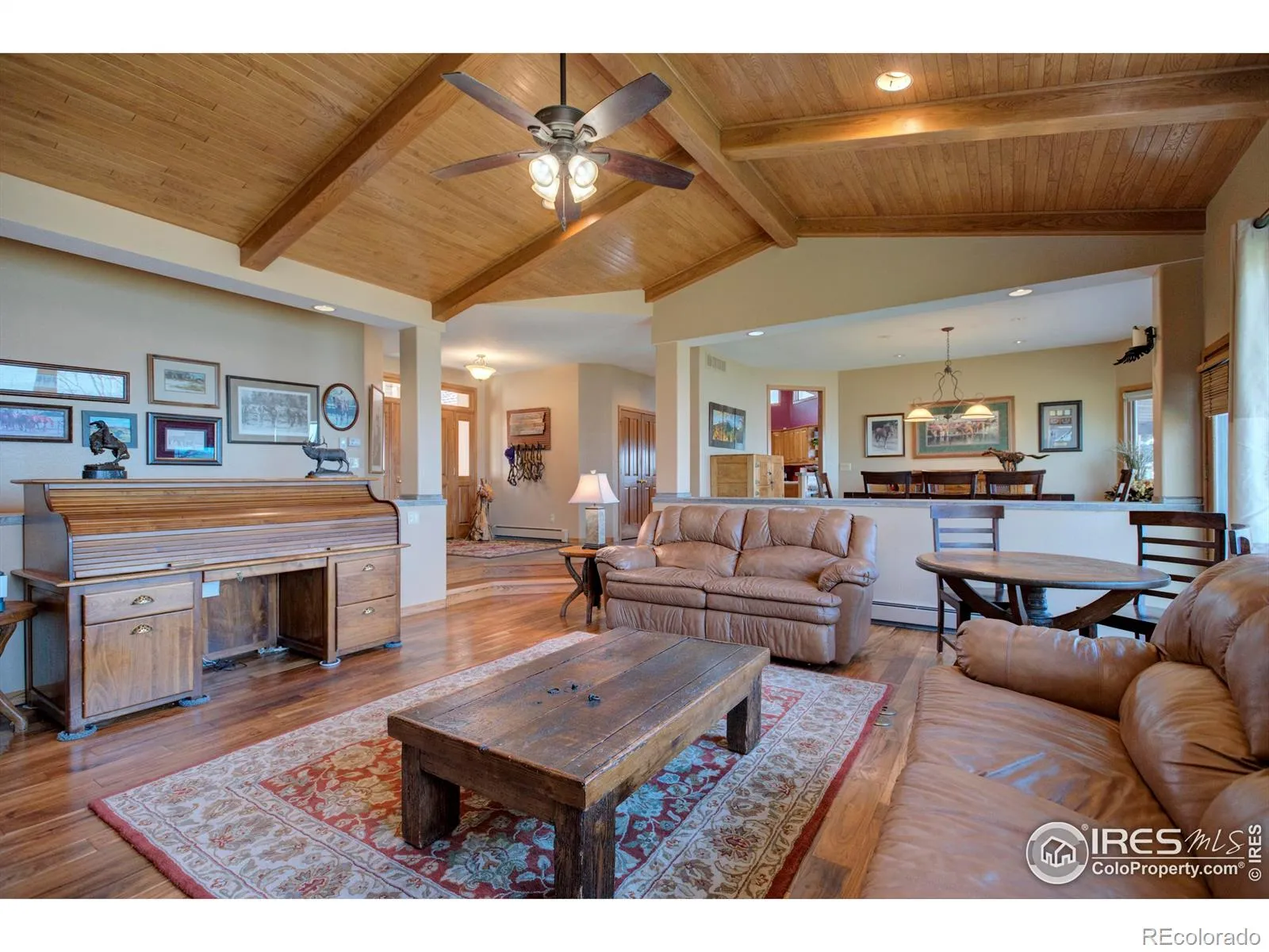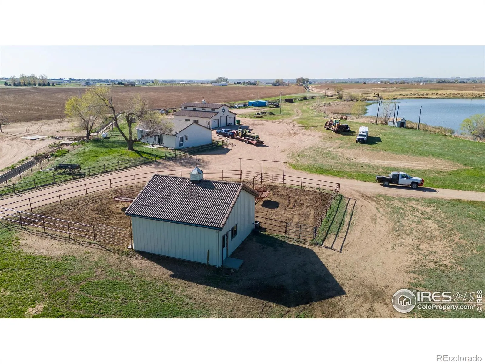Myers Lake Estate is a unique opportunity to own a custom home with a private lake steps from the back porch. Through the beautiful fence and gate entry, the estate home boasts approximately 5,047 square feet of living space and is situated on over 48 acres, featuring a 20-acre lake. Nestled between Eaton and Windsor communities, this private estate offers a beautiful Colorado front-range setting. The heart of the beautiful home features an open floor plan with a large eat-in kitchen, formal dining room, and living area with a stunning rock fireplace as a focal point. The updated kitchen features stainless appliances and a large commercial range with double ovens. The living room features large windows overlooking the lake and neighboring farmland against a background of the Rocky Mountains.The primary bedroom suite is spacious and has panoramic window views. The luxury primary bathroom features double sinks with added cabinets and counter space, a 10-shower head spa shower, and access to the two large walk-in closets.There are three additional bedrooms, bathrooms, and a spacious basement entertainment room.The grounds around the house are incredibly well thought out and manicured, complete with mature trees and maintained landscaping. A large patio with ample space for entertaining overlooks the private lake. Additionally, the property has a beautiful horse barn, corrals, pipe-fenced pasture of irrigated pasture with waterrights.Systems include septic, propane heat, central air, and North Weld County Water District water supply.The caretaker residence is a 1,320-square-foot modular home with three bedrooms and two bathrooms located on a separate parcel with a separate entrance.