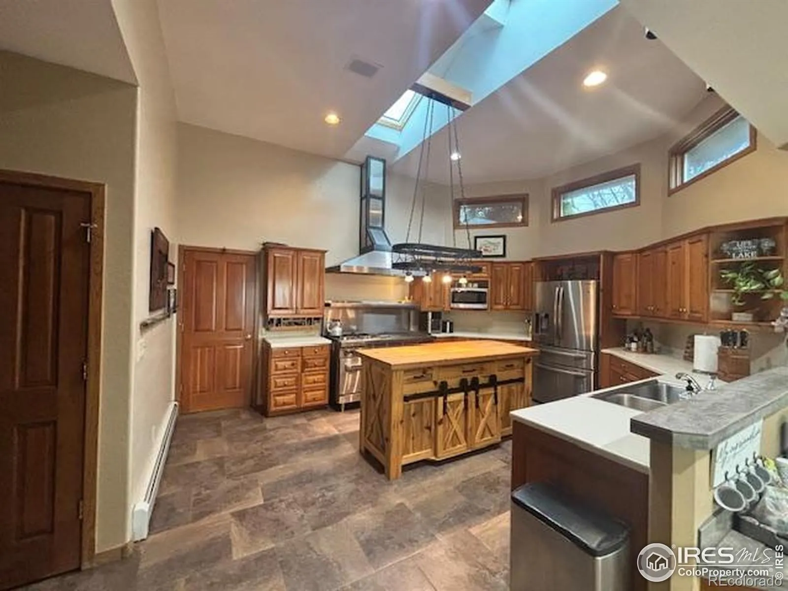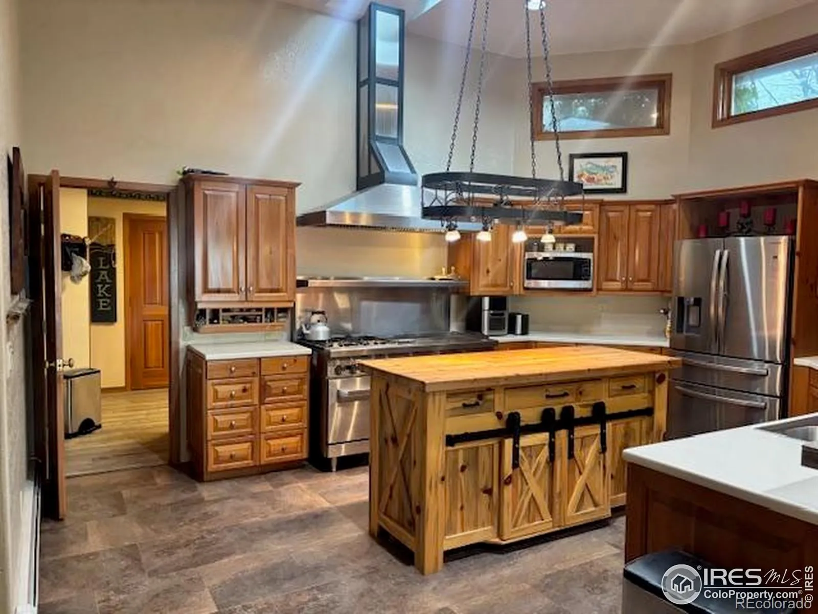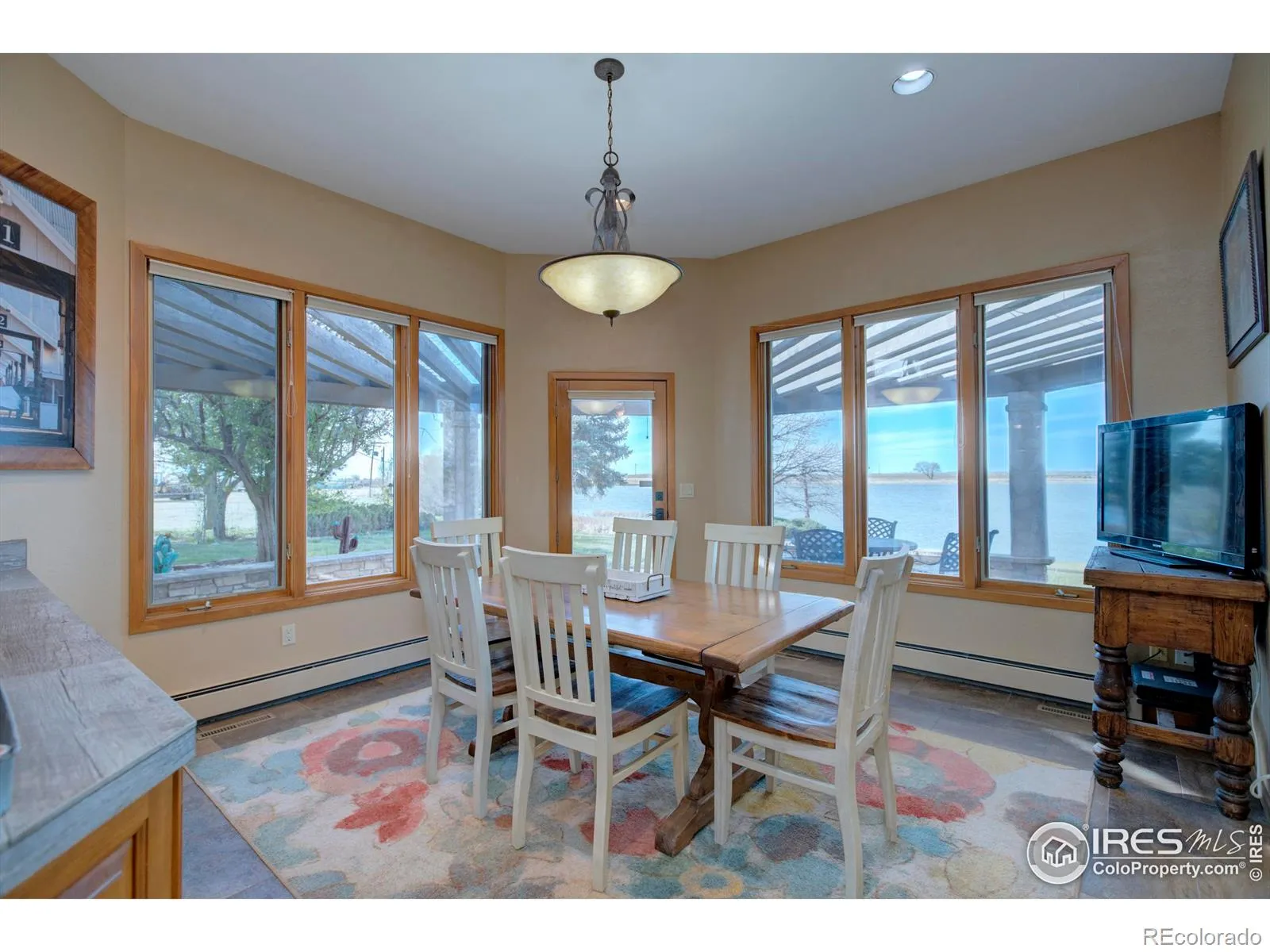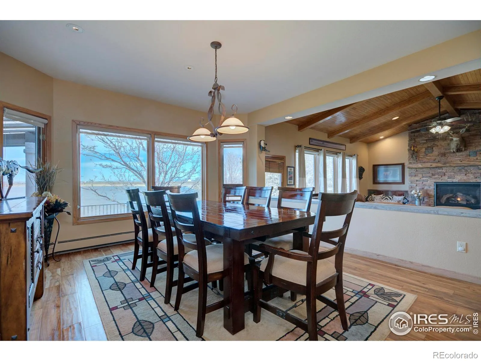 Myers Lake Estate is a unique opportunity to own a custom home with a private lake steps from the back porch. Through the beautiful fence and gate entry, the estate home boasts approximately 5,047 square feet of living space and is situated on over 48 acres, featuring a 20-acre lake. Nestled between Eaton and Windsor communities, this private estate offers a beautiful Colorado front-range setting. The heart of the beautiful home features an open floor plan with a large eat-in kitchen, formal dining room, and living area with a stunning rock fireplace as a focal point. The updated kitchen features stainless appliances and a large commercial range with double ovens. The living room features large windows overlooking the lake and neighboring farmland against a background of the Rocky Mountains.The primary bedroom suite is spacious and has panoramic window views. The luxury primary bathroom features double sinks with added cabinets and counter space, a 10-shower head spa shower, and access to the two large walk-in closets.There are three additional bedrooms, bathrooms, and a spacious basement entertainment room.The grounds around the house are incredibly well thought out and manicured, complete with mature trees and maintained landscaping. A large patio with ample space for entertaining overlooks the private lake. Additionally, the property has a beautiful horse barn, corrals, pipe-fenced pasture of irrigated pasture with waterrights.Systems include septic, propane heat, central air, and North Weld County Water District water supply.The caretaker residence is a 1,320-square-foot modular home with three bedrooms and two bathrooms located on a separate parcel with a separate entrance.