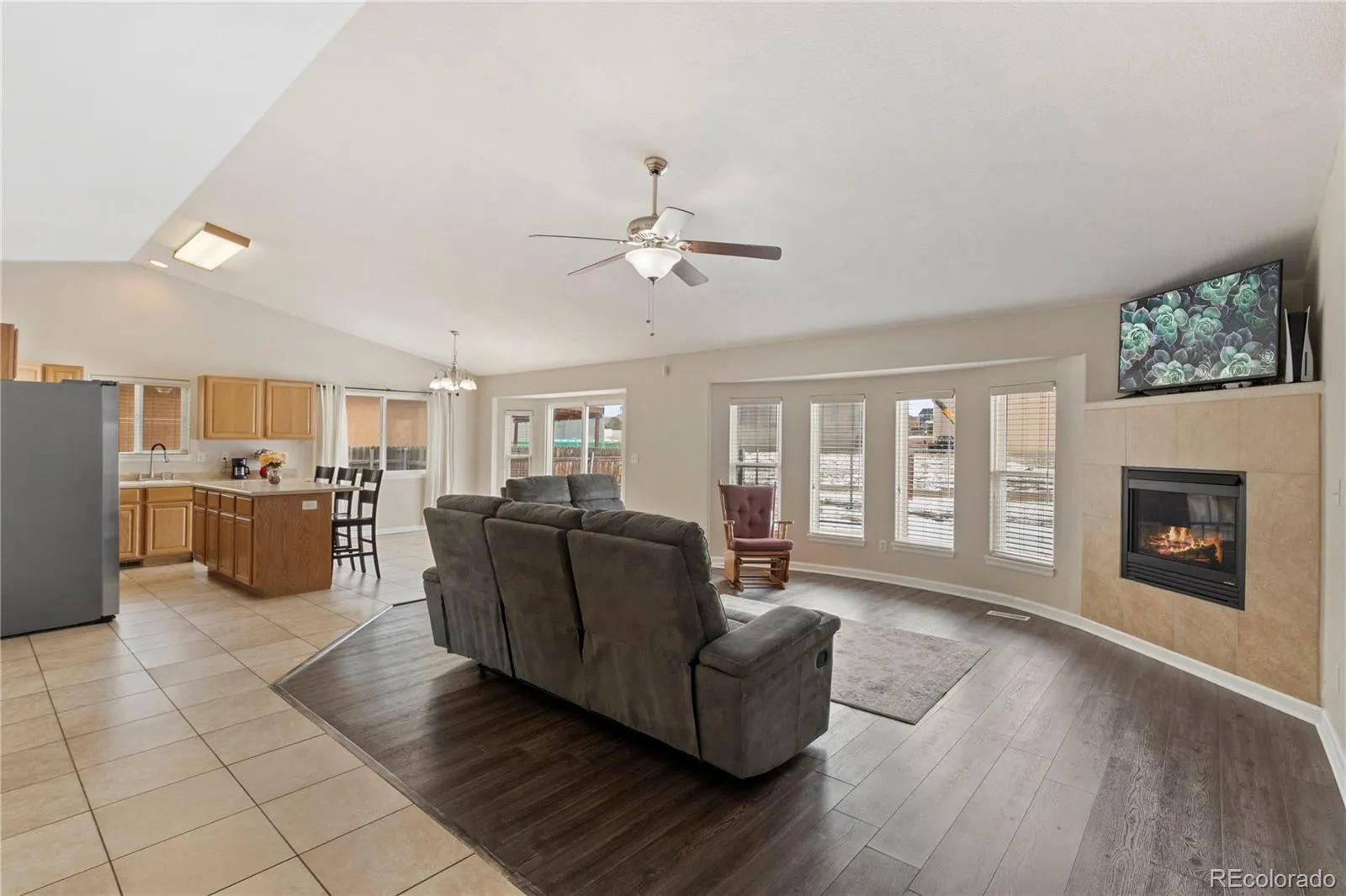 Welcome to this beautifully designed ranch-style home, where comfort meets functionality. Step into the foyer and make yourself at home before entering the inviting great room, featuring vaulted ceilings, a cozy gas fireplace, and large windows that fill the space with natural light. The open-concept kitchen is a chef’s delight with an island offering seating and storage, ample cabinetry, and tile flooring. The adjacent dining area provides walkout access to a spacious patio, ideal for outdoor gatherings and entertaining. The main-level primary suite is a serene retreat, boasting two closets (including a walk-in), a 5-piece en suite bathroom, and private walkout access to the back patio. A secondary main-floor bedroom features a charming bay window with a window seat overlooking mountain views, and a full guest bathroom completes the main level. The fully finished basement is an entertainer’s dream offering a massive family room with a gas fireplace, two additional bedrooms, and a bathroom with dual sinks and a large linen closet. You’ll also find a dedicated laundry room and an oversized storage closet for all your organizational needs. The basement has been finished with brand new carpet throughout. Outside, the backyard boasts a generous patio, the perfect setting for memorable dinner parties or relaxing evenings with loved ones. Additional features include a 2-car garage, a smart home security system, and a seller-owned solar panel system for energy efficiency. With its well-planned layout and thoughtful upgrades, this home is ready to welcome you!