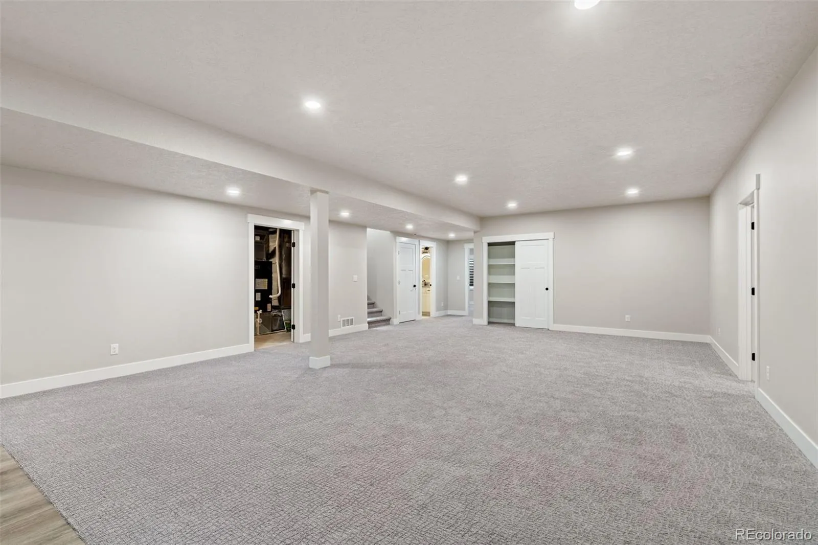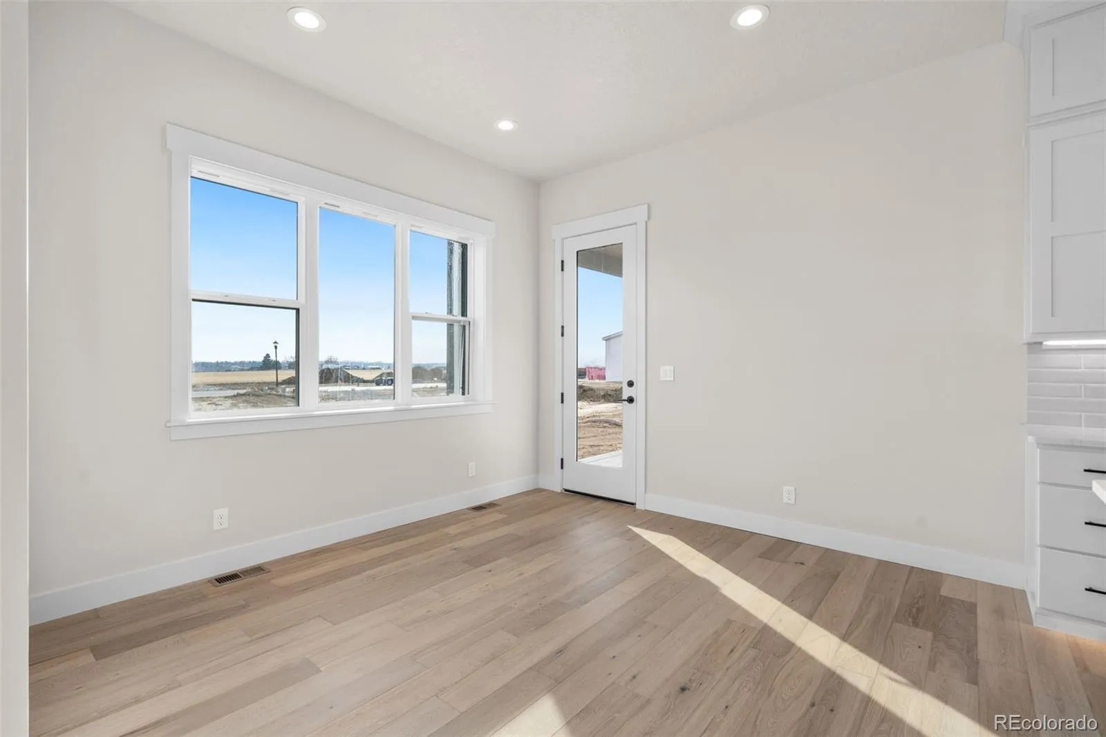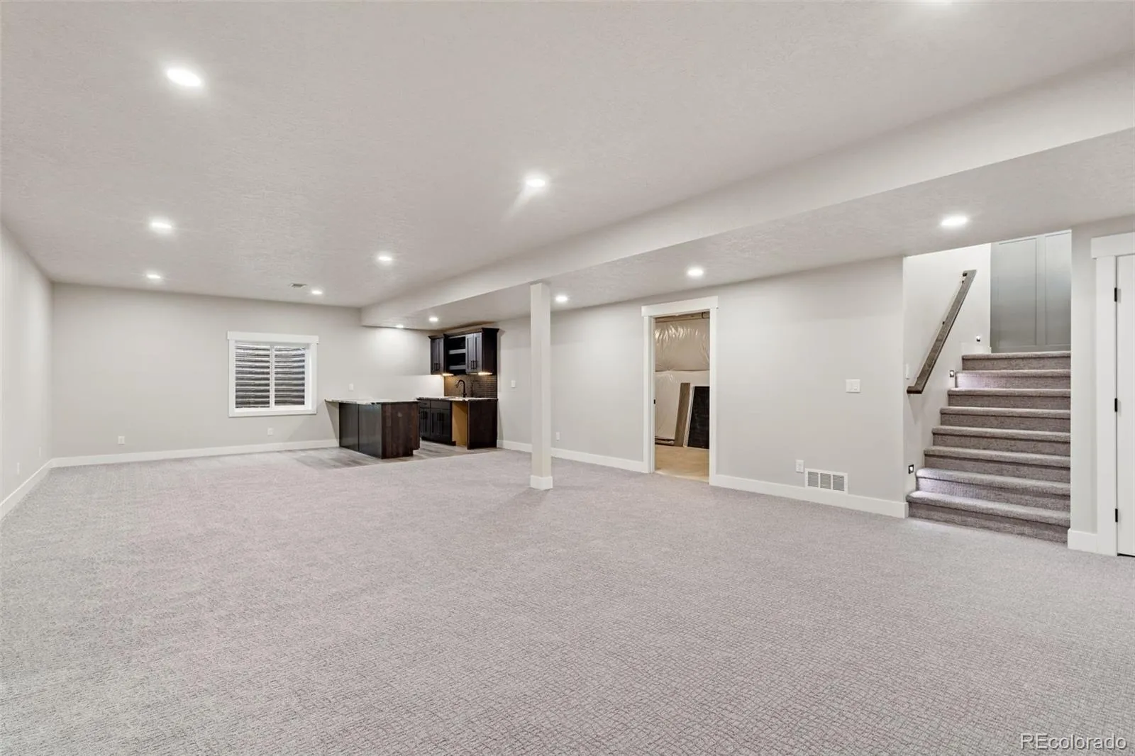 Open the door to The Remington by Pagel Contracting, a meticulously crafted ranch home in Berthoud’s premier neighborhood Harvest Ridge. Too many features to list, so set up that showing! You will love the 10′ ceilings and abundance of windows allowing that Colorado sunshine to light up the vast great room, kitchen and dining area. Arrange your decor to make the floor to ceiling tile LED fireplace surround the perfect focal point. Cook up a storm or have the meal catered, these custom kitchen cabinets go all the way to the ceiling making sure you have enough room for all your culinary wares. Recessed lighting/outlets and appliance placement provides a sleek design and allows a plethora of countertop workspace. While your favorite people are gathered around the HUGE quartz island, they can charge their devices from the super cool pop-up outlets. Don’t forget to look for the hidden pantry! Retreat to your suite adorned with custom batten accent wall. Primary bath has 3/4 shower with poured pan base and bench seating. Vanity toe kick motion sensor lighting, backlit mirrors and linen cabinet are some added features. With an additional 4 bedrooms (2 on the main floor and 2 in the basement) you will have room for everyone! Descend to the basement where you will find a customized wet bar and room for additional entertaining and several large storage areas. This home has been designed with your comfort in mind. High efficient heat pump and tankless water heater with recirc line, not to mention our superior quality building materials will keep those utility bills low. Smart LED lighting throughout the home can be managed on the wall or with a swipe on your device. Front and back yard landscaping is included so you begin to enjoy the Colorado outdoors and a view of the mountains from your covered patio. Let’s make this your home!