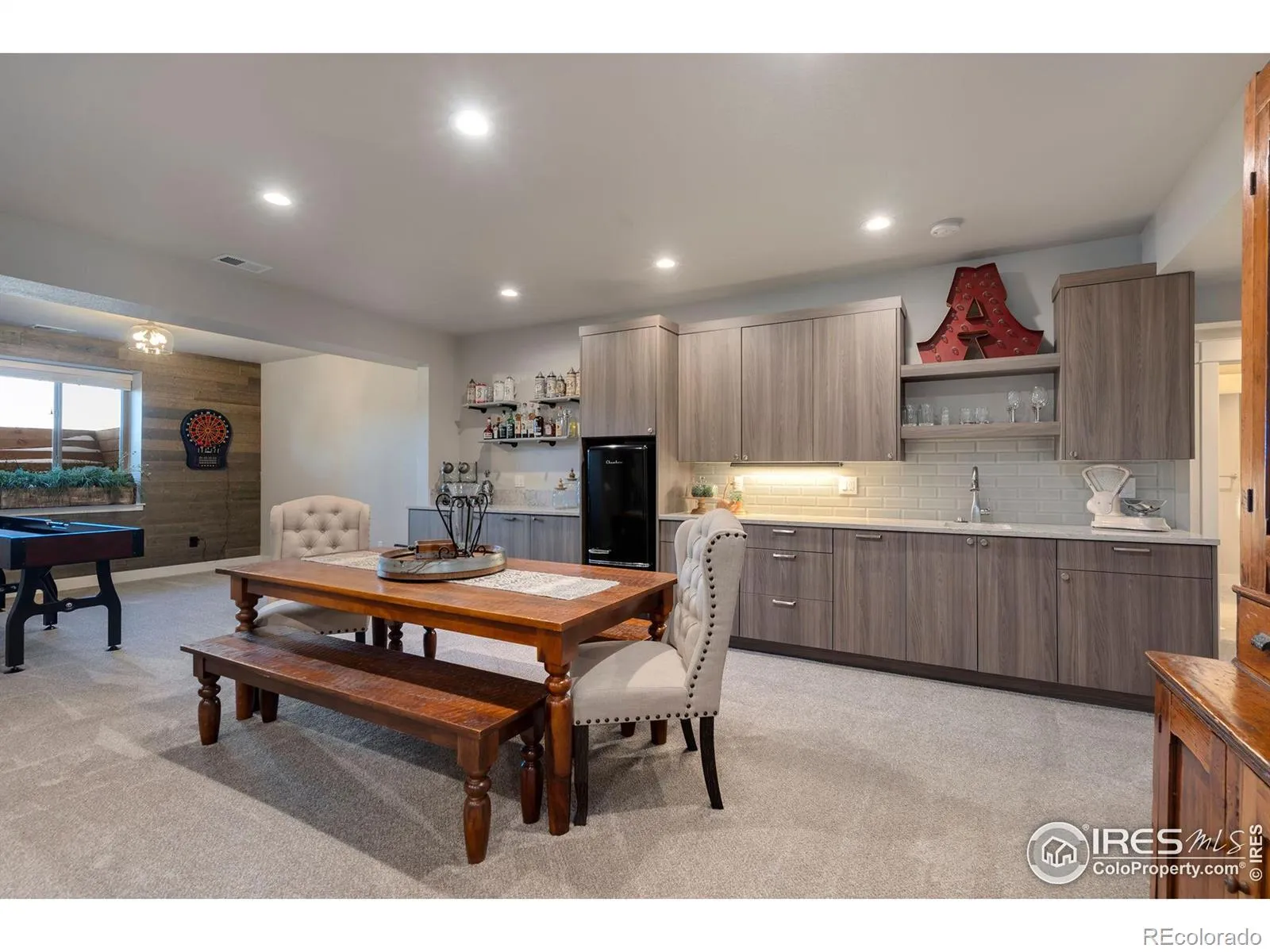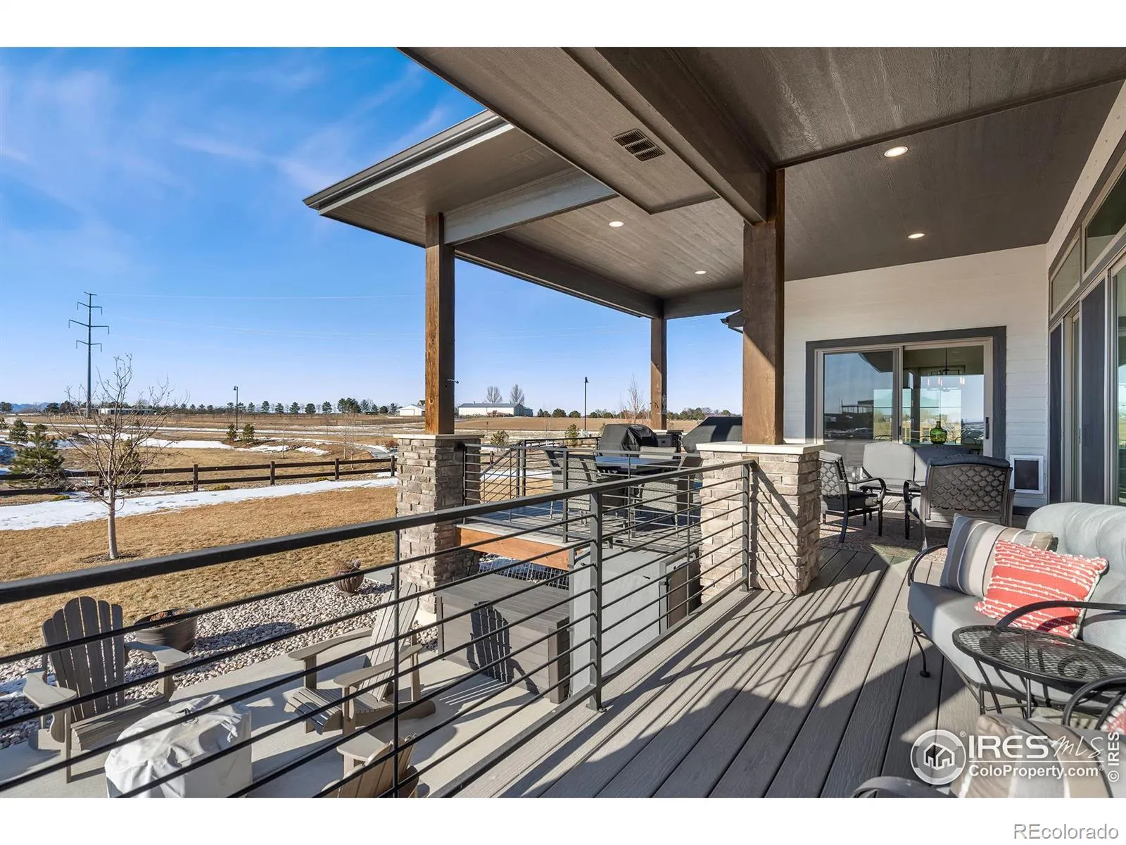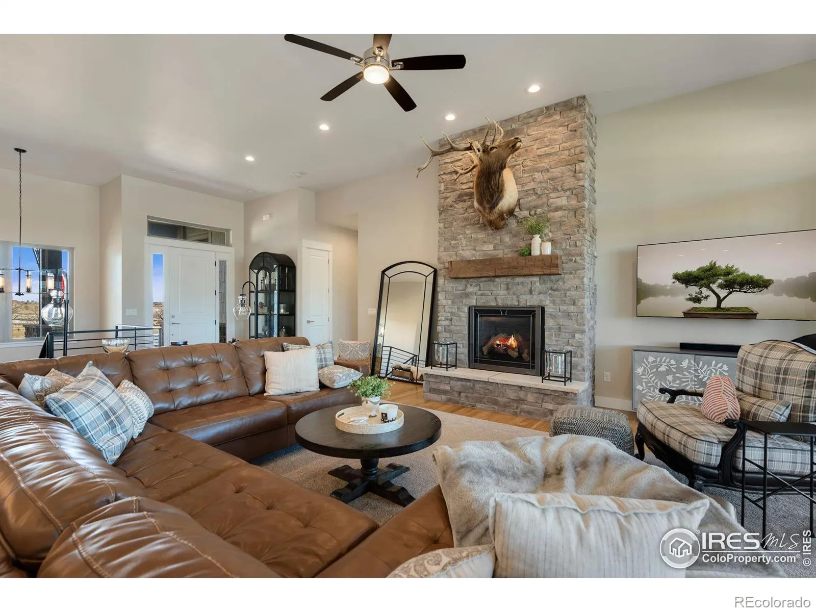 Incredible value, plus Seller is offering up to 2% concession toward rate buydown and closing costs! Contact agent for preferred lender info to learn about temporary buydowns with rates starting the the 3’s! Elegance and quality abound in this expertly-crafted custom ranch! Situated on a half-acre in a quiet corner of Timnath’s celebrated Wildwing community. The main level is airy and wide open, with soaring ceilings and light pouring in from the westerly wall of glass. Cozy up around the grand floor-to-ceiling stone fireplace or enjoy meal prep and conversation in the spacious gourmet kitchen, featuring a full-length island with bar seating, 6-burner gas cooktop, double oven and plenty of storage in the Kamtz cabinetry. Ample dining space leads directly to the covered deck, with additional patio space at ground level just steps below. The primary retreat occupies the south end of the main level and features a luxurious, yet approachable bathroom with zero-clearance shower, well-appointed walk-in with accommodations for a stackable washer/dryer, and direct access to the deck. Two additional bedrooms (one currently used as office) on the main floor each boast a walk-in and en-suite. Enter the oversized 3-car garage with included overhead storage through the large main laundry/mudroom. The tasteful, modern beauty of the main floor finishes continue in the builder-finished daylight basement. The central rec space is perfect for watching the game or playing your own, with plenty of storage for drinks, etc. in the wet-bar featuring a retro-fridge (included). There are two more bedrooms with adjacent baths and walk-ins, plenty of unfinished storage space, and room for a future conforming bedroom, office, gym, or studio. And don’t forget the safe room with digital keypad! Just steps from Timnath Reservoir in two directions, right down the road from the new neighborhood pickleball courts and dog park, and minutes from the heated community pool.