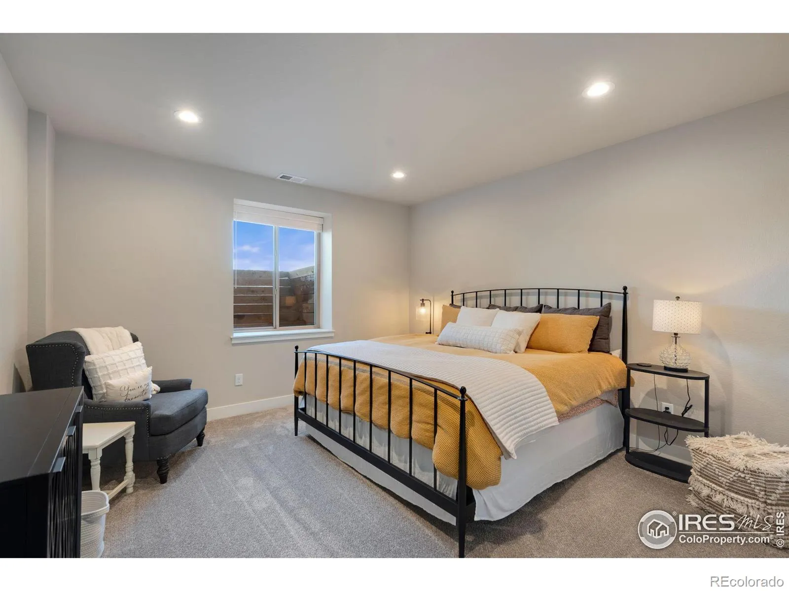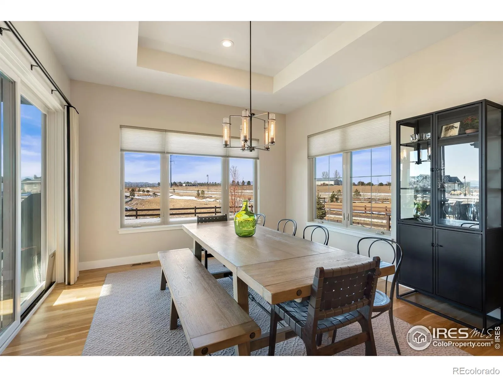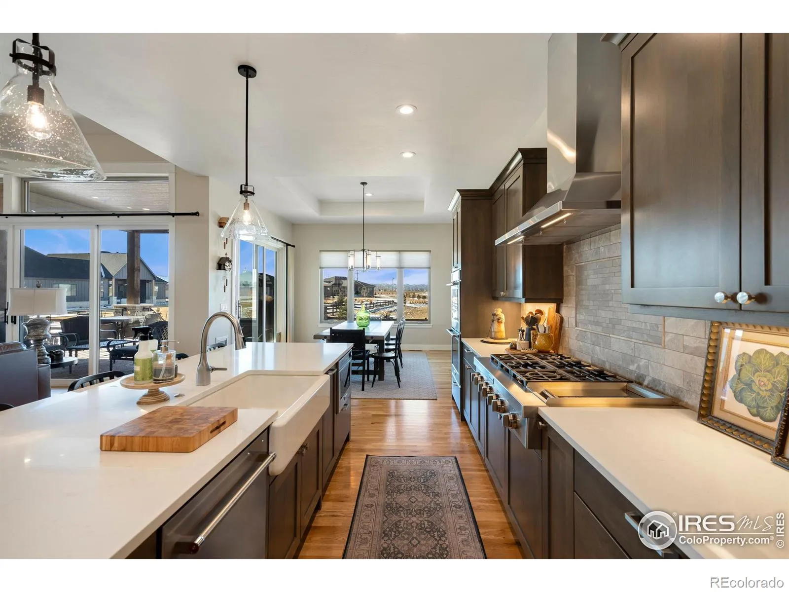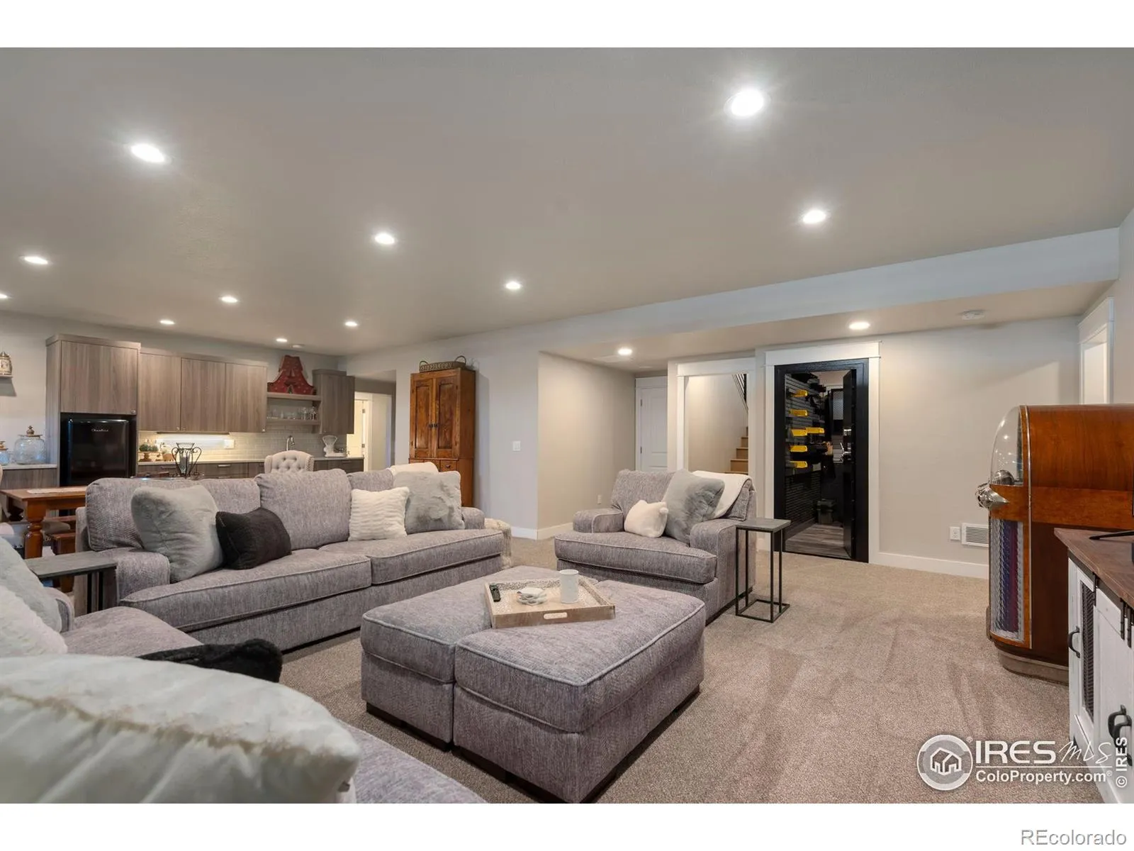 Incredible value, plus Seller is offering up to 2% concession toward rate buydown and closing costs! Contact agent for preferred lender info to learn about temporary buydowns with rates starting the the 3’s! Elegance and quality abound in this expertly-crafted custom ranch! Situated on a half-acre in a quiet corner of Timnath’s celebrated Wildwing community. The main level is airy and wide open, with soaring ceilings and light pouring in from the westerly wall of glass. Cozy up around the grand floor-to-ceiling stone fireplace or enjoy meal prep and conversation in the spacious gourmet kitchen, featuring a full-length island with bar seating, 6-burner gas cooktop, double oven and plenty of storage in the Kamtz cabinetry. Ample dining space leads directly to the covered deck, with additional patio space at ground level just steps below. The primary retreat occupies the south end of the main level and features a luxurious, yet approachable bathroom with zero-clearance shower, well-appointed walk-in with accommodations for a stackable washer/dryer, and direct access to the deck. Two additional bedrooms (one currently used as office) on the main floor each boast a walk-in and en-suite. Enter the oversized 3-car garage with included overhead storage through the large main laundry/mudroom. The tasteful, modern beauty of the main floor finishes continue in the builder-finished daylight basement. The central rec space is perfect for watching the game or playing your own, with plenty of storage for drinks, etc. in the wet-bar featuring a retro-fridge (included). There are two more bedrooms with adjacent baths and walk-ins, plenty of unfinished storage space, and room for a future conforming bedroom, office, gym, or studio. And don’t forget the safe room with digital keypad! Just steps from Timnath Reservoir in two directions, right down the road from the new neighborhood pickleball courts and dog park, and minutes from the heated community pool.