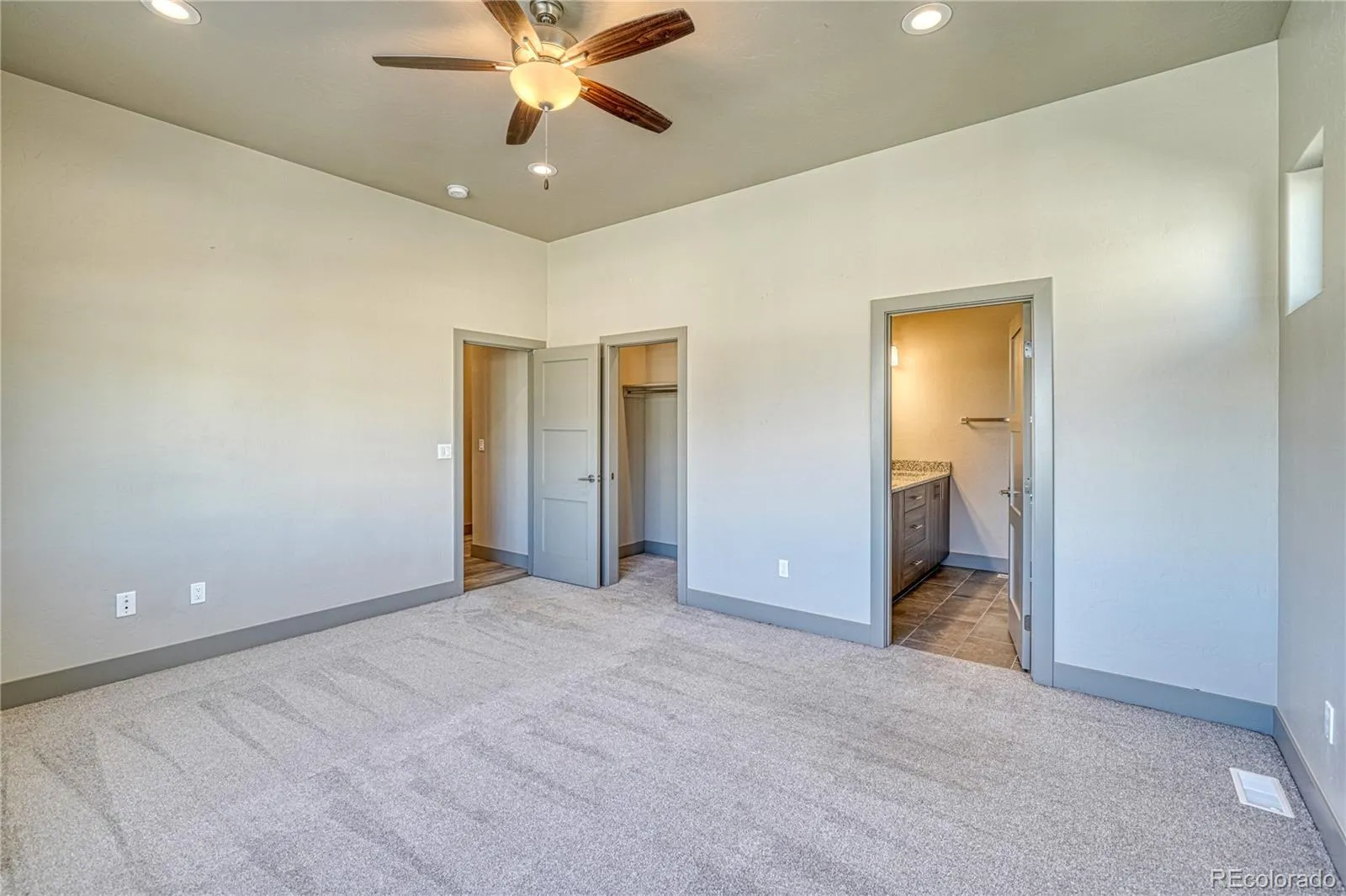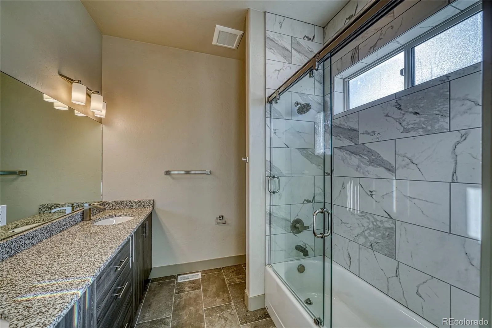 Beautiful contemporary newer townhome boasting multiple windows for natural light. From the entry as you come into the home, you see the beautiful open floor plan with a large living room which is open to the kitchen and dining area. The kitchen features a large center island with lots of storage, stainless Maytag appliances, microwave and a Samsung refrigerator. Lovely granite countertops in the kitchen and in all three bathrooms. Tall ceilings on both the lower and upper floors and luxury vinyl flooring throughout. There is a full bath and bedroom on the main level with a sliding glass door onto the outside patio which is perfect for entertaining. This bedroom could be used as a main floor office as well. The wide stairway with a landing to the second floor with contemporary style windows brings in lots of light on your way up. The upper level boasts two large primary suites, walk in closets, tiled tubs and showers and double vanities, high ceilings with beautiful mountain views. The laundry is located in the upstairs hallway. There is a