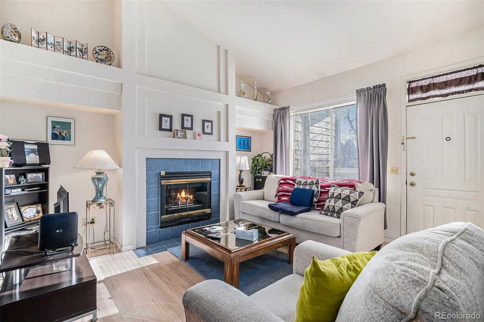 Spacious front porch for nice summer days. Open floor plan and vaulted ceilings. The living room has a cozy fireplace for cold winter nights. This two bedroom, two full bathroom condo includes all kitchen appliances, a stackable washer and dryer, and all window coverings. The second bedroom is non-conforming – there is space for a closet, it just needs to be built out, or it can be used as a home office. The swimming pool is across the street near the mailboxes. The bus stop is within walking distance. A short drive away is RTD Light Rail, the Aurora Fitzsimons Medical Campus, Denver International Airport, Aurora Town Center for shopping, and many dining options. Sprouts just opened a new store a couple miles away.