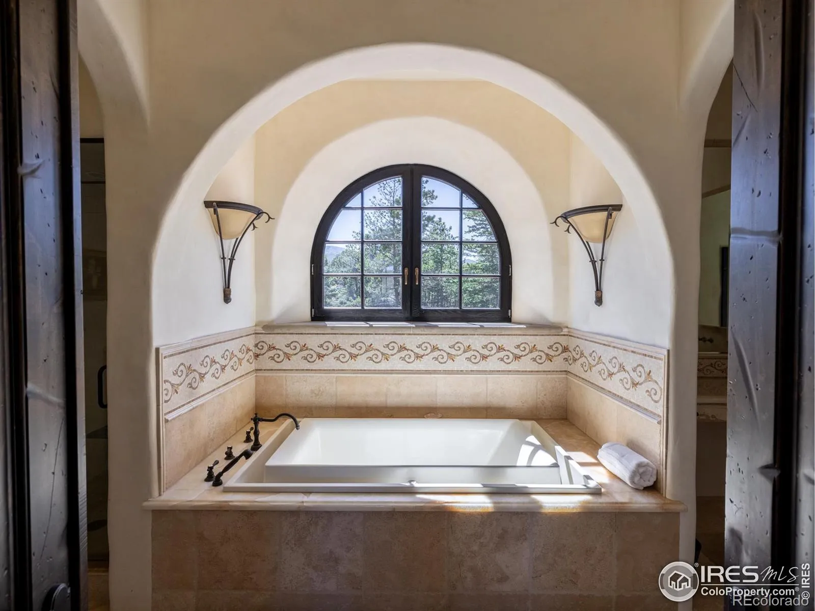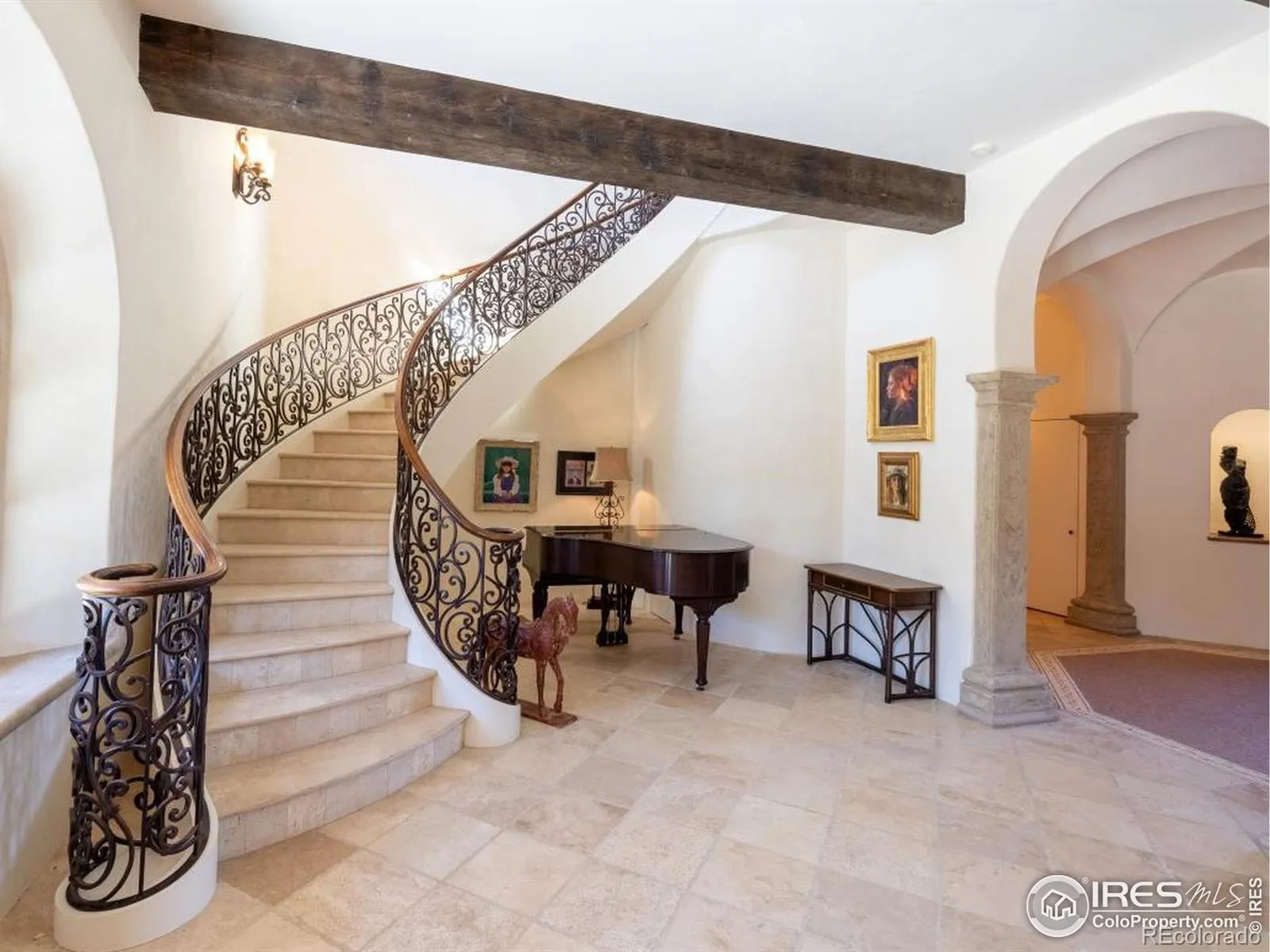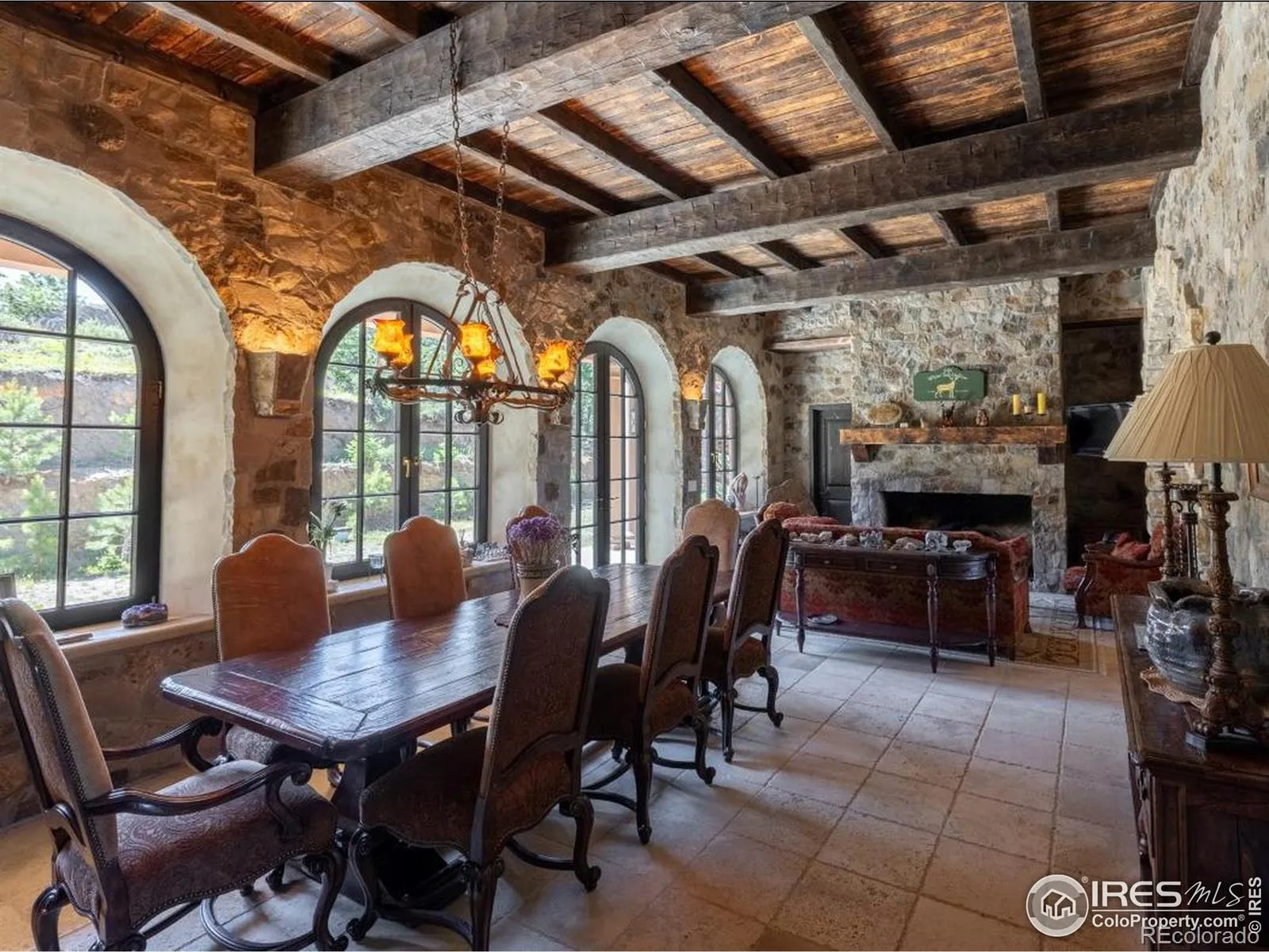The Villa on 52 acres, including a beautiful spring-fed pond. A timeless classic in a historically unique landscape, this local landmark in the foothills boasts magnificent views, abundant granite, and natural water sources. The location provides easy access to Fort Collins, Loveland, and the Poudre Canyon. This landscape is also full of history as a significant past residential site for the Ute Indians, early pioneers, and the Pony Express. Construction on The Villa began in 2007, with the entire residence built out of full-thickness granite handpicked on the property. This Italian-inspired work of art comprises various artifacts, some dating back 2,000 years. Maintaining an affinity for the arts, the structure includes a third-floor art room with ample natural light and picturesque views, which could be converted to 6th bedroom. It honors the traditional villas of the Renaissance, and its connection with nature is evident in all the windows framing the surrounding landscape. It is luxury at its finest, blending art and function with two elevators, 14-foot-tall arched ceilings, and German wood-framed windows that swing open and tilt with dual hinges. A 32-foot-long indoor saltwater pool and lounge area offer spaces to relax and recharge, while the private office and library with a wet bar inspire creativity and productivity. A formal dining room invites guests to stay awhile, with a separate serving entrance from the kitchen through the bottle room. Off the main gourmet kitchen is an auxiliary kitchen that leads to separate living quarters. Multiple entertainment and living spaces have radiant in-floor heating for optimal comfort.Additional acreage and indoor arena available: ask about other options!