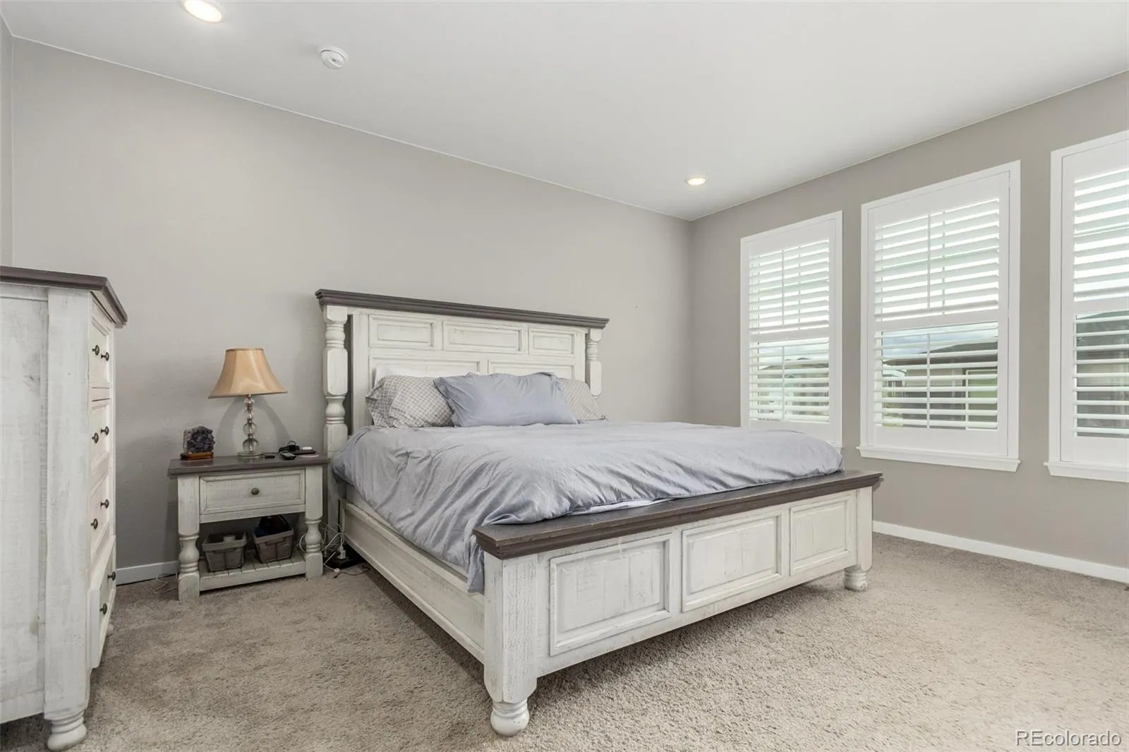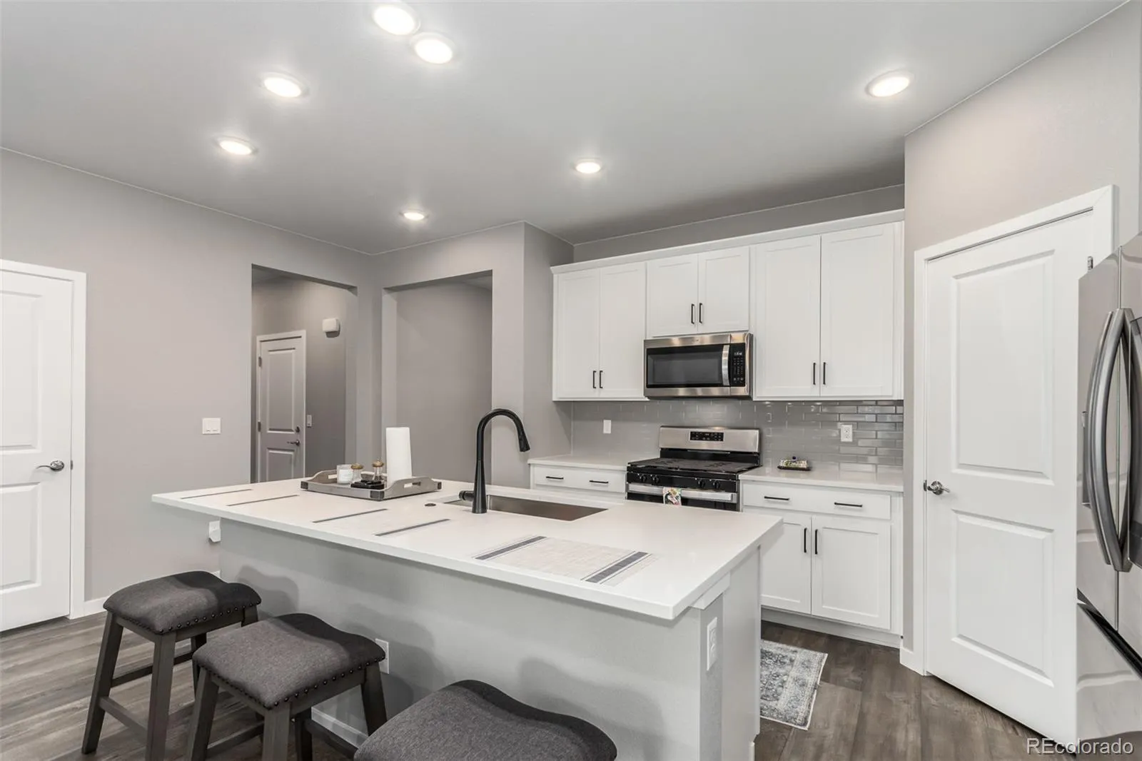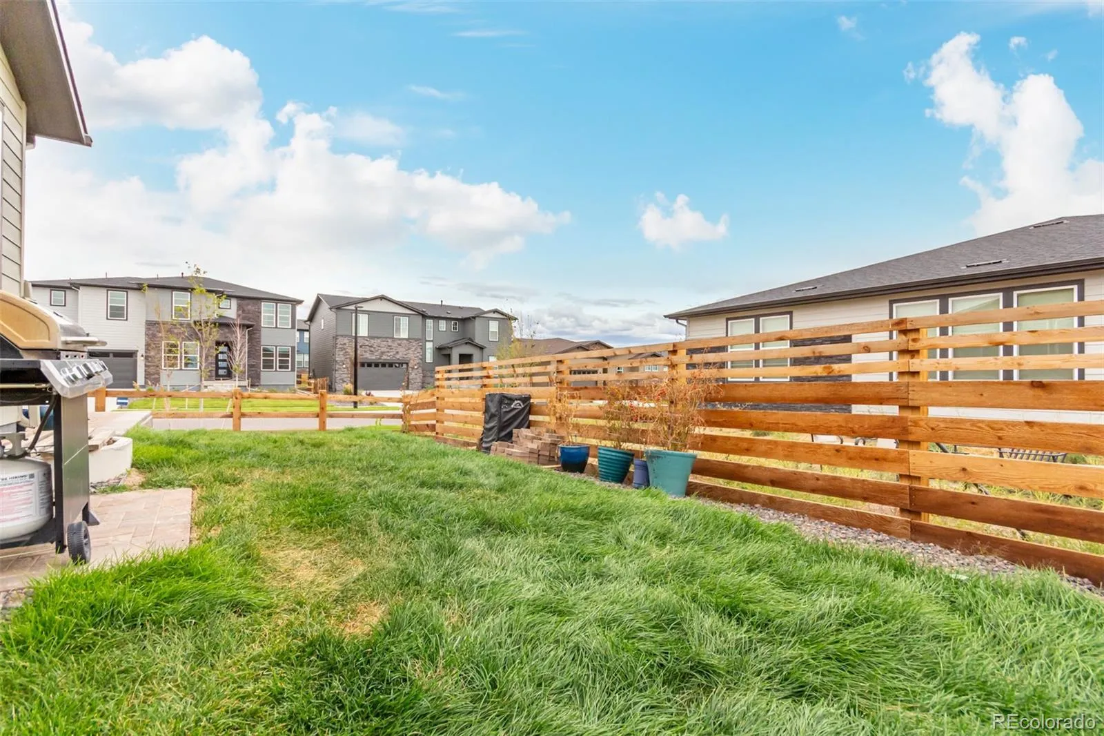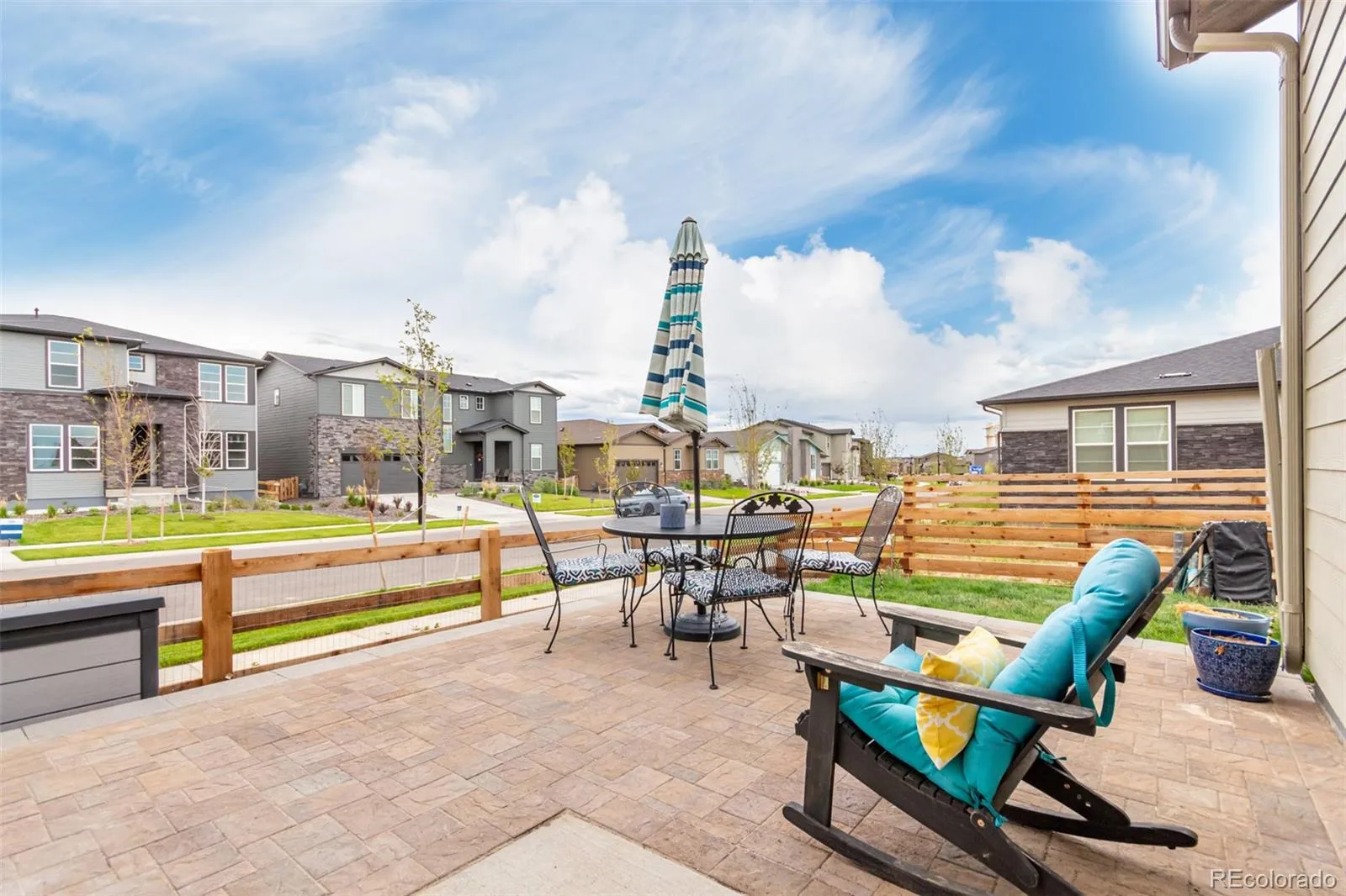 AMAZING OPPORTUNITY! Priced below acquisition cost and this does not even take into account the add-ons post closing! This 3-bedroom, Manzanita plan from Pulte, is lightly lived in and you’ll be safe from the additional expenses after closing of new landscaping, fencing and plantain shutters. This beautiful ranch home is perfectly situated on a desirable corner lot with great curb appeal, featuring a 2-car garage, open floor plan, and timeless stone accents. Step inside to discover durable luxury vinyl flooring, a neutral color palette, and large sliding doors leading to a cozy backyard with a custom-designed paver patio perfect for hosting BBQ parties. The immaculate kitchen showcases stainless steel appliances, pantry, recessed lighting, a large island with a breakfast bar, ample white cabinetry with crown molding, subway tile backsplash, and sleek quartz countertops. The primary bedroom offers a tranquil retreat with plush carpeting, an ensuite bathroom with dual sinks, and a walk-in closet. A den near the entrance is ideal for a home office, game room, or cozy retreat. When comparing this property with the new construction in the area, be sure to factor in the fact sellers have spent almost $40,000 on landscaping, fencing, and shutters post-closing. The spacious unfinished full basement can easily be transformed into a family room, recreation area, or home gym. Adding to the allure, this home is located in a beautiful, master-planned community in the suburbs of Aurora, offering 21 miles of scenic walking trails, a linear art park, and the promise of future retail shopping centers, restaurants, and recreational facilities. The community has plans for indoor and outdoor pools, as well as an ice skating rink. The Aurora Highlands is an exciting place to live, with everything centrally located for easy access to fun and leisure. This is the home you have been looking for, come see it today!