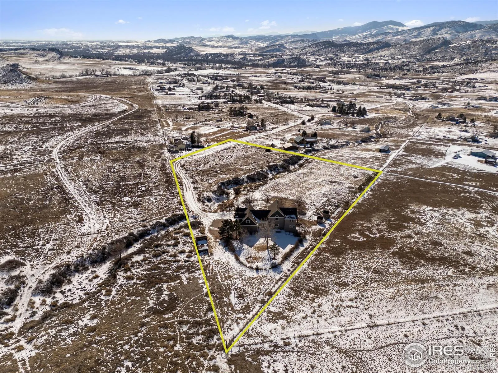 More than a house – this is a lifestyle. Perched on 4.45 acres with sweeping views of the foothills and Devil’s Backbone, this 5,000+ sq ft custom home is a sanctuary for dreamers, artists, adventurers, and anyone who feels connected to nature. Every day here feels like a story worth telling. Sunsets paint the sky, and rainbows span the foothills. Great horned owls perch on the rooftop as deer wander through the yard below. From backyard picnics, Nerf battles, and holiday feasts with dozens of friends, to weddings, photo shoots, and peaceful mornings in an art studio – this property will be your backdrop for countless unforgettable memories. With panoramic views of the foothills and Devil’s Backbone, you’re immersed in beauty from every angle. The county-owned open space directly behind ensures your views and privacy will never be interrupted. In winter, sledding and cross-country skiing. In summer, hiking, biking, and stargazing under spacious skies.The home is designed for both comfort and gathering. A soaring great room centers on a dramatic stone fireplace. The kitchen features granite counters and knotty alder cabinetry. A main-floor primary suite provides a private retreat, while versatile lofts, bonus rooms, and a walk-out basement with Cantina-style bar create space for every need.Bring your horses, keep chickens or goats, launch model rockets, or simply relax in a hammock under the trees. Here, you don’t keep up with the Joneses – you live your own story. This is more than a property. This is Colorado living at its finest – inspiring, adventurous, and unforgettable. Brand new roof and Pre-inspected for Buyer’s peace of mind.