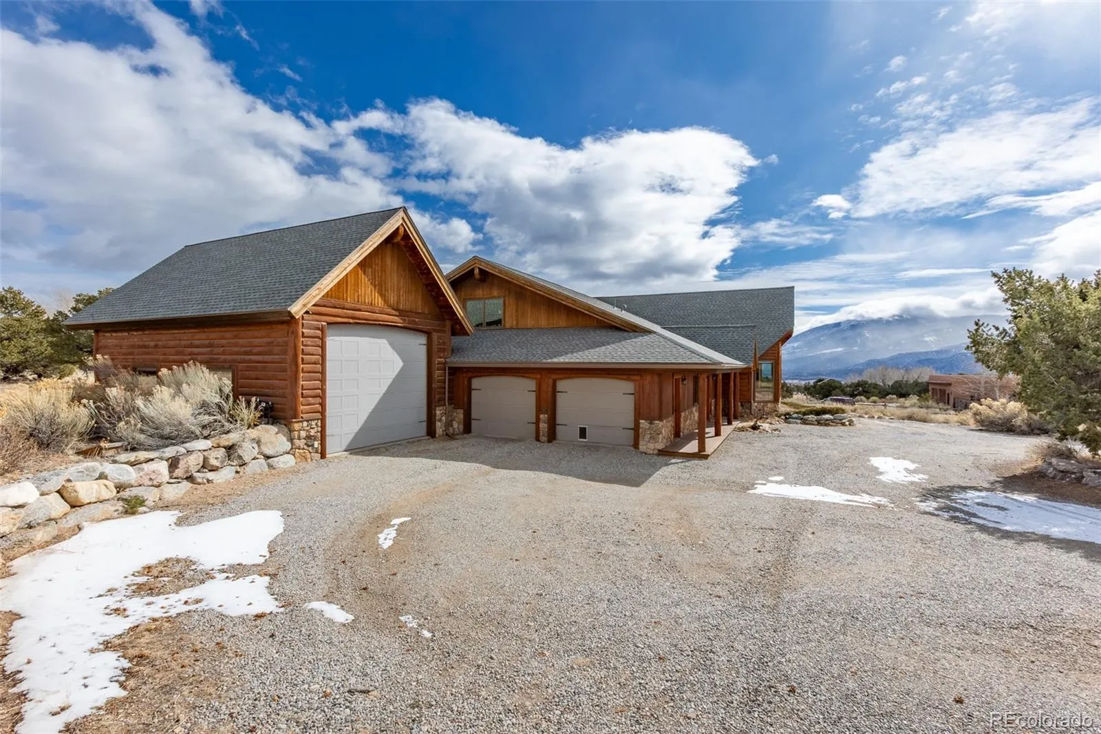 Come and see this gorgeous custom built home in quiet Saddle Ridge Ranch! This neighborhood consists of rolling hills at the foot of Mt. Shavano and is located on a private road containing abundant common green space and majestic views. Nestled on a corner lot with 2.05 acres that backs up to BLM, you are close to hiking and biking trails right from your own yard! This unique home was designed by Holmes Builders, a premier builder specializing in custom finishes. As you enter the main room, the large log accent Douglas Fir beams frame the open kitchen. Breathtaking views of Chipeta and Ouray mountains are enjoyed through the oversized windows in the great room. Wood, tile and concrete flooring throughout the main level are heated by radiant floor heat. The gas fireplace is beautifully accented with stones hand picked from the property. The kitchen includes all of the amenities you will need to entertain friends and family with Viking appliances and a hidden downdraft hood. The covered back patio has access from the kitchen or the primary bedroom. The two bedrooms located on the main level share a large full bath with a garden tub. The main level also includes an attached oversized two car garage and a separate RV/toy garage with a 12’ 6” door. The laundry room/mud room has lots of space and storage. Upstairs is an open loft area, a three-quarter bathroom and a bedroom with a large closet. Be sure to check out the surprise “hidden” room behind the bookshelves in the upstairs bedroom. Schedule a showing today to see all this home has to offer!