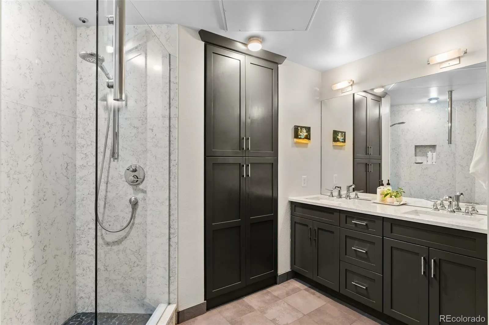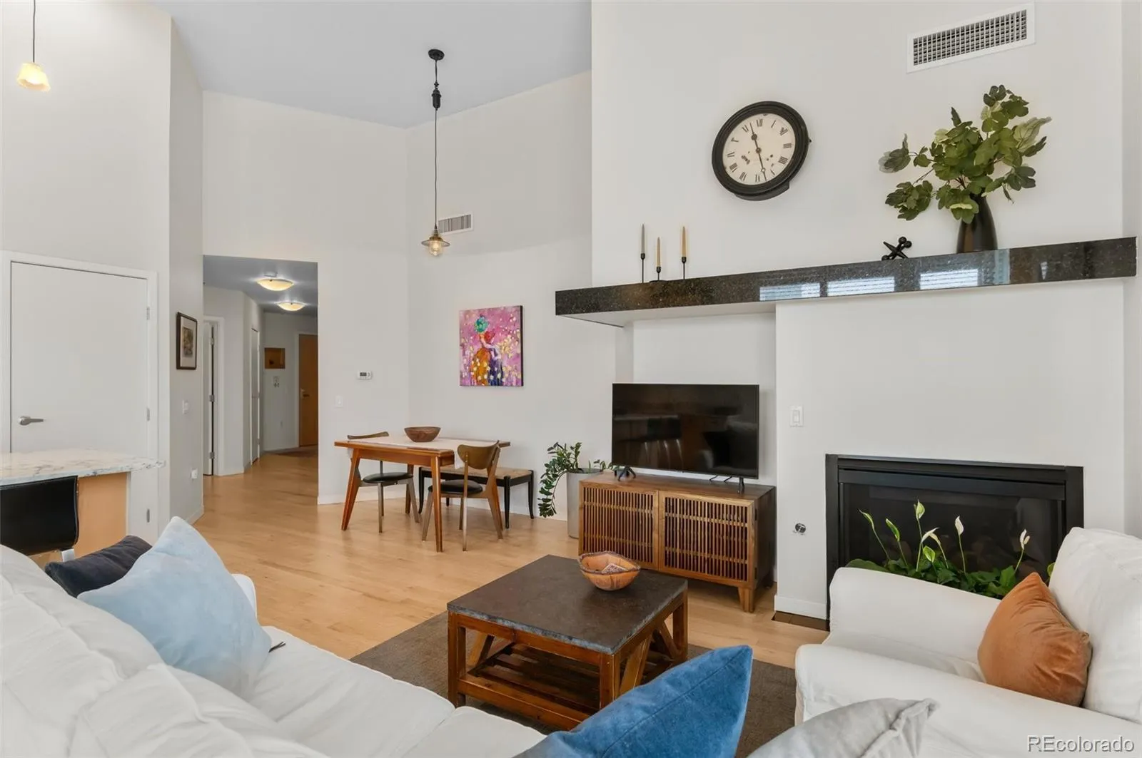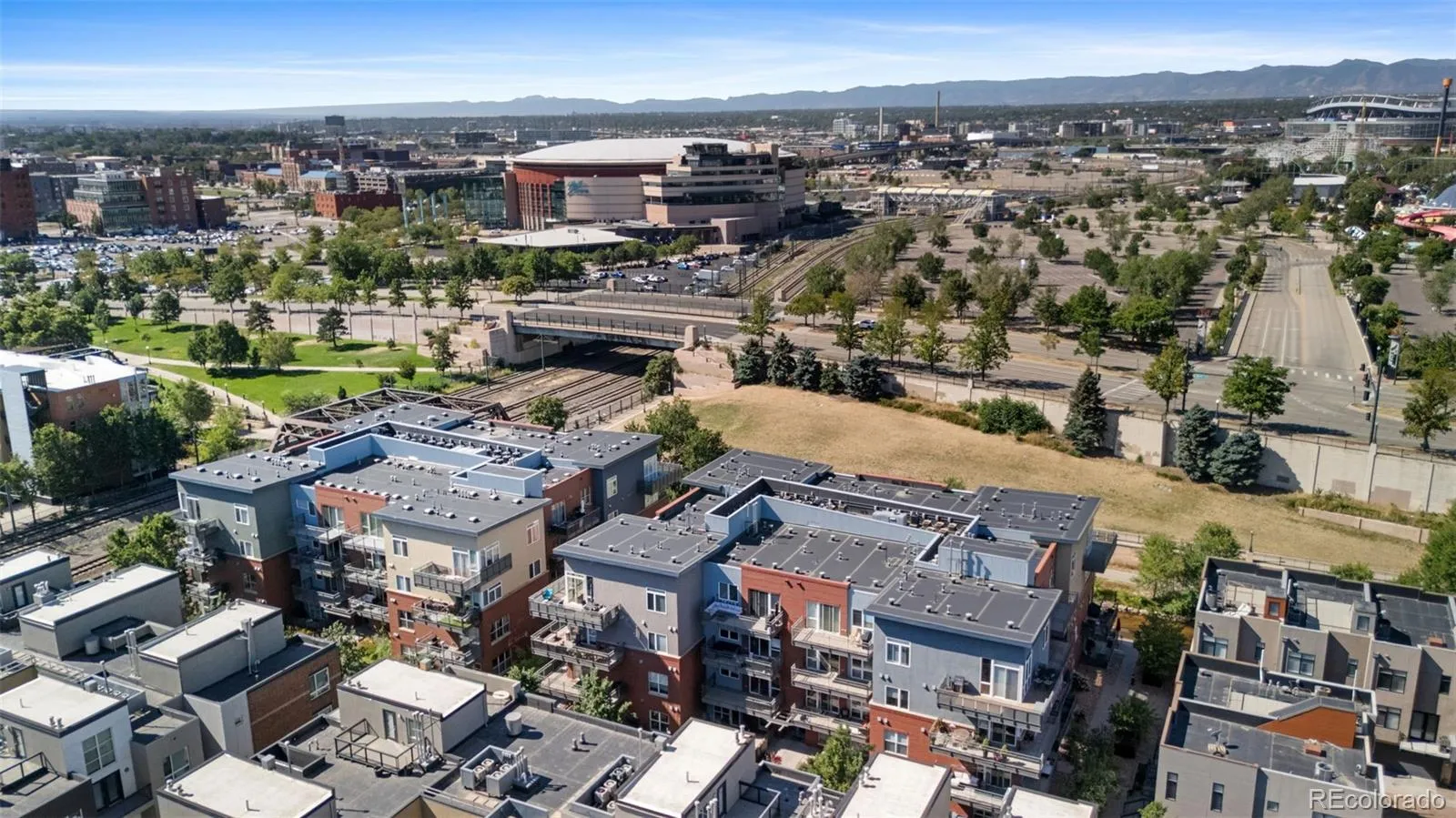 Outstanding penthouse with 2 garage parking spaces!!? This 2 Bedroom 2 Bath 4th floor Penthouse with 14ft ceilings features spectacular riverfront and mountain views! You will enjoy the wrap around terrace that overlooks Cherry Creek and its bike path on those beautiful sunny Colorado days! Oversized windows in this home make the beautiful interior shine. The newly refinished maple hardwood floors are warm and bright. Stunning kitchen complete with expansive solid surface granite countertops top of the line appliances and maple cabinetry. Custom remodeled primary bathroom with oversized tiled shower. Additional features include Hunter Douglas Window shutters, Two secured underground parking spaces (Spaces 55 and 56) which sit directly across from elevator, a very convenient 4th floor Storage unit and garbage chute. This is a One-of-a-kind property in a very desirable Downtown location. Walking distance to Riverfront Park, Elitch Gardens, Confluence Park, Cherry Creek Trail and Pedestrian Bridge to LoHi. Short walk to Union Station and fabulous Downtown restaurants. New Hot water heater, washer dryer included