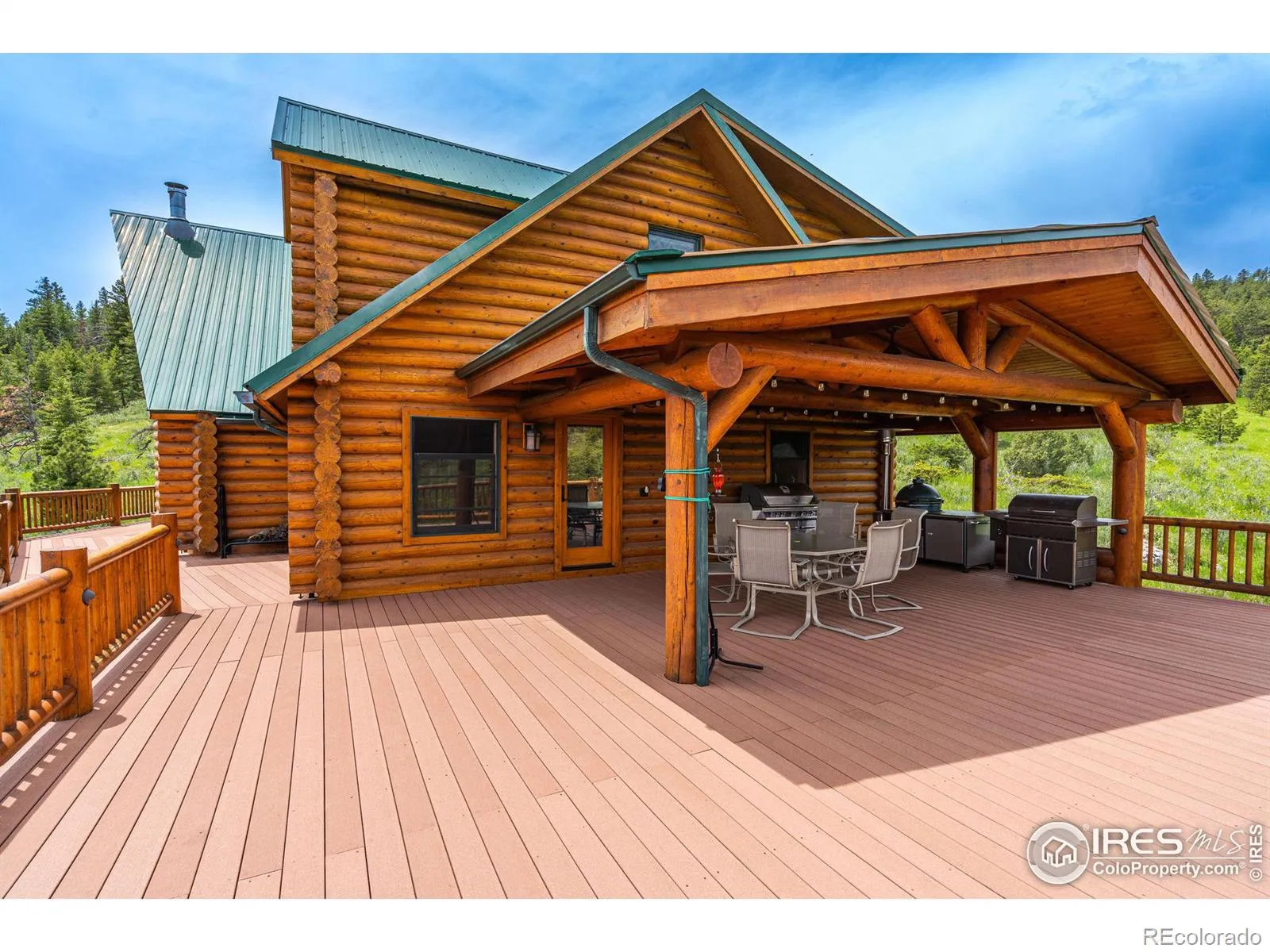 Privacy and quality. Log construction w/ 4 beds (swing room in lower level used as winery), 5 baths, plus 5-Car attached garage/shop. Excellent high speed internet. Main floor owner’s suite. 2nd owners suite upstairs. 1,600 sq. foot w/ awesome views! Wildlife abound. Solid hickory wood floors. Gourmet kitchen w/ hickory cabinets, slab granite & stainlesss appliances. Knotty pine ceiling, metal roof, finished walk-out basement, covered deck. Easy access – only 20 minutes to Loveland.