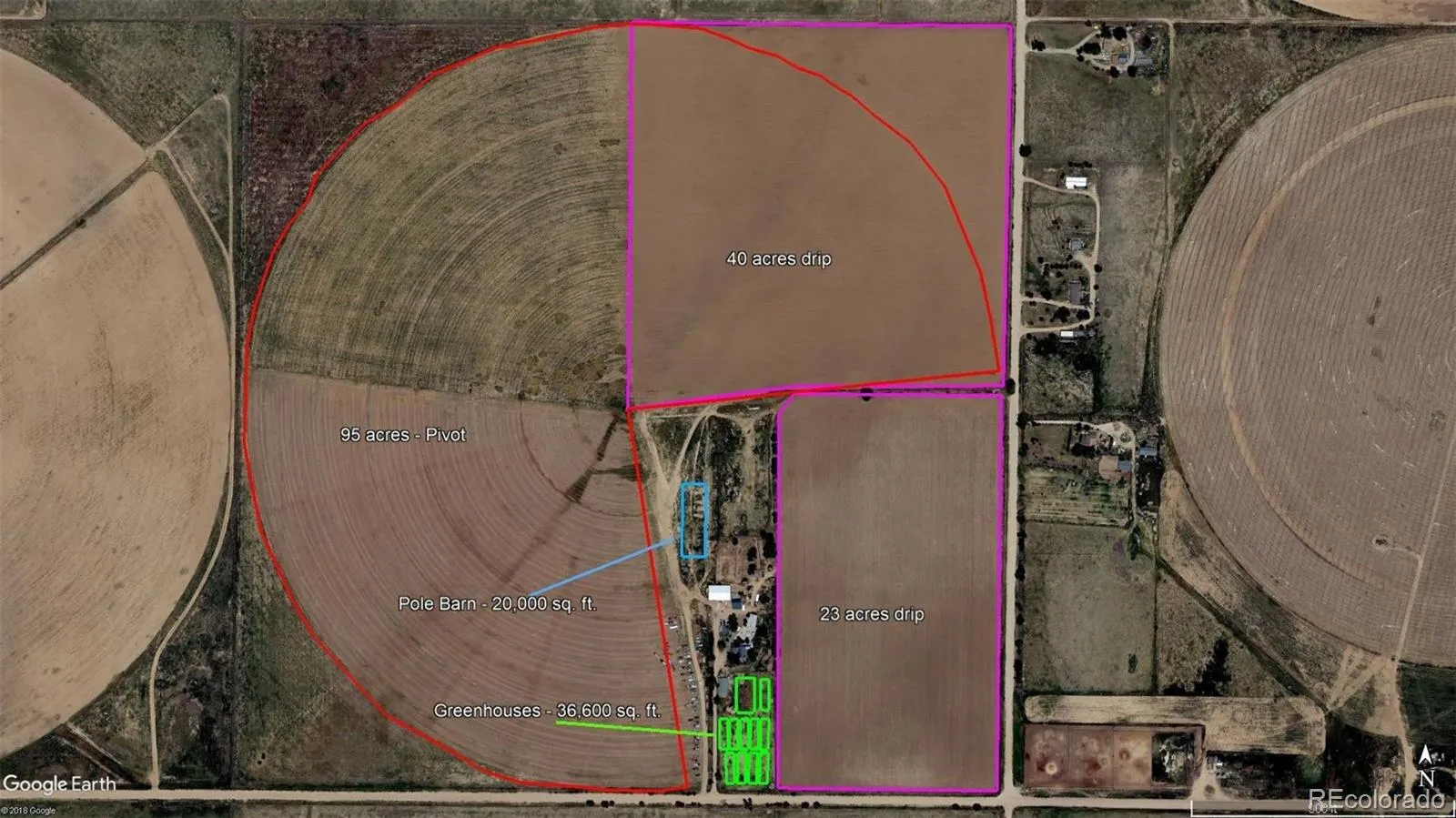 Farm and Homestead opportunity: 160 acre turn key fully functional farm with THREE homes in Colorado Springs’ Pikes Peak Enterprise Zone, new owner can receive substantial tax credits for various economic development activities! Extensive list of structures and equipment included! Main Farmhouse is 3 bed 2 bath, 2,620 sf. The Cottage home is 1 bed 1 bath and 510 sf. The NEW manufactured home, completed January 2025, is 4 beds, 3 baths, and 2,280 sf – plus 3 campers for seasonal employees! Major features include a 20,000 sf Pole Barn (5 yrs old), 11 greenhouses totaling over 36,000 sf completed in 2019 with LED lighting, several other barns & steel buildings, multiple storage sheds, and a steel silo/storage building. Irrigation for 120 acres of the crop producing acreage is provided by a center pivot and drip irrigation, fed by 2 new well pumps. An extensive list of equipment includes tractors, Swathers, Mowers, Cultivators, drip irrigation row makers & removers, cultipackers, air compressors, and more – see brochure for complete list. Newer upgraded electrical service to many structures and internet is available in all 3 homes and the pole barn. Six frost free water hydrants protect your assets. Situated about 40 min southeast of Downtown Colorado Springs (17 miles east of Pikes Peak Int’l Raceway), this ready-to-operate farm is the perfect opportunity to create a profitable and self sustaining life and still remain close to town. Two years ago, a tenant farmer attained the “Certified Organic Status”, new owner can achieve as well. Water by domestic well & water shares through AGRA. Shown by appointment, seller financing available. See supplements for complete inclusion list and information on Enterprise Zone benefits. Buyer receives lender paid credit of 1% (up to $5k) of loan amount towards interest rate buydown for using preferred lender (DPA loans excluded).