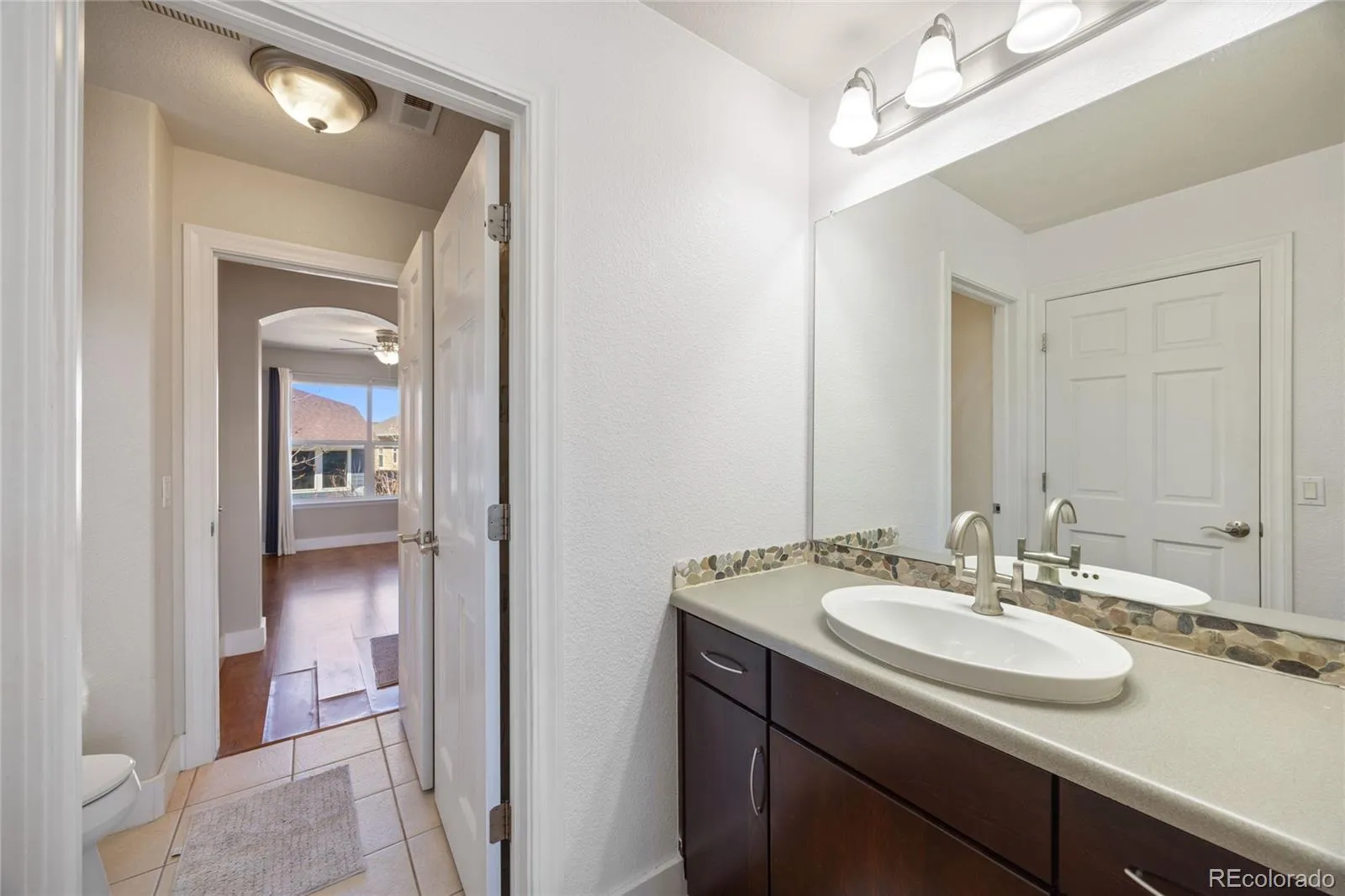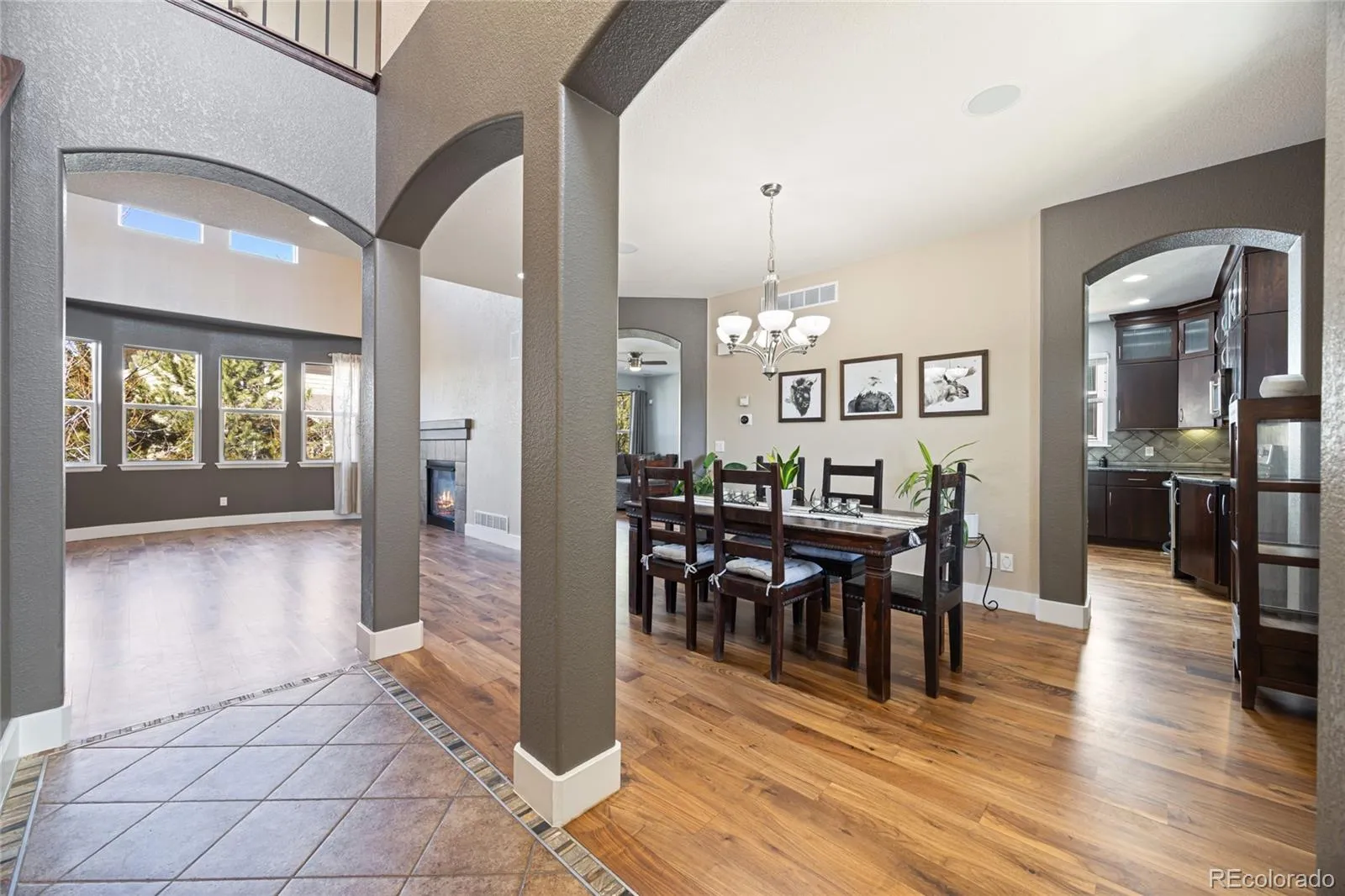 THIS AMAZING PROPERTY IS ELIGIBLE FOR A FREE ONE-YEAR 1% INTEREST RATE BUY-DOWN FOR BUYERS WHO QUALIFY AND FINANCE THROUGH A PREFERRED LENDER… Welcome to this exquisite former model home in the highly sought-after Watercolor community! Situated in The Meadows at Castle Rock, this gorgeous 5-bedroom, 5-bath home offers luxury living with unparalleled features. As one of only five model homes in the neighborhood, it’s a rare opportunity to own a standout property that’s both stylish and functional. Upon entering, you’re greeted by soaring ceilings in the living room, where natural light pours in, highlighting the home’s bright, open floor plan. A double-sided fireplace adds warmth and charm, creating a seamless flow between the living room and family room. The main level is adorned with stunning hickory flooring throughout, enhancing the home’s inviting atmosphere. The chef’s kitchen boasts rich cherry cabinets, stainless steel appliances, and ample counter space, perfect for preparing meals or entertaining. A main-floor study/den features built-in cabinetry, offering a quiet workspace. Step outside to the covered deck off the family room, which is ideal for relaxing or enjoying the peaceful surroundings. The spacious primary suite serves as a tranquil retreat, featuring an updated bath and a generous walk-in closet. Also upstairs, a guest bedroom with an ensuite bath ensures privacy, while two additional bedrooms share a well-appointed connecting bath. The professionally finished basement is an entertainer’s dream, complete with a wet bar, theater area, gaming space, guest bedroom, and full bath. This home is perfectly located with easy access to The Grange clubhouse, community pool, parks, trails, and a variety of shops and restaurants. Commuters will appreciate the quick access to I-25 and Highway 85, along with top-rated schools nearby. Don’t miss out on this incredible opportunity… Schedule your showing today before this gem is gone!