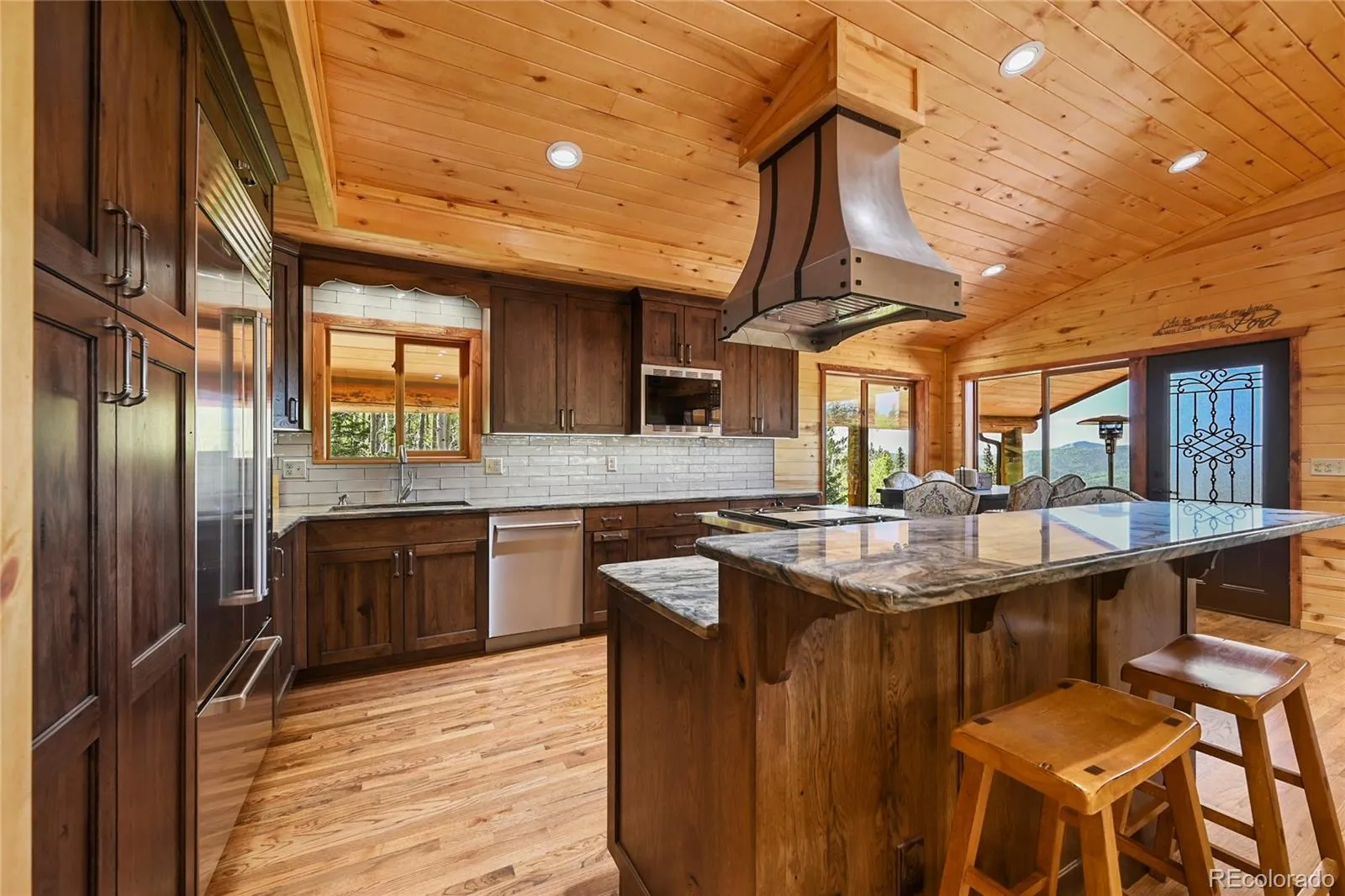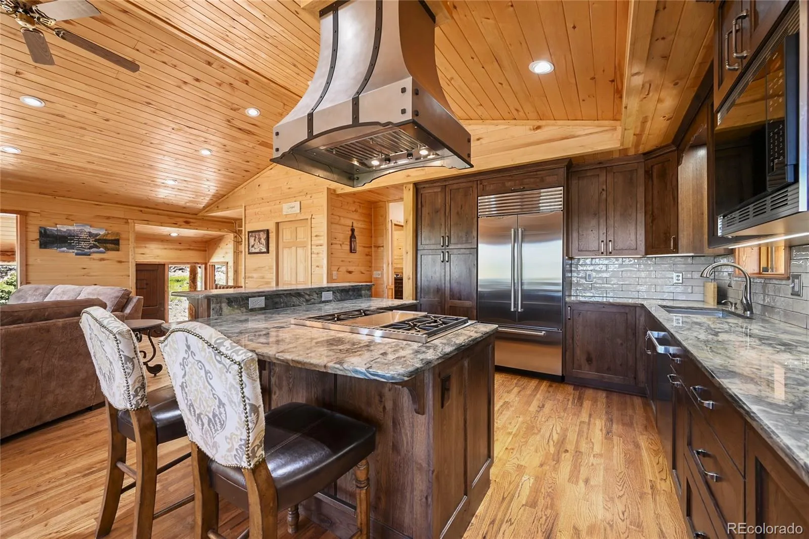 Experience luxury at its finest in this expansive mountain home, boasting breathtaking mountain views, spacious living area, and easy access to hiking trails and outdoor adventures while bordering thousands of acres of Pike National Forest.