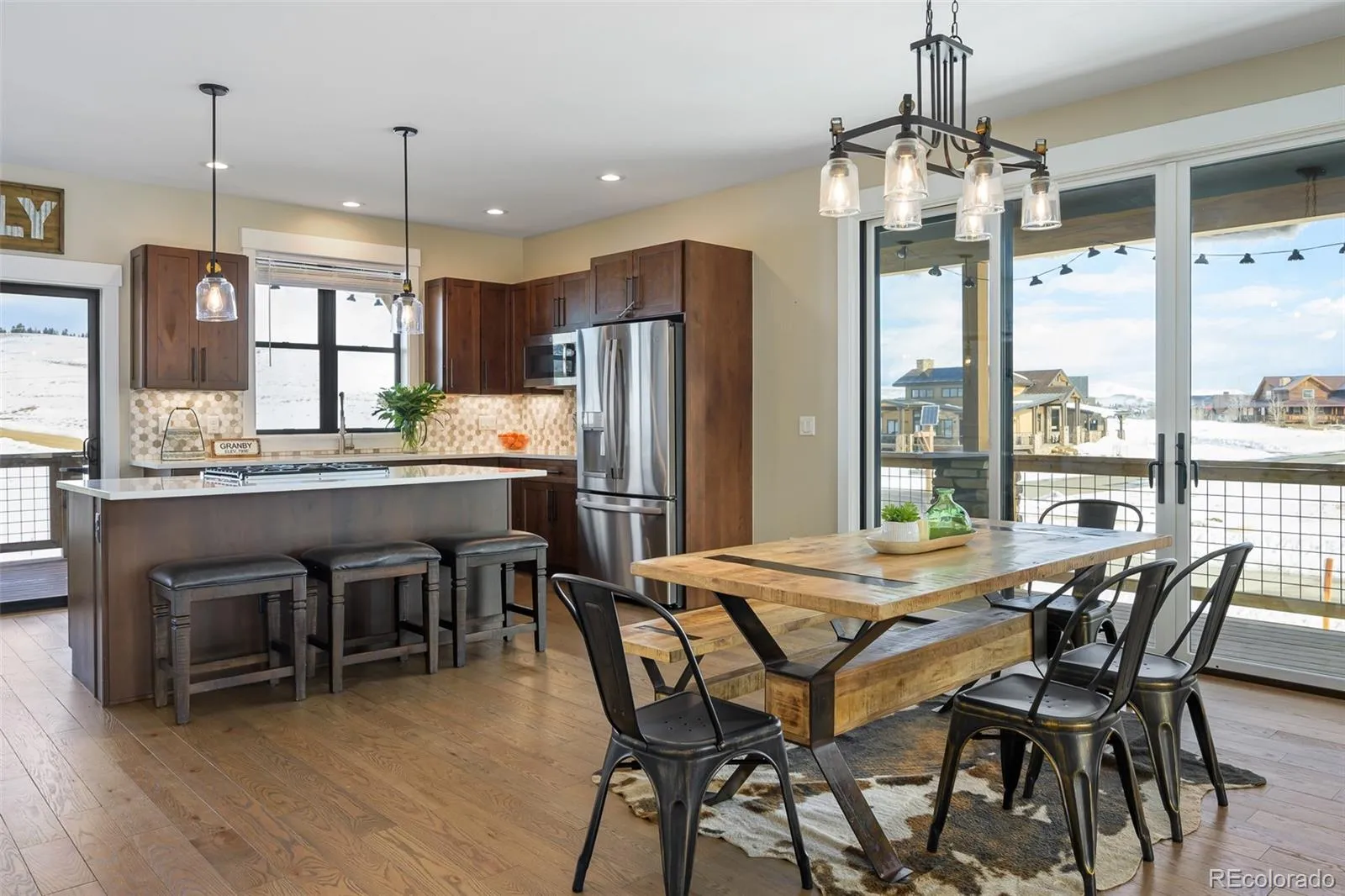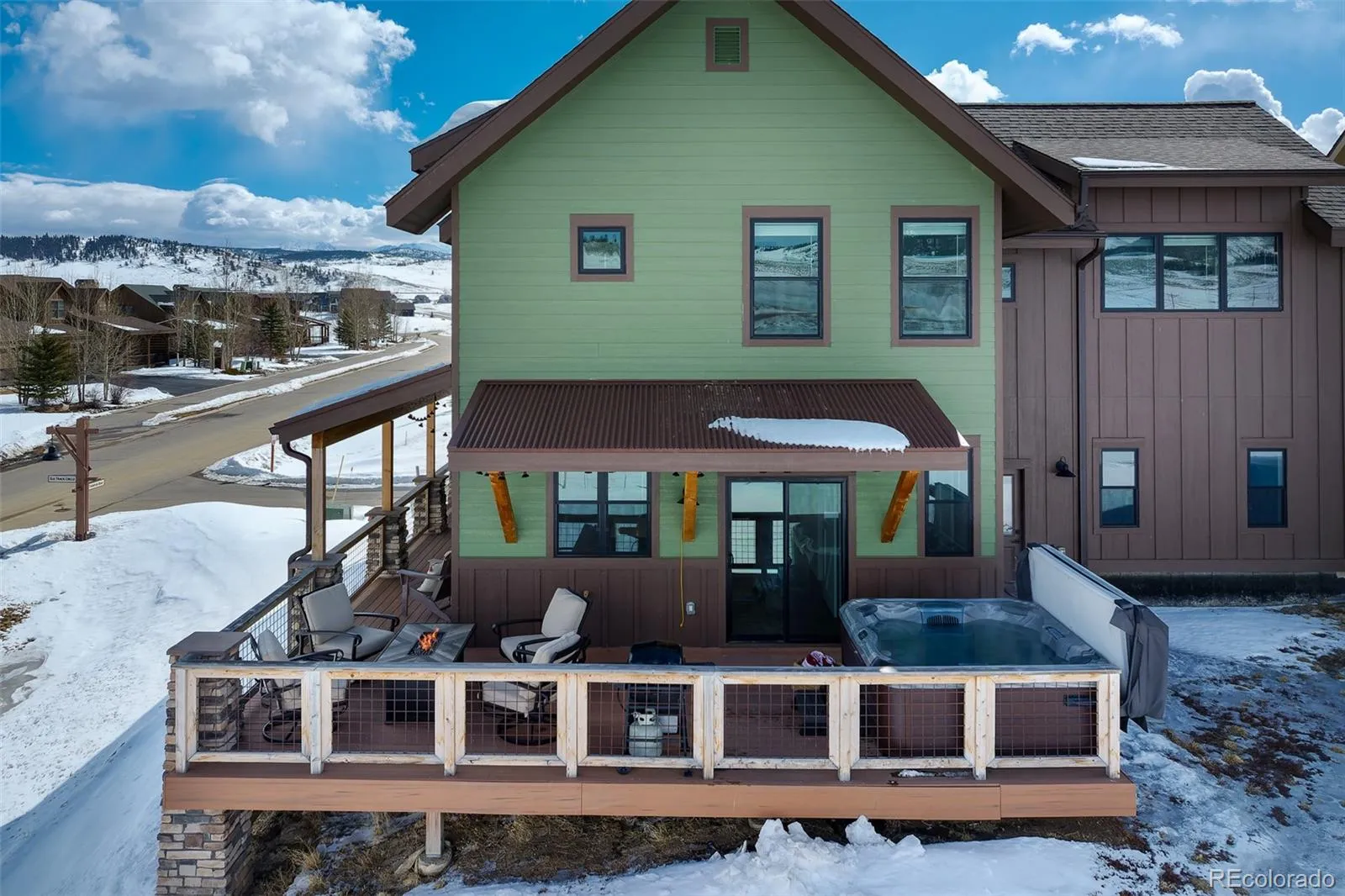 This exquisite 4-bedroom, 3.5-bathroom residence, completed in 2022, offers a remarkable investment opportunity, having generated $93,000 in gross rental income last year. The wrap-around deck on this corner lot enhances views of Rocky Mountain National Park, Grand Elk Golf Course, and expansive landscapes. The home features premium finishes, including quartz countertops, genuine hardwood flooring, and custom tile work. The open great room layout is highlighted by upscale light fixtures and a fully stacked surround fireplace, combining elegance with comfort. With two living areas and four spacious bedrooms, this home is perfect for families and guests, providing ample space for everyone.