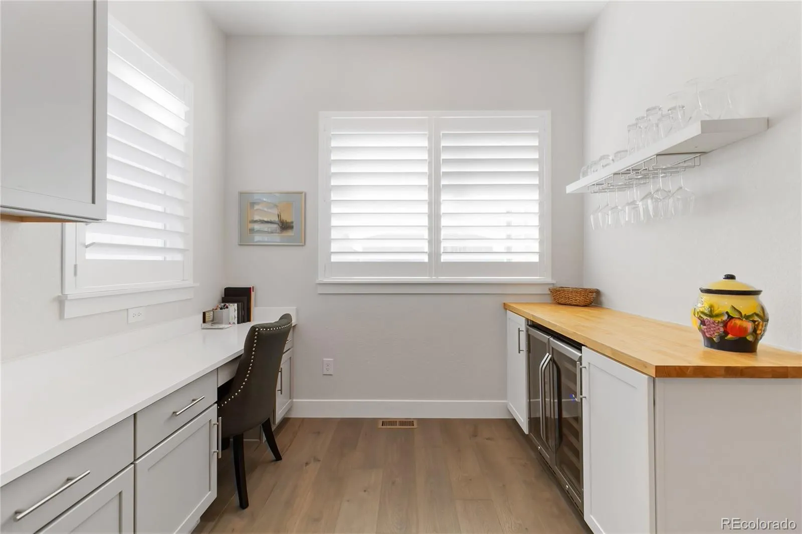 This home is truly better than new! The moment you step inside, you’re greeted by an abundance of natural light that fills the high-ceiling great room and highlights the stunning tile fireplace. The gourmet kitchen, framed by a wall of windows, boasts quartz countertops, stainless steel KitchenAid appliances, a 6-burner gas stove, custom cabinetry, and a beautiful tile backsplash that extends to the ceiling. The adjacent kitchen office, complete with a coffee bar, wine bar, pantry, and access to the oversized mudroom, provides a perfect space for organization and daily life.