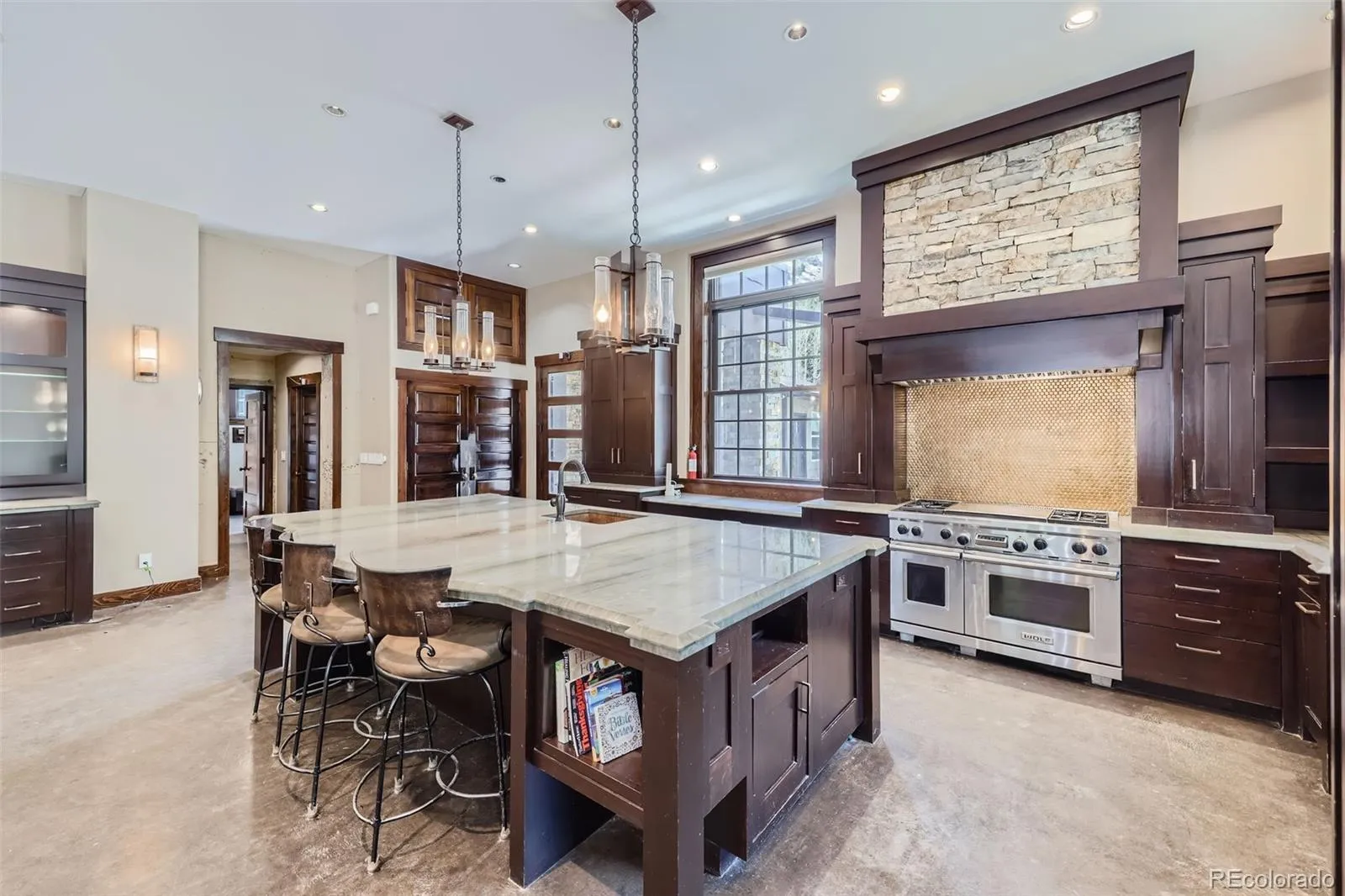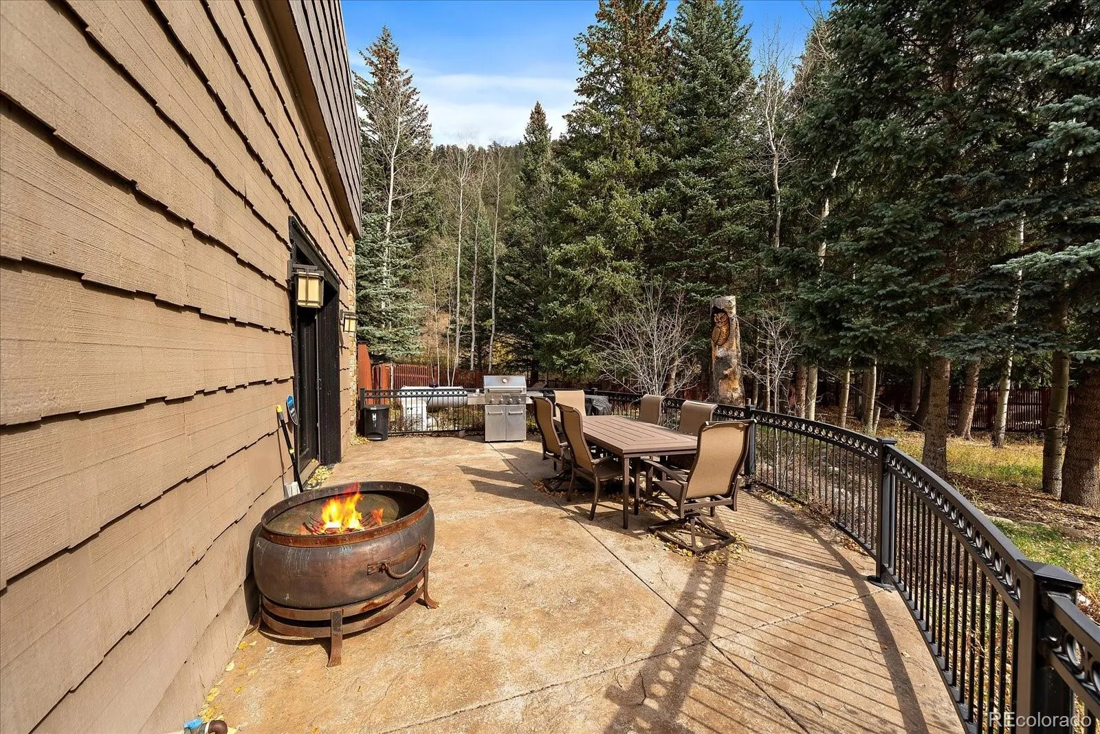 Italian granite island, perfect for entertaining while cooking. A Wolf range and double ovens, and Sub Zero refrigeration and freezer appliances complete the essentials. A large pantry, copper prep sinks, coffee nook and custom cabinetry reflect the thoughtful design and beauty found throughout this home. The acid-stained concrete floors resemble rich leather and an efficient Russian stone fireplace and bread oven blend the cozy ambiance of the open floor plan. Tall barn doors open to a spacious outdoor patio with a dedicated propane line for the grill, an automatic whole house generator, and new hot tub. A fenced backyard with a large covered dog run is a pet’s dream. The primary suite features programmable skylights and adjoins a bonus room – an exercise room, den, or a second office. A detached heated studio adds versatility, offering a creative space for your imagination or easily converted back to a 2-car garage. Completing the outdoor amenities is a fairy play garden, picnic area, greenhouse, and extra storage. The 18-inch thick walls, custom Hunter Douglas electric blinds and radiant floor heat creates a luxurious and energy-efficient environment. This home is where history and modernity converge offering a Colorado lifestyle that is truly unique.