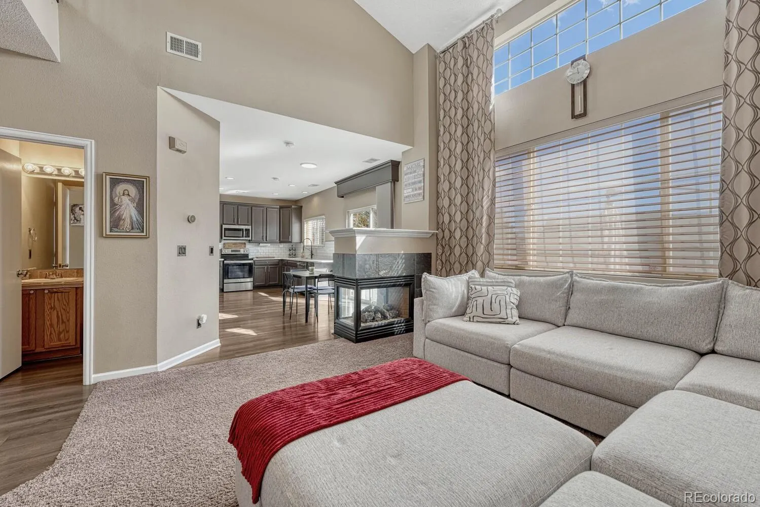 *SPECIAL FINANCING AVAILABLE* Free 1-0 Buydown – 1% rate reduction for 1 year with preferred lender (this includes a free future refinance when rates drop), inquire with listing agent. Welcome to this spectacular 2-story home in the highly sought-after Sterling Hills West community! Designed with comfort and style in mind, this home boasts an inviting atmosphere with soaring ceilings and a cozy gas fireplace in the family room. The open-concept layout flows seamlessly into the contemporary kitchen and dining area, making it ideal for both everyday living and entertaining. The remodeled kitchen shines with a stylish tile backsplash and new vinyl plank flooring. A pantry, a spacious laundry room with a built-in countertop, and a charming half-bath add to the home’s functionality. Upstairs, you’ll find two beautifully remodeled bedrooms plus a spacious primary suite featuring dual sinks, a newly tiled shower, and heated floors. Plus a walk-in closet—offering plenty of space for all your wardrobe. The full hallway bathroom ensures privacy and convenience for family and guests. All window treatments, drapes, washer/dryer are included! Step into the huge, fully fenced backyard, perfect for pets, play, and outdoor gatherings. Relax on the maintenance-free deck. The durable composite cement tile roof ensures long-lasting beauty and protection. The attached 2-car garage offers ample space for tools, a workbench, or even an extra refrigerator. Bonus: Easy access to the crawl space provides extra storage for seasonal items. Plus, the hot water heater and sump pump were replaced in 2023 for added peace of mind. Enjoy a 2 acre community park just one block away. The Central Recreation Center—offering a variety of activities—is less than half a mile away. Side Creek Elementary School is east, making this an ideal location for families. Buckley Air Force Base is 3 miles away. Don’t miss your chance to own this incredible home! Schedule your tour today and make it yours.
