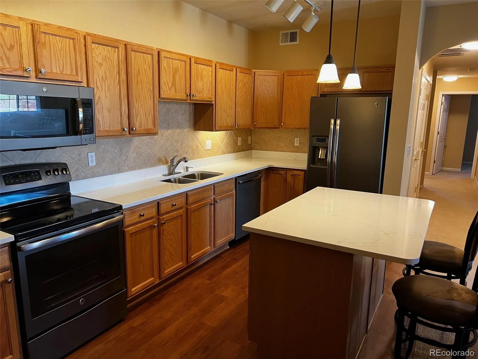 Welcome home to this immaculate three-bedroom, two-bathroom condo in Trailmark! Brand new quartz counters recently installed in the kitchen and bathrooms! There are zero steps to enter this