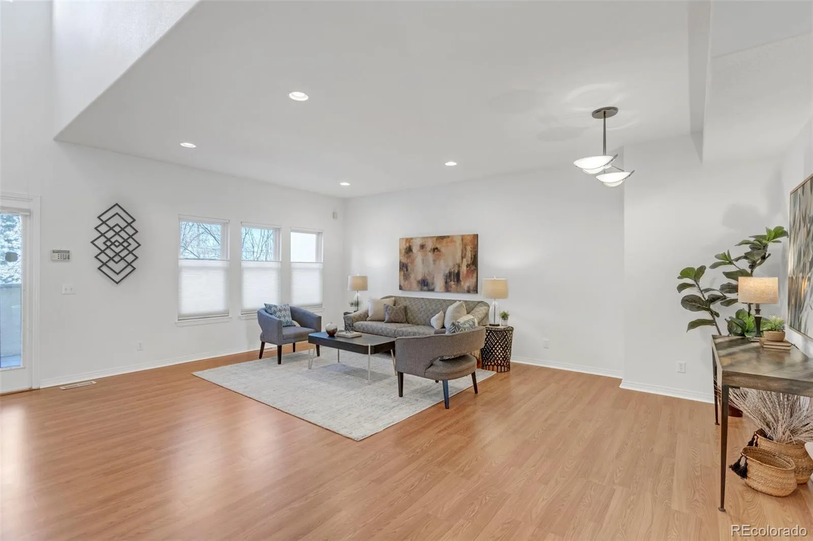 BACK ON THE MARKET – Buyer’s financing did not come together. This townhome has so much space and is move-in ready! Welcome to this 3-story townhome in the Yale Park community where spacious living meets low-maintenance convenience. From the moment you step inside, you’ll be greeted by an open and airy Living and Dining area that’s perfect for both relaxing and entertaining. The updated Kitchen is a true highlight, featuring elegant Quartz countertops, a stylish designer backsplash, new hardware, a functional kitchen island, and a cozy eating nook with access to the east-facing balcony. Just off the kitchen, the open-concept Family Room invites you to unwind by the gas fireplace, making it the perfect spot for cooler evenings. Head upstairs to the top level to find the Primary Bedroom Suite complete with vaulted ceilings, two walk-in closets, and a spa-inspired 5-piece bathroom with double sinks. Also on the third floor, you’ll find an additional Bedroom and a full Bathroom. On the entry level, the third Bedroom includes its own en-suite Bathroom, plus a flexible bonus space that’s perfect for a home office, reading nook or creative studio. You’ll also have easy access to the attached 2-car garage. Recent upgrades include fresh interior paint (August 2024) and modern kitchen updates with new countertops, backsplash, hardware, and lighting (August 2024). Enjoy outdoor living with not one, but three inviting spaces: an east-facing balcony off the kitchen, a welcoming west-facing balcony at the front entrance, and a private ground-level patio. All of this, just minutes from I-25, Light Rail, shopping, dining, and more. This move-in ready, charming townhome is waiting to welcome you home!