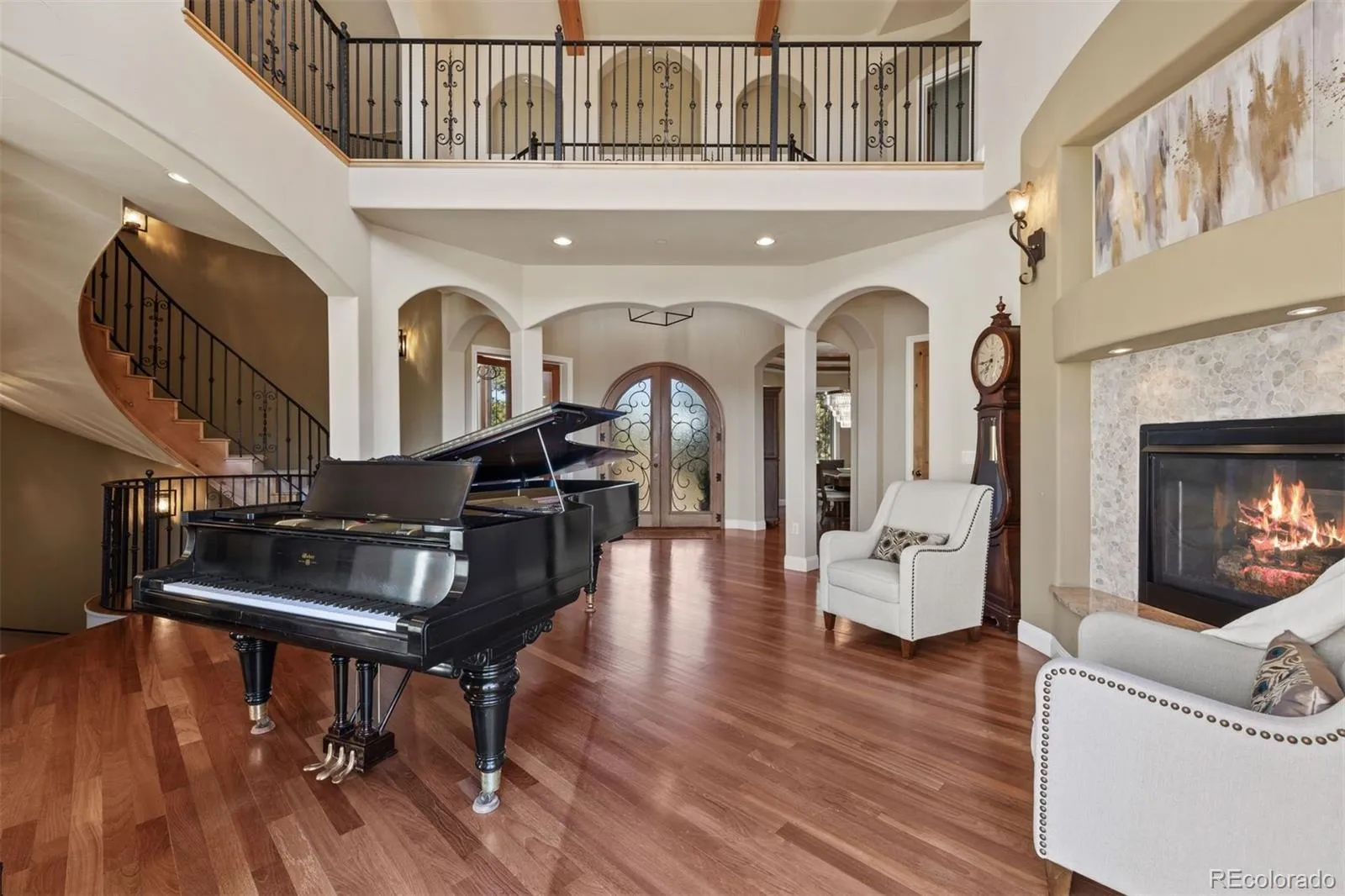 The walk-out lower level brings the fun, with a full recreation room, wet bar, home theater, and dedicated gym space. Outside, the flat backyard is ready for whatever you dream up—pool, garden, maybe both. A four-car garage, circular drive, and extra parking take care of the rest. Effortlessly elegant and quietly bold, this is refined Colorado living with a little more soul.