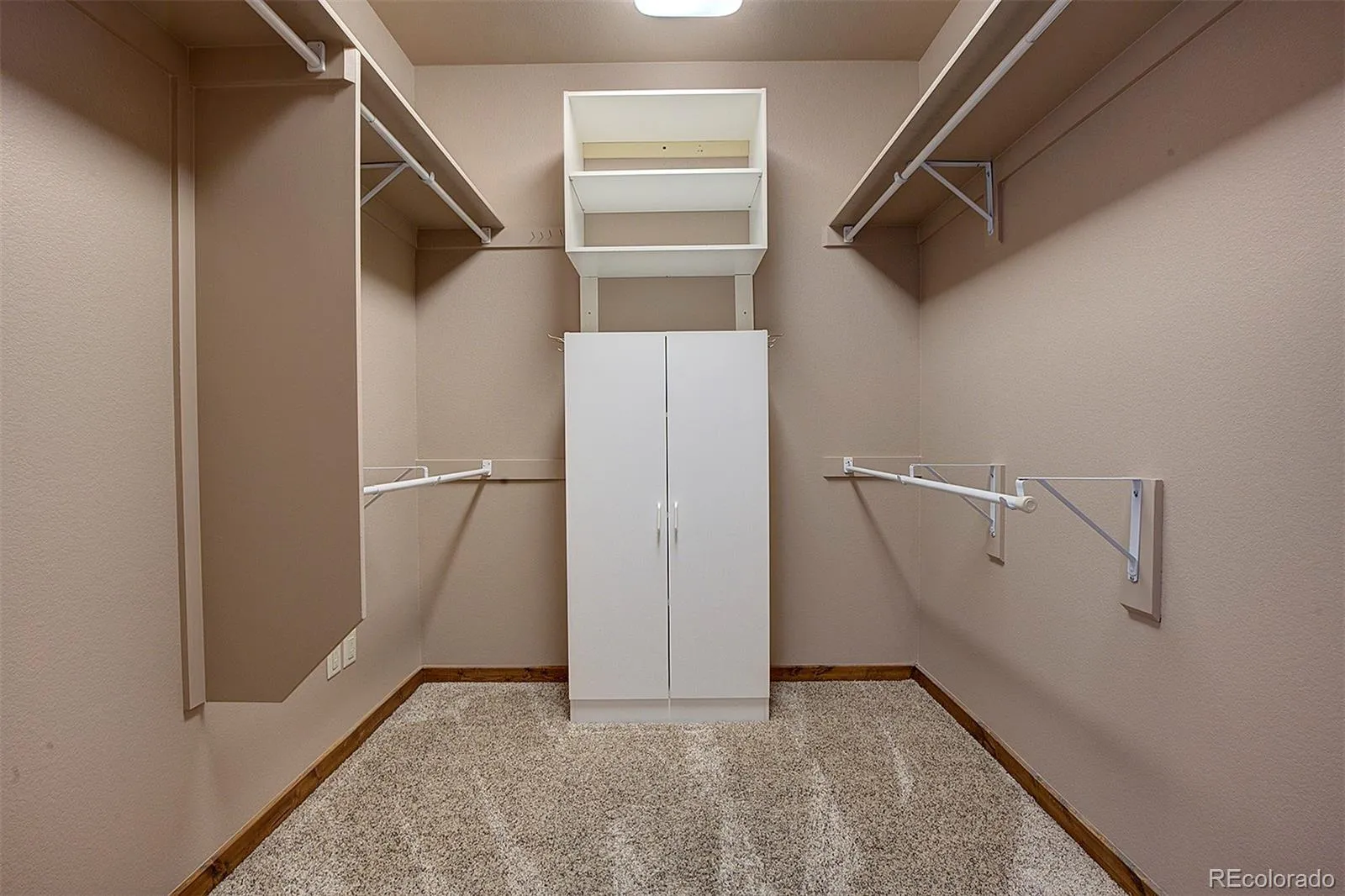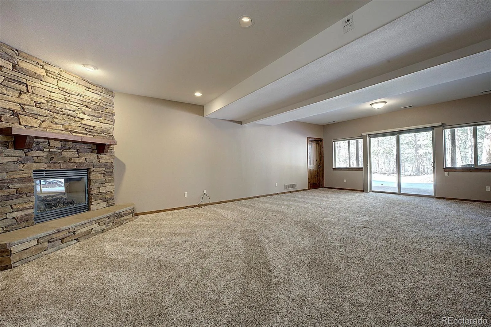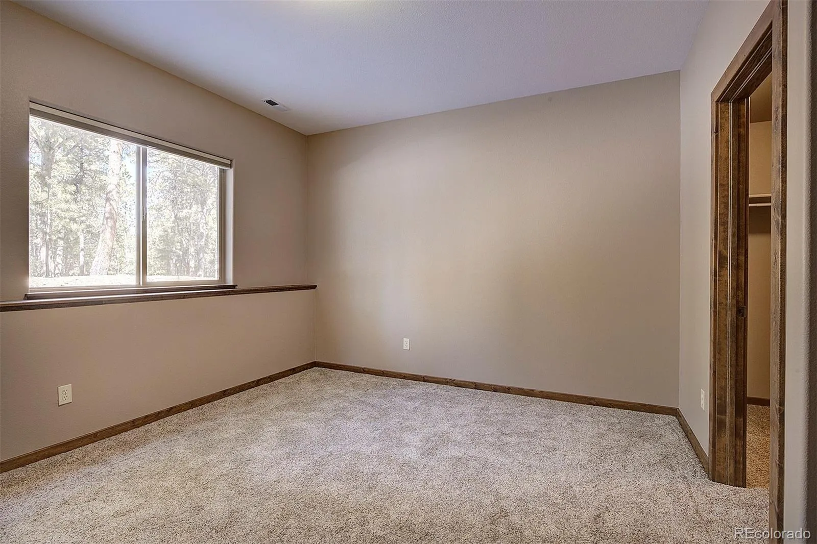 Welcome to this stunning home, originally a builder’s residence, set on over 3 acres in the desirable Wissler Ranch. This exceptional property offers luxury, privacy, and main-floor living at its best. Upon entering, you’re greeted by a bright great room with vaulted ceilings, a wall of windows, and beautiful Hickory hardwood floors. The three-sided gas fireplace creates a cozy ambiance for the open living, dining, and kitchen areas. The chef’s kitchen is a true highlight, with a large center island featuring a 5-burner Bosch gas cooktop and plenty of prep space. The breakfast bar and spacious kitchen make entertaining effortless, while the double oven, new refrigerator, and ample pantry provide everything a home cook could need. Step outside to the deck and enjoy dinner al fresco or unwind with a glass of wine. The private primary suite offers a peaceful retreat, with a spa-like 5-piece bath and views of the serene woods. On the opposite side of the main floor, you’ll find a convenient laundry room, powder room, and two additional bedrooms sharing a bath. Downstairs, the finished lower level boasts a spacious family room with a wet bar, ideal for movie nights or gatherings. Two more bedrooms, a full bath, and plenty of storage complete this level. Recent updates include a new roof (2023), new refrigerator (2024), new Hunter Douglas blinds with remote controls, new carpet, new interior paint (2021), and refinished Hickory hardwood floors. The oversized 3-car garage has built-in storage and room for an extended-cab F250. The sellers had the property professionally mitigated, removing 110 trees to create a pristine, park-like setting. Located 30 minutes from Castle Rock, 45 minutes to south metro Denver, or 30 minutes to downtown Colorado Springs, this home offers both convenience and tranquility. Welcome to your new sanctuary!