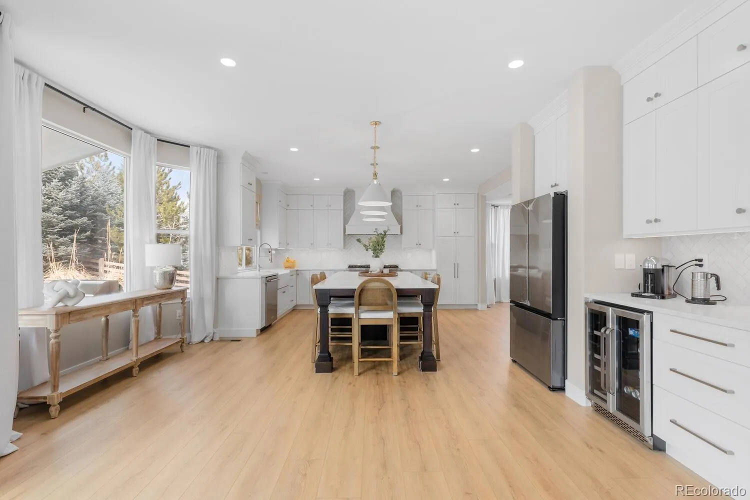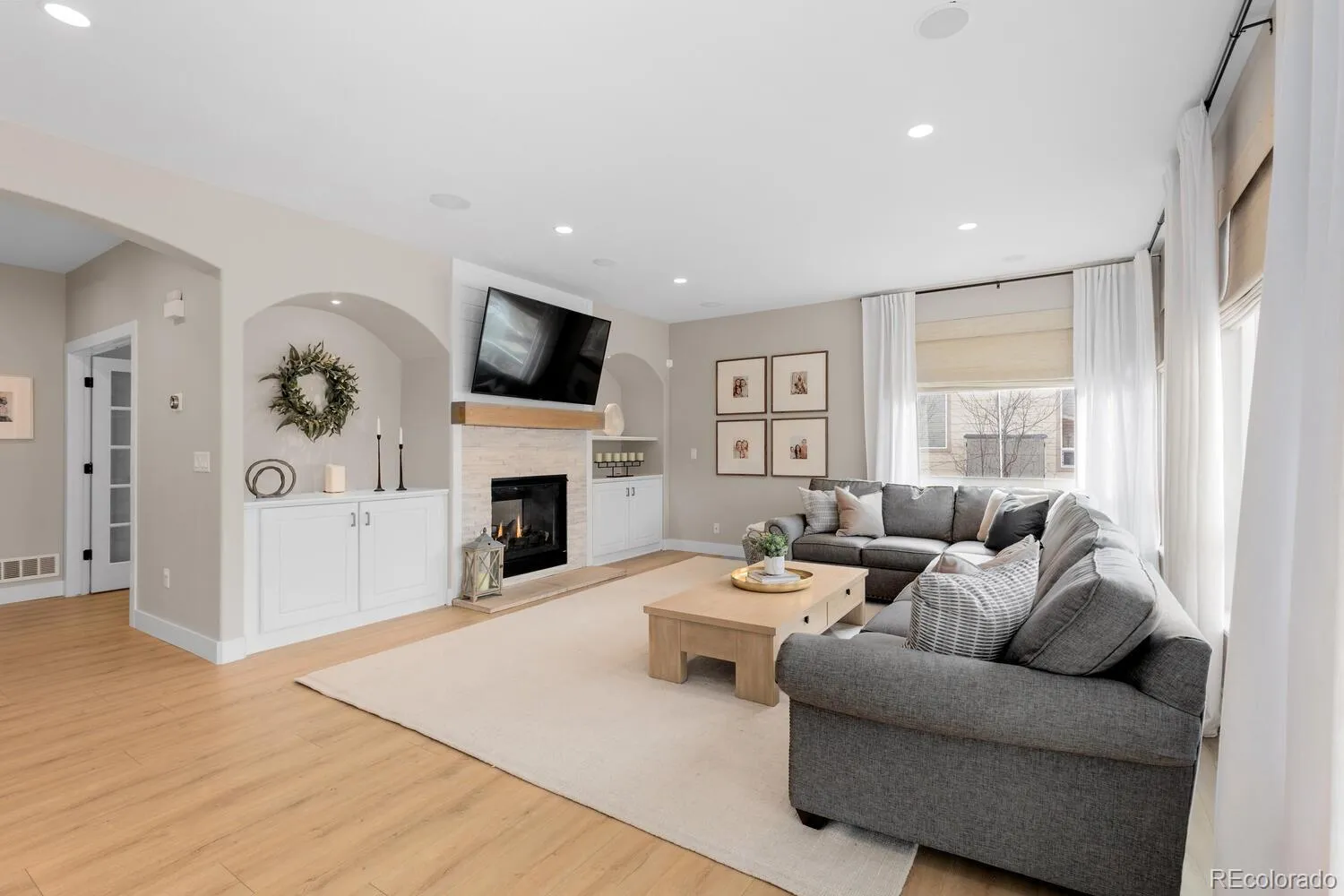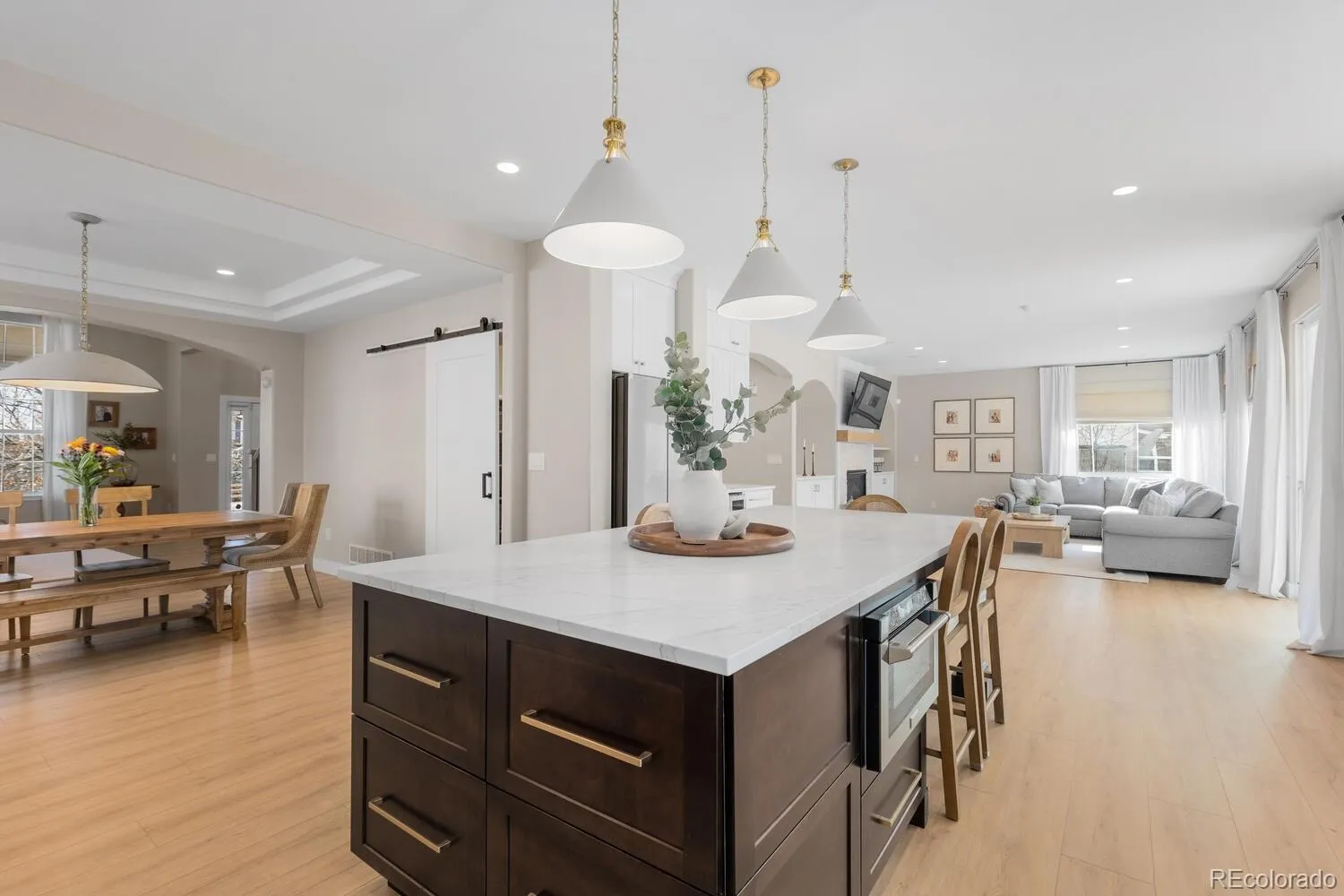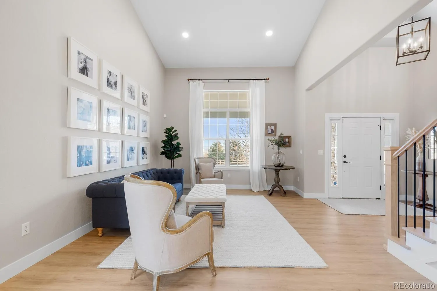 Modern luxury meets timeless sophistication in this stunning remodel in the highly coveted Pradera Golf Community! Perfectly situated on a third-acre lot backing to a greenbelt, this home blends expansive outdoor living with over $275K in thoughtful updates, making it truly one-of-a-kind.The striking curb appeal and welcoming front porch set the stage for the refined design inside. Step through the door to soaring vaulted ceilings, a dramatic curved staircase, light oak flooring, designer finishes, and a neutral palette that creates an inviting open concept flow. The gourmet kitchen is a showpiece, featuring high-end appliances, a custom wood vent hood, brass pot filler, expansive island, luxury wide plank flooring, and designer lighting. The dining room, great room, kids’ office spaces, updated powder bath, and redesigned laundry/mudroom all flow seamlessly together for everyday function and entertaining alike. Upstairs, the master retreat offers a cozy fireplace, spa-like five-piece bath, and generous walk-in closet. Three additional bedrooms and two bathrooms complete the upper level. The finished basement adds nearly 1,800 SF of versatile living: a glass enclosed home gym, two bedrooms, a full bath, under-stair play nook, and a family room with a built-in bar—perfect for movie nights or entertaining. The oversized three-car garage provides extra storage for all your gear, while the backyard retreat boasts a covered patio with fire pit, outdoor kitchen, and built-in basketball hoop for endless enjoyment. Living in Pradera means access to premier community amenities including trails, open space, playgrounds, pool, parks, and an optional golf membership. All with easy access to I-25, DTC, Castle Rock, shopping, dining, and more!