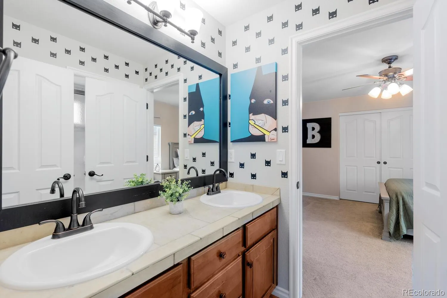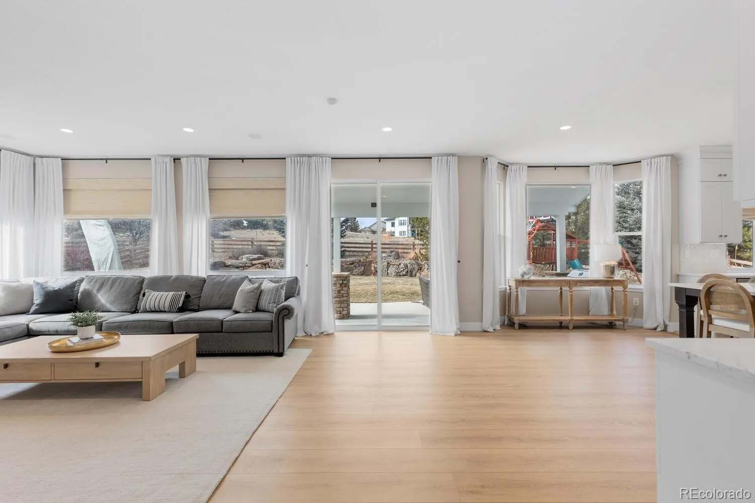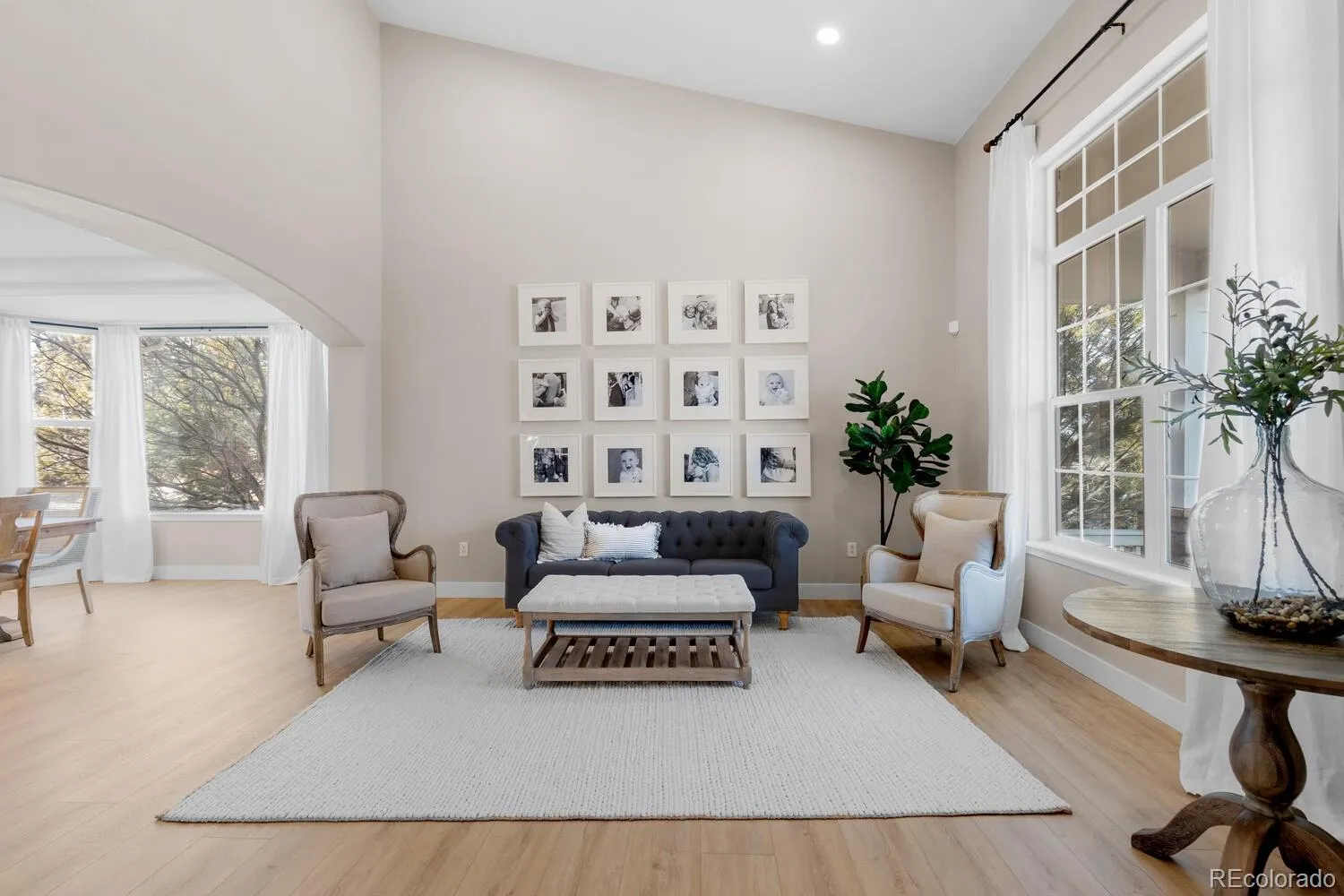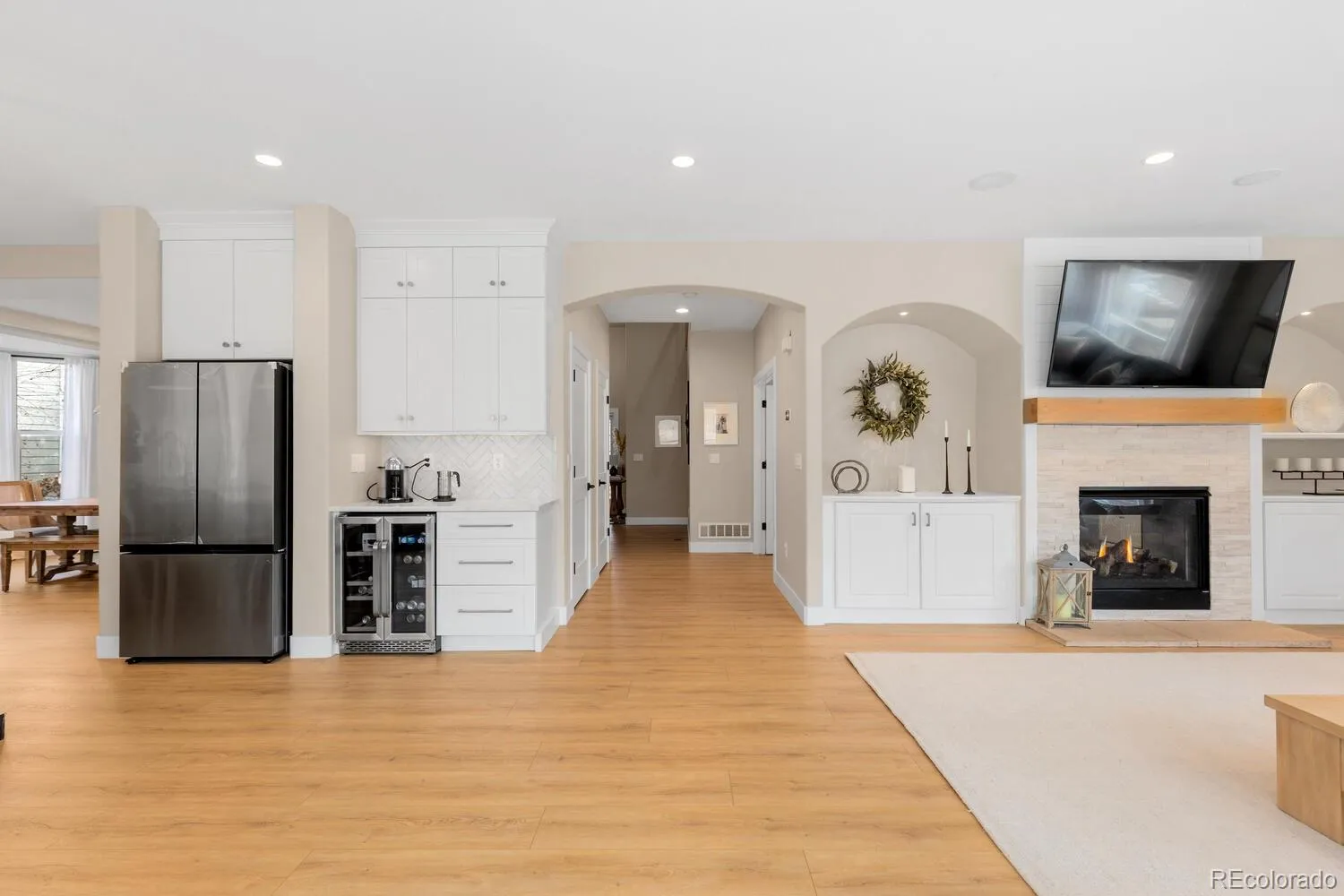 Modern luxury meets timeless sophistication in this stunning remodel in the highly coveted Pradera Golf Community! Perfectly situated on a third-acre lot backing to a greenbelt, this home blends expansive outdoor living with over $275K in thoughtful updates, making it truly one-of-a-kind.The striking curb appeal and welcoming front porch set the stage for the refined design inside. Step through the door to soaring vaulted ceilings, a dramatic curved staircase, light oak flooring, designer finishes, and a neutral palette that creates an inviting open concept flow. The gourmet kitchen is a showpiece, featuring high-end appliances, a custom wood vent hood, brass pot filler, expansive island, luxury wide plank flooring, and designer lighting. The dining room, great room, kids’ office spaces, updated powder bath, and redesigned laundry/mudroom all flow seamlessly together for everyday function and entertaining alike. Upstairs, the master retreat offers a cozy fireplace, spa-like five-piece bath, and generous walk-in closet. Three additional bedrooms and two bathrooms complete the upper level. The finished basement adds nearly 1,800 SF of versatile living: a glass enclosed home gym, two bedrooms, a full bath, under-stair play nook, and a family room with a built-in bar—perfect for movie nights or entertaining. The oversized three-car garage provides extra storage for all your gear, while the backyard retreat boasts a covered patio with fire pit, outdoor kitchen, and built-in basketball hoop for endless enjoyment. Living in Pradera means access to premier community amenities including trails, open space, playgrounds, pool, parks, and an optional golf membership. All with easy access to I-25, DTC, Castle Rock, shopping, dining, and more!