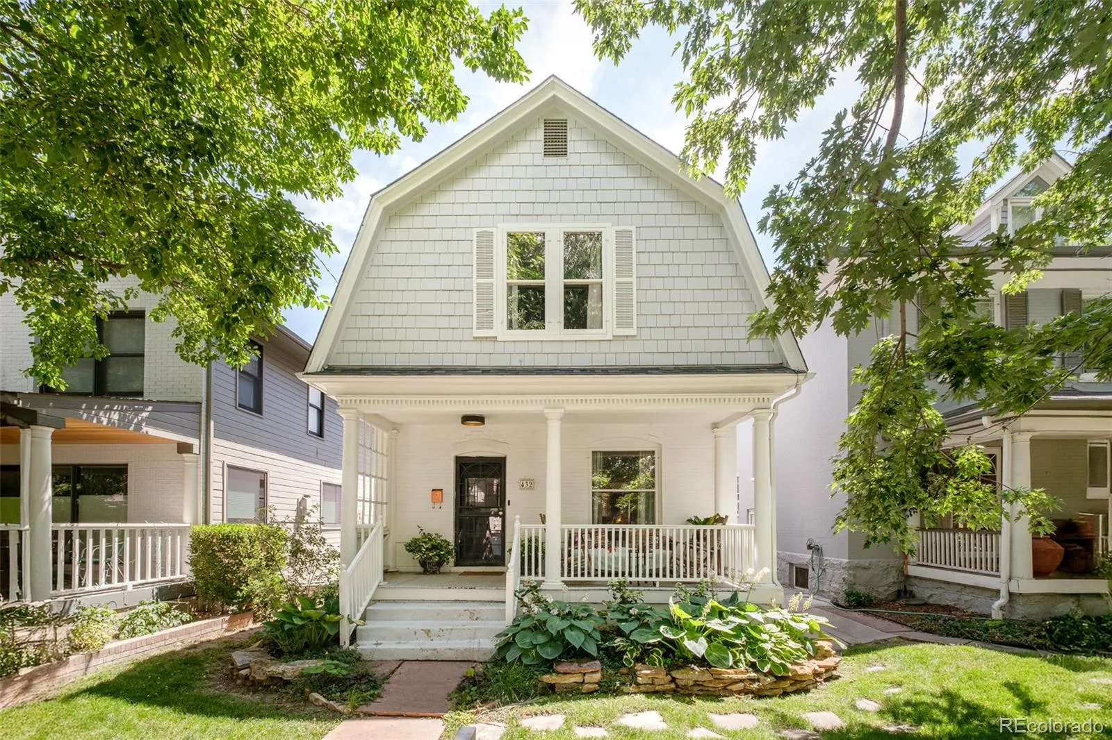 Discover this stunning historic home located on one of Alamo Placita’s most desirable tree-lined streets. Blending timeless charm with modern upgrades, this residence offers the perfect combination of classic elegance and contemporary comfort. The welcoming covered porch leads to a radiant entryway showcasing an original wood staircase, high ceilings, and large windows that fill the space with abundant natural light. The living room features a stylish mid-century modern chandelier and a decorative fireplace mantel, flowing seamlessly into the spacious dining area. The gourmet chef’s kitchen is a culinary dream with stainless steel appliances, a copper prep sink, ample storage, and a striking oversized 6-burner double oven range — ideal for hosting dinner parties and cooking family favorites. Upstairs, enjoy three generous bedrooms with unique features such as angled ceilings, skylights, and a private balcony off the back bedroom. The fully finished basement provides ideal guest living quarters or an additional family space. Outdoor living is elevated with a newly built cobblestone paver patio, fire pit, and expansive deck — perfect for entertaining and relaxing outdoors. The property also boasts a rare, oversized two-car garage with a brand new roof, offering ample parking and storage. Located just one block from Alamo Placita Park and moments from 6th Avenue dining, Cherry Creek shopping, and the Cherry Creek Path, this exceptional Denver home presents a rare opportunity in one of the most sought-after neighborhoods. Don’t miss out on owning this charming blend of historic charm and modern luxury in Denver’s vibrant urban scene.