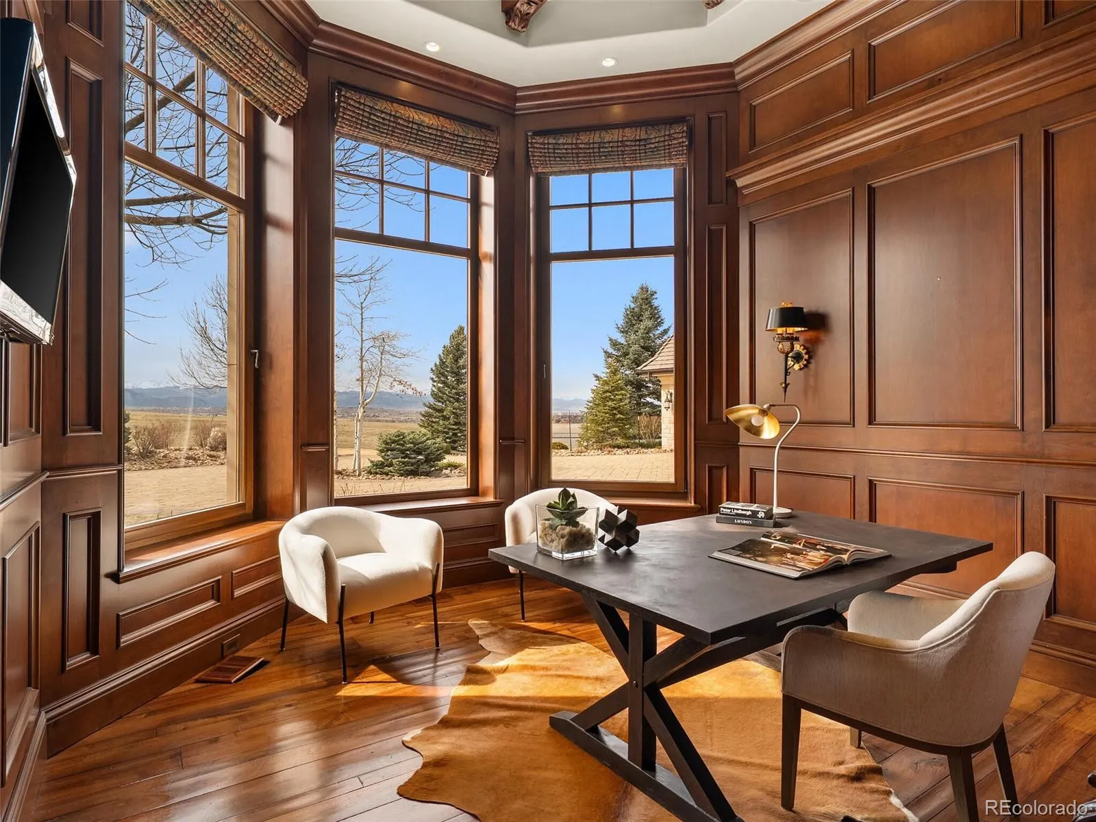 Set on a pristine 1-acre lot at the end of a private cul-de-sac, this estate is a rare sanctuary of luxury and tranquility in one of Broomfield’s most exclusive gated enclaves. From the moment you step inside, soaring ceilings and breathtaking views set the stage for an architectural masterpiece. To the west, the majestic Front Range and Flatirons unfold, while to the east, a private lake framed by towering old-growth trees offers a serene retreat. German-engineered wood windows flood the home with natural light, and radiant floor heating ensures year-round comfort—all seamlessly blending unparalleled craftsmanship with modern sophistication. The gourmet kitchen showcases top-tier appliances—a Wolf gas range, dual Bosch dishwashers, a Sub-Zero refrigerator, dual KitchenAid ovens, and a Miele coffee center—all seamlessly integrated for style and function. The expansive main level boasts three en-suite bedrooms, including a serene primary retreat, while the lower level offers three additional en-suite bedrooms. Entertainment abounds with a state-of-the-art 12-person theater, a climate-controlled wine cellar, and a full bar and game room featuring billiards, shuffleboard, and poker tables. For wellness and relaxation, enjoy the dedicated home gym or retreat to the indoor-outdoor atrium, enclosed by floor-to-ceiling sliding pocket doors. Multiple expansive patios and decks, crafted from Colorado Buff Sandstone, offer breathtaking vantage points to soak in the surrounding beauty. For extended guest stays, a separate lock-off cottage provides complete privacy, featuring two beds, two baths, a kitchen, living room, private laundry, and garage. A hydraulic drive elevator provides effortless access to all levels, while a heated driveway and 4-car garage offer both practicality and prestige. Ideally situated just 30 minutes from Denver, Boulder, and the Denver Tech Center, this exceptional estate offers a rare opportunity to enjoy unmatched luxury, privacy, and convenience.